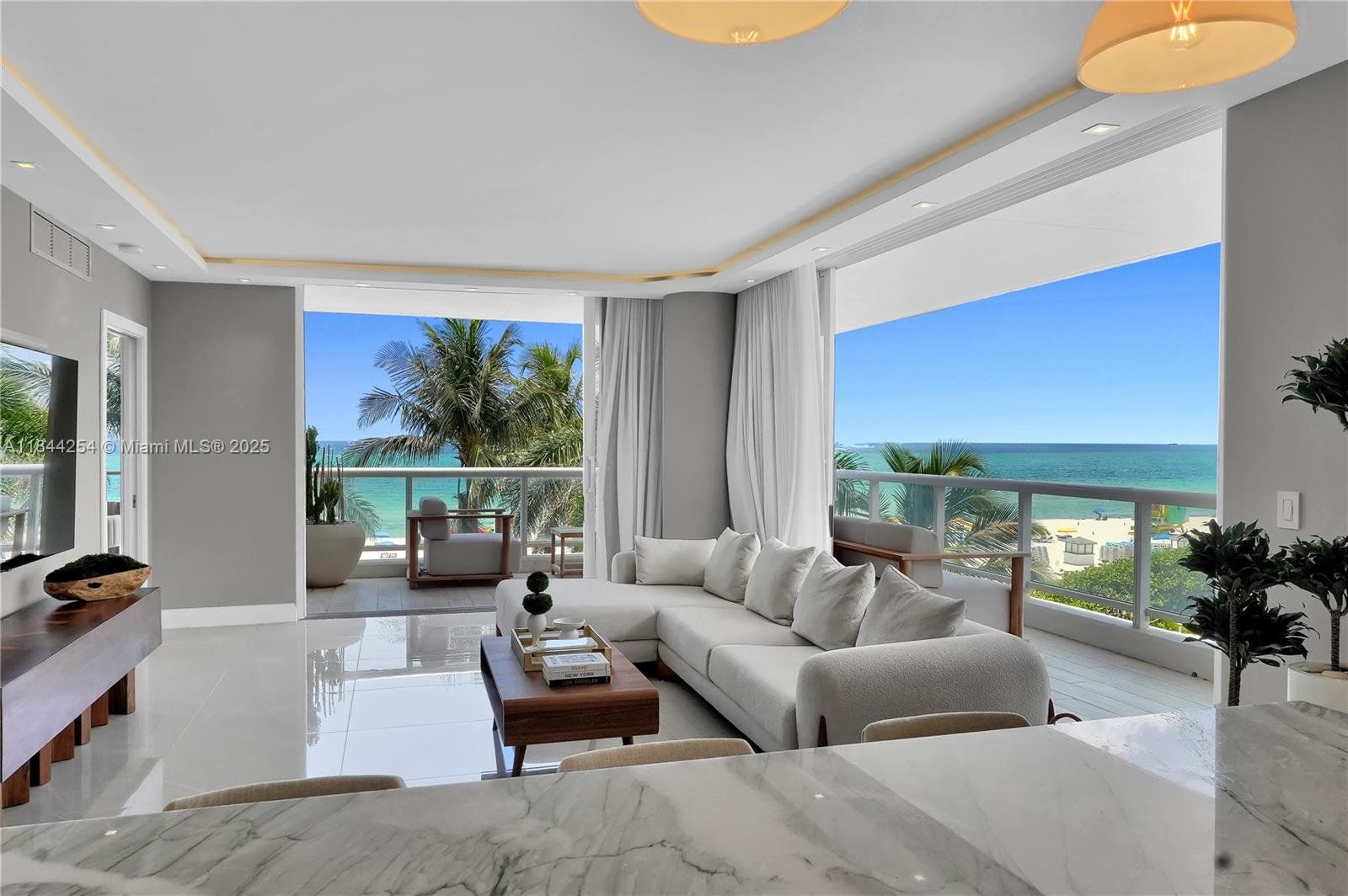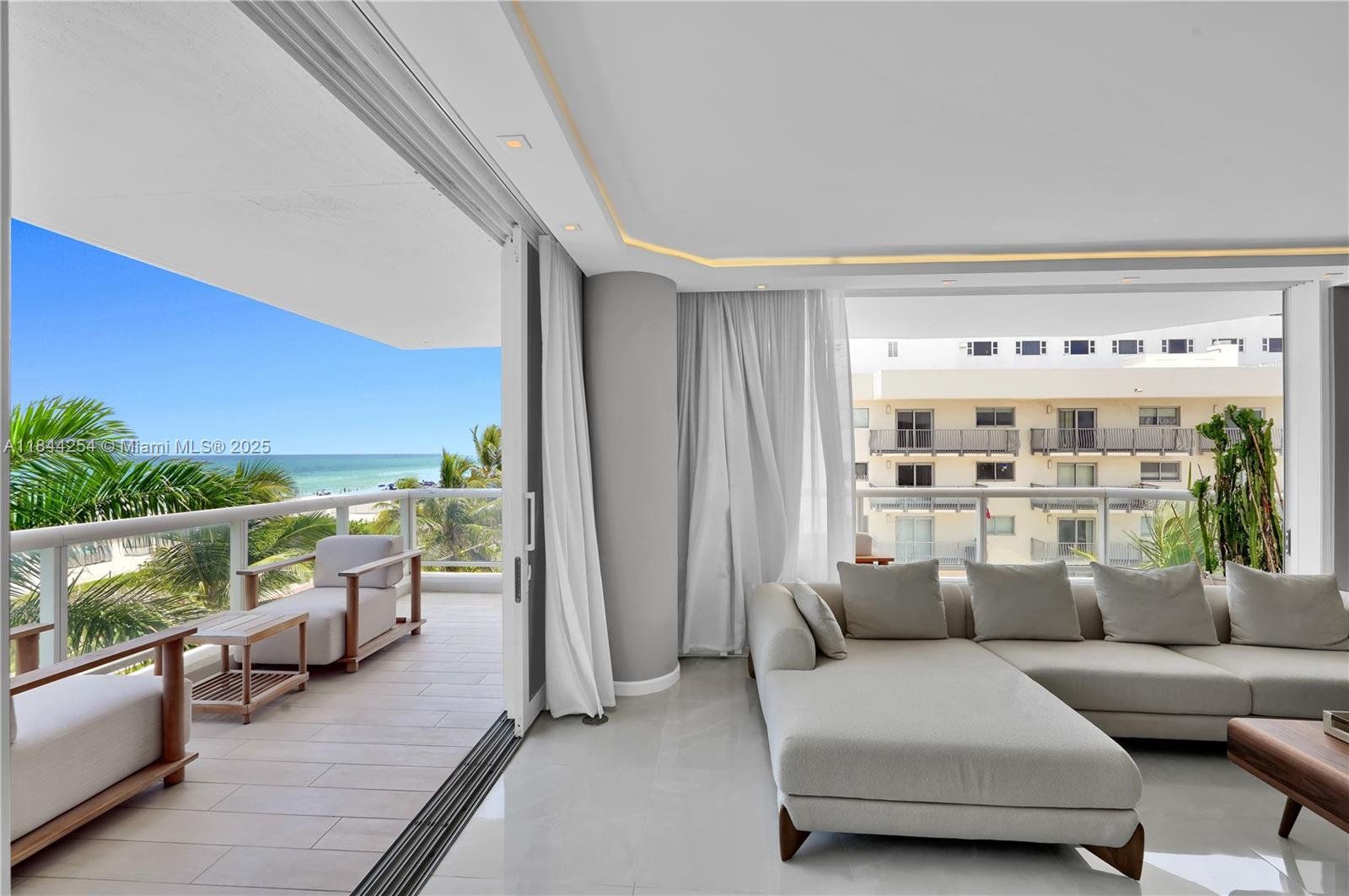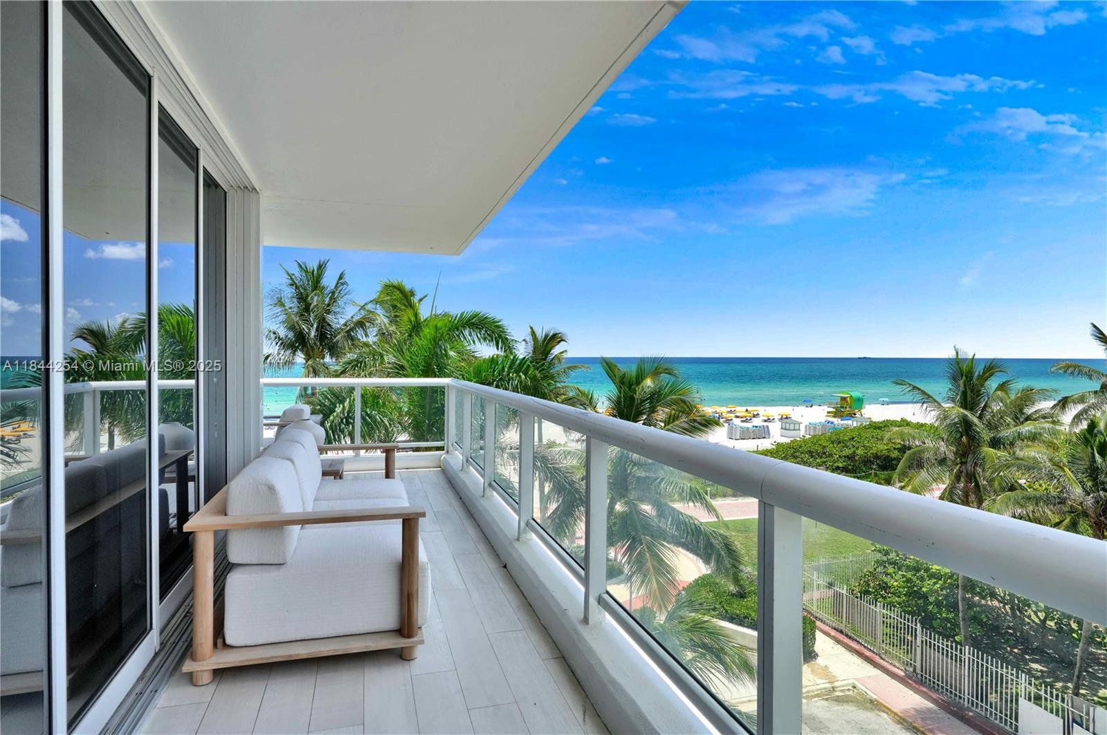 Oceanfront luxury awaits in this stunning 2BD/2BA at prestigious La Tour! Fully renovated with breathtaking direct ocean views, featuring extra-wide hurricane impact doors opening to a wraparound balcony - perfect for seamless indoor-outdoor living. Same-floor parking space included for ultimate convenience. This exclusive boutique building (only 63 units, 3 per floor) offers unparalleled amenities: resident beach chair service, pool, Jacuzzi, sauna, gym, tennis and pickleball court, party room, 24/7 security & on-site management. Prime location near Soho House, Fontainebleau, Faena & Miami Beach's finest dining/shopping and 20 mins from MIA Airport. Experience coastal elegance redefined!