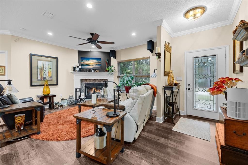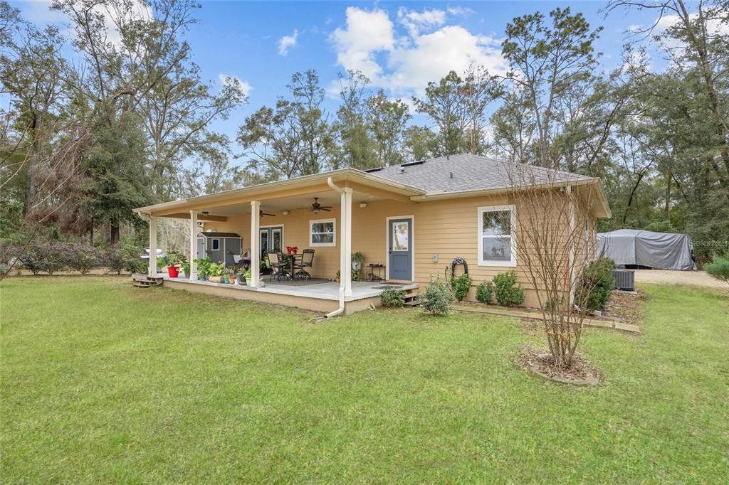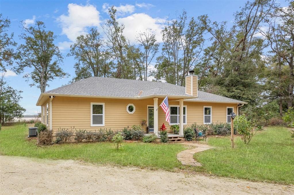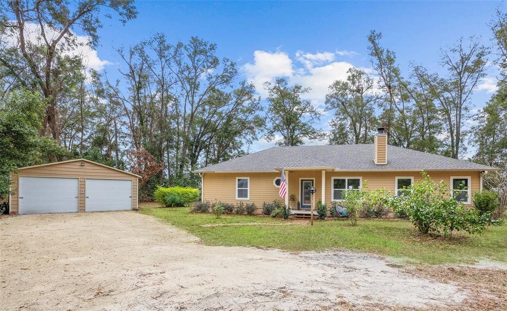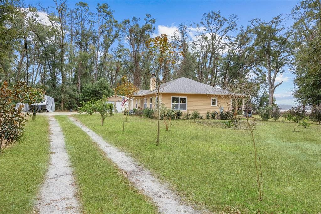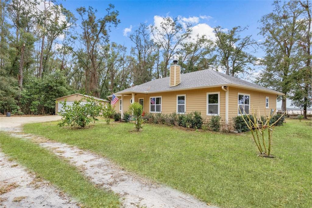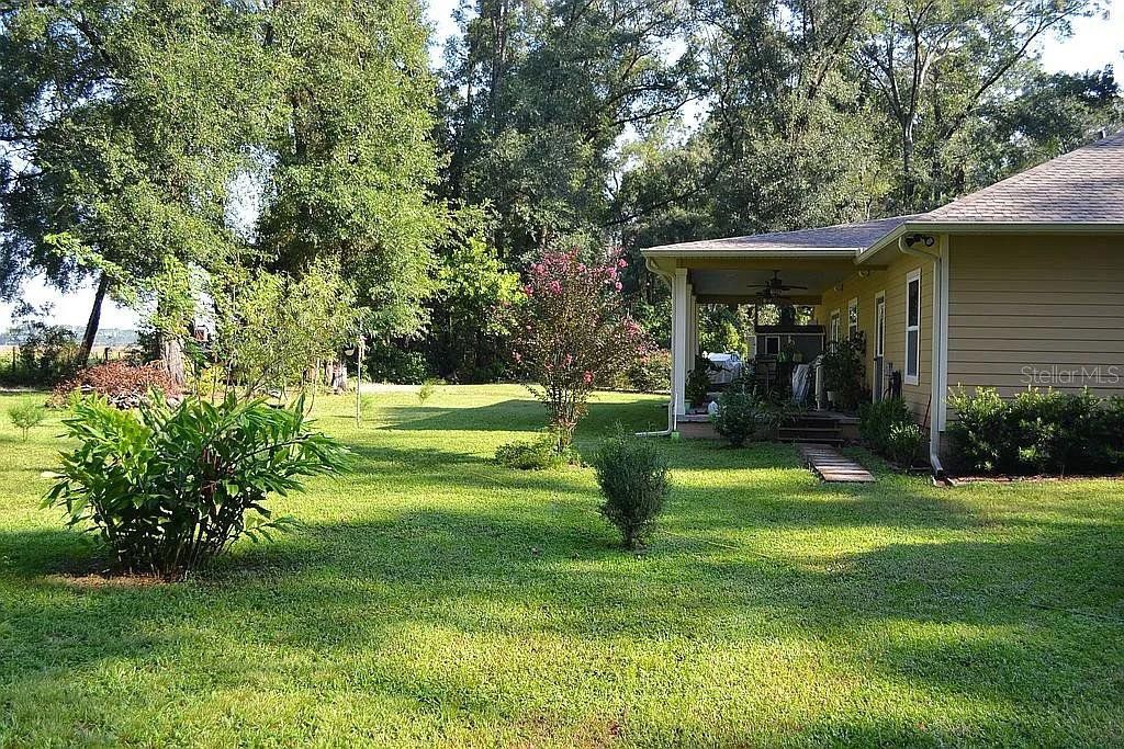 Located in the coveted 3 Rivers Estates, this home sits on a rare triple lot, just three blocks from the Santa Fe River! Nestled at the end of a quiet dead-end street and outside any flood zone, this high-and-dry property offers unparalleled privacy, backing up to a farm that provides breathtaking western exposure and picturesque sunsets every evening. The exceptionally built 3BR/2BR home features imported Italian granite in the kitchen and bathrooms, while crown molding and luxury vinyl flooring add elegance and durability. The chef’s kitchen features black stainless appliances, a deep farmhouse sink, and a huge walk-in pantry, seamlessly combining style and functionality. The living area is both cozy and inviting, with a fireplace complete with a propane log igniter. A converted third bedroom serves as a den or office, offering flexibility to suit your lifestyle. The master suite features a luxurious walk-in shower, and the home is enhanced with energy-efficient double-paned windows and LED lighting throughout. Step outside to enjoy the expansive 47-foot rear patio, which includes a covered area under the roofline and an additional deck designed for BBQs, complete with a propane quick disconnect. This property is a gardener’s dream, with elaborate landscaping that includes fruit trees, flowers, shrubs, and trees. Some of the property is fenced for added privacy, with a 10-foot gated entrance welcoming you home. Additional features include a spacious two-car garage built on a slab with electric service, a fan, and freezer space, as well as a whole-house water softener system. The home’s propane system supports the stove, instant water heater, BBQ hookup, and fireplace igniter, ensuring convenience and efficiency. The exterior is finished with durable Hardi-panel lap siding, vinyl window and door wraps, and vinyl soffits, creating a low-maintenance and visually appealing façade. $175/Year HOA fee allow you access. With its prime location, modern amenities, and stunning natural surroundings, this property offers a lifestyle of peace, comfort, and beauty. Surrounded by nature's beauty, this property is perfectly situated near some of Florida’s most iconic springs and rivers. Enjoy quick access to the crystal-clear waters of Ichetucknee Springs, Ginnie Springs, and the Santa Fe River, where opportunities for swimming, kayaking, tubing, and paddleboarding abound. Don’t miss the chance to make this private retreat your home!