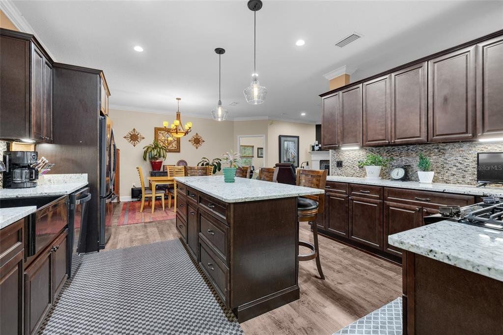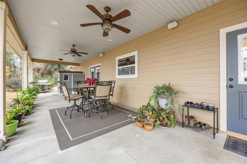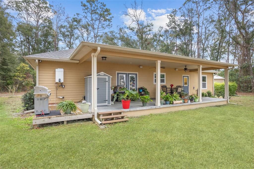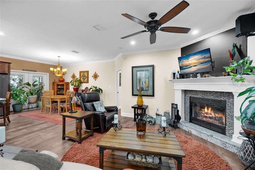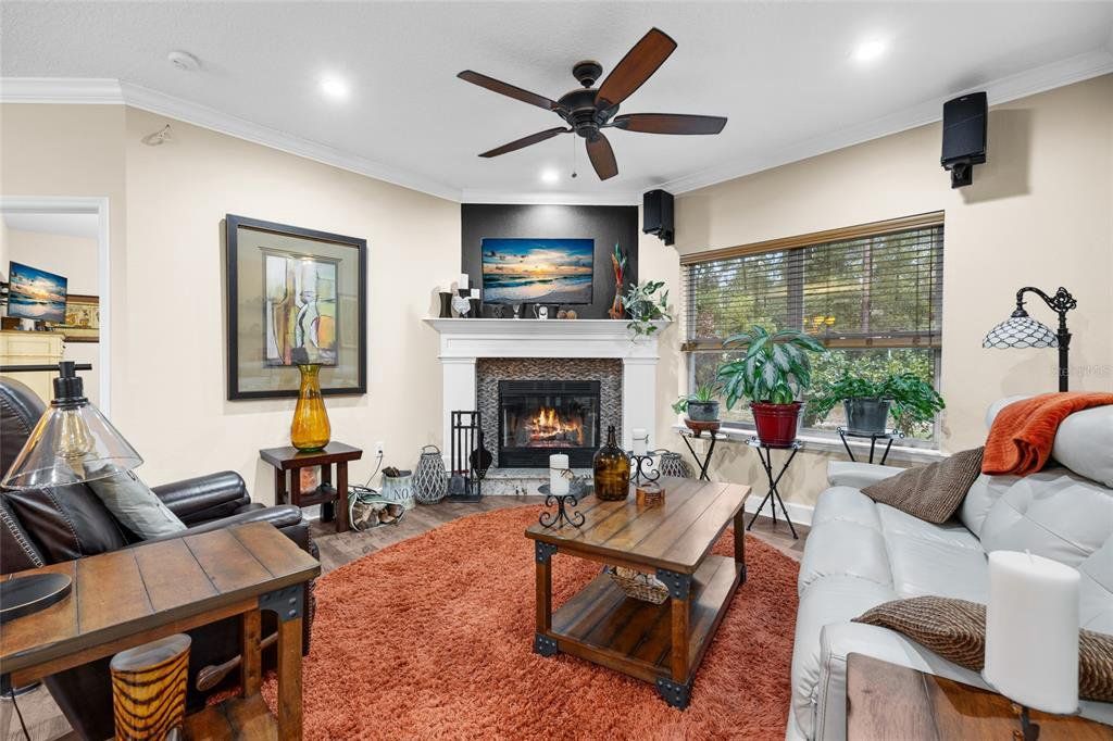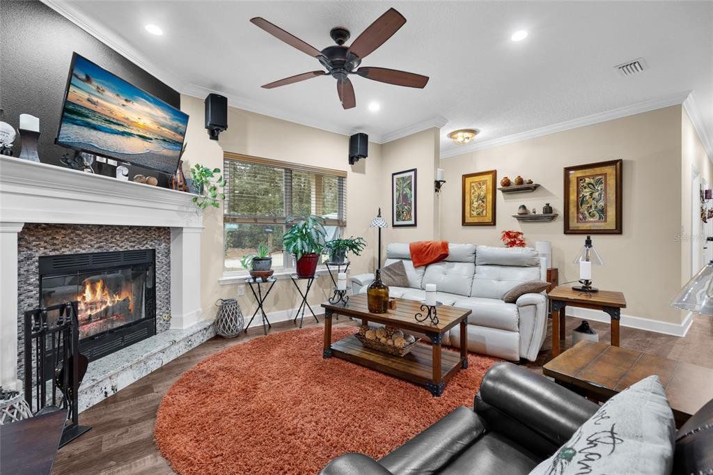 Located in the coveted 3 Rivers Estates, this home sits on a rare triple lot, just three blocks from the Santa Fe River! Nestled at the end of a quiet dead-end street and outside any flood zone, this high-and-dry property offers unparalleled privacy, backing up to a farm that provides breathtaking western exposure and picturesque sunsets every evening. The exceptionally built 3BR/2BR home features imported Italian granite in the kitchen and bathrooms, while crown molding and luxury vinyl flooring add elegance and durability. The chef’s kitchen features black stainless appliances, a deep farmhouse sink, and a huge walk-in pantry, seamlessly combining style and functionality. The living area is both cozy and inviting, with a fireplace complete with a propane log igniter. A converted third bedroom serves as a den or office, offering flexibility to suit your lifestyle. The master suite features a luxurious walk-in shower, and the home is enhanced with energy-efficient double-paned windows and LED lighting throughout. Step outside to enjoy the expansive 47-foot rear patio, which includes a covered area under the roofline and an additional deck designed for BBQs, complete with a propane quick disconnect. This property is a gardener’s dream, with elaborate landscaping that includes fruit trees, flowers, shrubs, and trees. Some of the property is fenced for added privacy, with a 10-foot gated entrance welcoming you home. Additional features include a spacious two-car garage built on a slab with electric service, a fan, and freezer space, as well as a whole-house water softener system. The home’s propane system supports the stove, instant water heater, BBQ hookup, and fireplace igniter, ensuring convenience and efficiency. The exterior is finished with durable Hardi-panel lap siding, vinyl window and door wraps, and vinyl soffits, creating a low-maintenance and visually appealing façade. $175/Year HOA fee allow you access. With its prime location, modern amenities, and stunning natural surroundings, this property offers a lifestyle of peace, comfort, and beauty. Surrounded by nature's beauty, this property is perfectly situated near some of Florida’s most iconic springs and rivers. Enjoy quick access to the crystal-clear waters of Ichetucknee Springs, Ginnie Springs, and the Santa Fe River, where opportunities for swimming, kayaking, tubing, and paddleboarding abound. Don’t miss the chance to make this private retreat your home!