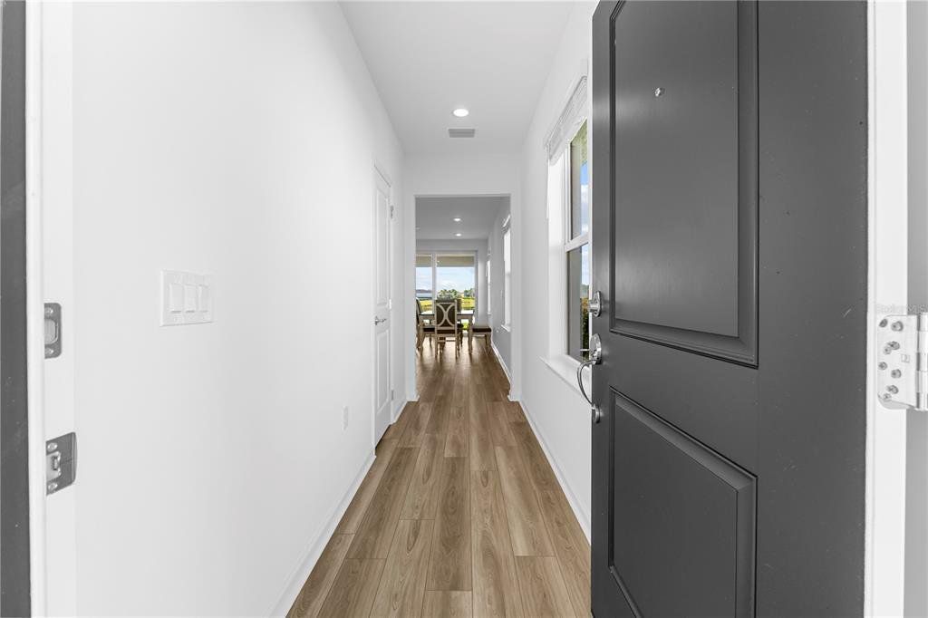 Stunning South-Facing Lake view Daylen Model in the beautiful Gated Community of Verde! Welcome to this spotless, 3 month old Daylen model home by Pulte, perfectly situated on a premium $25,000 south-facing waterfront lot in the highly desirable gated community of Verde. This home showcases over $40,000 in upgrades and offers serene lake views with modern luxury throughout. This is a beautiful four bedroom, two bath, family friendly home with a modern open concept with clean lines in a spacious kitchen with a large center island, and plenty of counter space. Warm modern laminate wood flooring, creating a seamless and elegant flow in the living, dining room and kitchen. The heart of the home features a large quartz island with basin sink, perfectly positioned to take in the expansive water views, along with a gas stove, stylish backsplash, modern faucets and ALL soft-close cabinetry. STAINLESS STEEL APPLIANCES and washer & dryer included. Upgraded recessed lighting enhances the living room, kitchen, and all bedrooms, adding warmth and sophistication. The primary suite is a true retreat, featuring a peaceful lake views, a spa-like en-suite bath with double sinks, upgraded tile, a frameless glass shower door, and and CUSTOM upgraded built-in recessed shower bench in the master shower! The extra-deep, oversized walk-in closet offers exceptional storage. Additional highlights include: Whole home has HURRICANE IMPACT GLASS Ring doorbell All-glass shower enclosures Modern finishes throughout Transferable builder warranty Furniture is negotiable No need for hurricane shutters Across the street from The Babcock Farmers Market and Explorers Park! Verde offers a resort-style pool, cabanas, and a prime location close to parks and amenities, making this home the perfect blend of comfort, style, and convenience. This is truly everything you want in a brand-new lake view home—move-in ready and impeccably maintained. Enjoy living in Babcock Ranch, America's first entirely solar-powered town, with access to multiple community pools, nature trails, with shopping and dining. Come enjoy the convenience living with festivals, farmer's markets, Concerts, Health gym and just a golf cart ride to the grocery store. There is so much to do with hundreds of clubs and activities planned every month. There is a K-12 neighborhood school with a brand new sports complex, including football, soccer and baseball fields. There are many playgrounds and parks, including multiple dog parks and a brand new skate park and six new parks along the nature trails. Babcock Ranch is a top master planned community and was featured on CNN and 60 Min for not losing any power or internet after hurricane Ian made a direct hit and Milton came very close. Beautiful parks and amenities let you experience SW Florida at its finest! Come live a better life at Babcock Ranch!