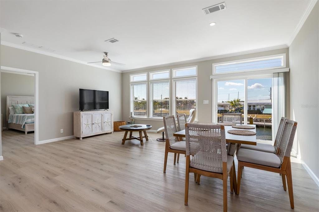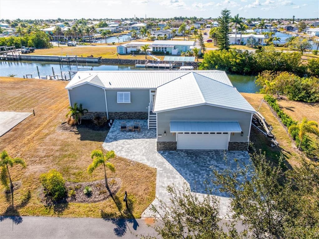 PARADISE FOUND — Gorgeous sailboat-access waterfront home on an oversized lot! This showcase-quality 2025 build features striking modern design, generous living space, and upscale finishes throughout. Thoughtfully crafted for comfort and style, it’s ideal for full-time living or the perfect seasonal coastal retreat. A rare opportunity to enjoy the boating lifestyle and elevated Florida living buyers are searching for. Step inside to a spacious, thoughtfully designed split floor plan filled with natural light, enhanced by transom windows above every window and door for a bright, cheerful feel throughout. A large flex room gives you the freedom to create anything you want — guest space, office, media room, or hobby studio. The modern open kitchen is a true centerpiece, featuring all-new stainless steel appliances, an abundance of cabinets, and generous prep space. The oversized island provides additional storage and the perfect gathering spot for entertaining and casual dining. An inside laundry room with utility sink leads to a massive garage with plenty of room for vehicles, storage, and all your boating and water toys. Situated at the end of a quiet street, the property has new tropical landscaping, a paver driveway, and standout curb appeal. Enjoy 125 feet of waterfront and the ultimate boating lifestyle — step out your back door, hop on your boat, and head straight to the Gulf with no bridges. The backyard offers ample room to entertain, relax, and enjoy peaceful sunset views over the water. Special note that this home is built to coastal building codes to with stand 180 MPH winds and has full storm protection for windows and doors. Located just minutes from downtown Punta Gorda, Fisherman’s Village, shopping, dining, and entertainment, this home combines modern comfort with true coastal adventure. Schedule your showing today and start living your Florida life now.