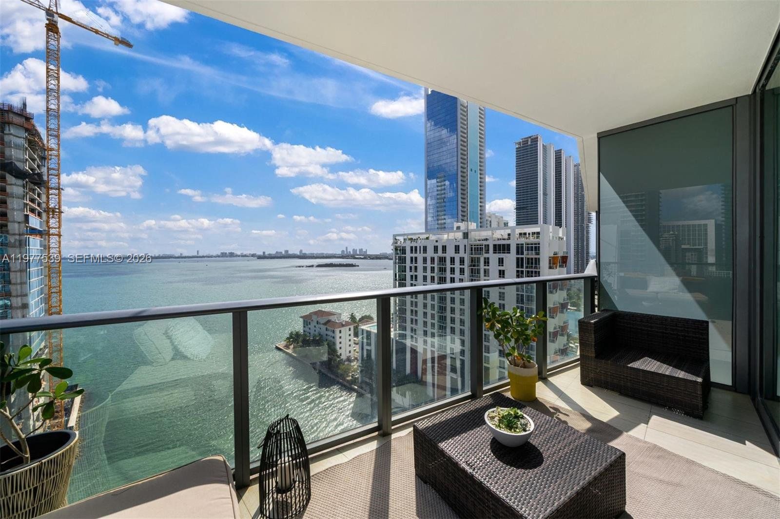 A private elevator opens directly into this bright corner residence featuring 2 bedrooms, 2 bathrooms, and a spacious Den, offering a versatile layout designed for both comfort and style. Floor-to-ceiling glass fills the home with natural light and offers breathtaking water views. The large flow-through floor plan feels open, airy, and serene, striking the perfect balance between luxury and livability. A large modern kitchen with sleek appliances and an oversized countertop with bar seating opens beautifully for everyday living and effortless entertaining. Additional highlights include custom built-out closets as well as two private balconies where you can enjoy both sunrise and sunset skies. Adding to the home’s appeal, both bathrooms feature exterior windows that bring in natural light and beautiful views. This residence offers a sense of privacy and calm in one of Miami’s most desirable waterfront buildings. Icon Bay residents enjoy premium amenities including a Bayfront pool, tennis courts, fitness center, theater room, sauna, spa rooms, 24-hour concierge, security and valet.