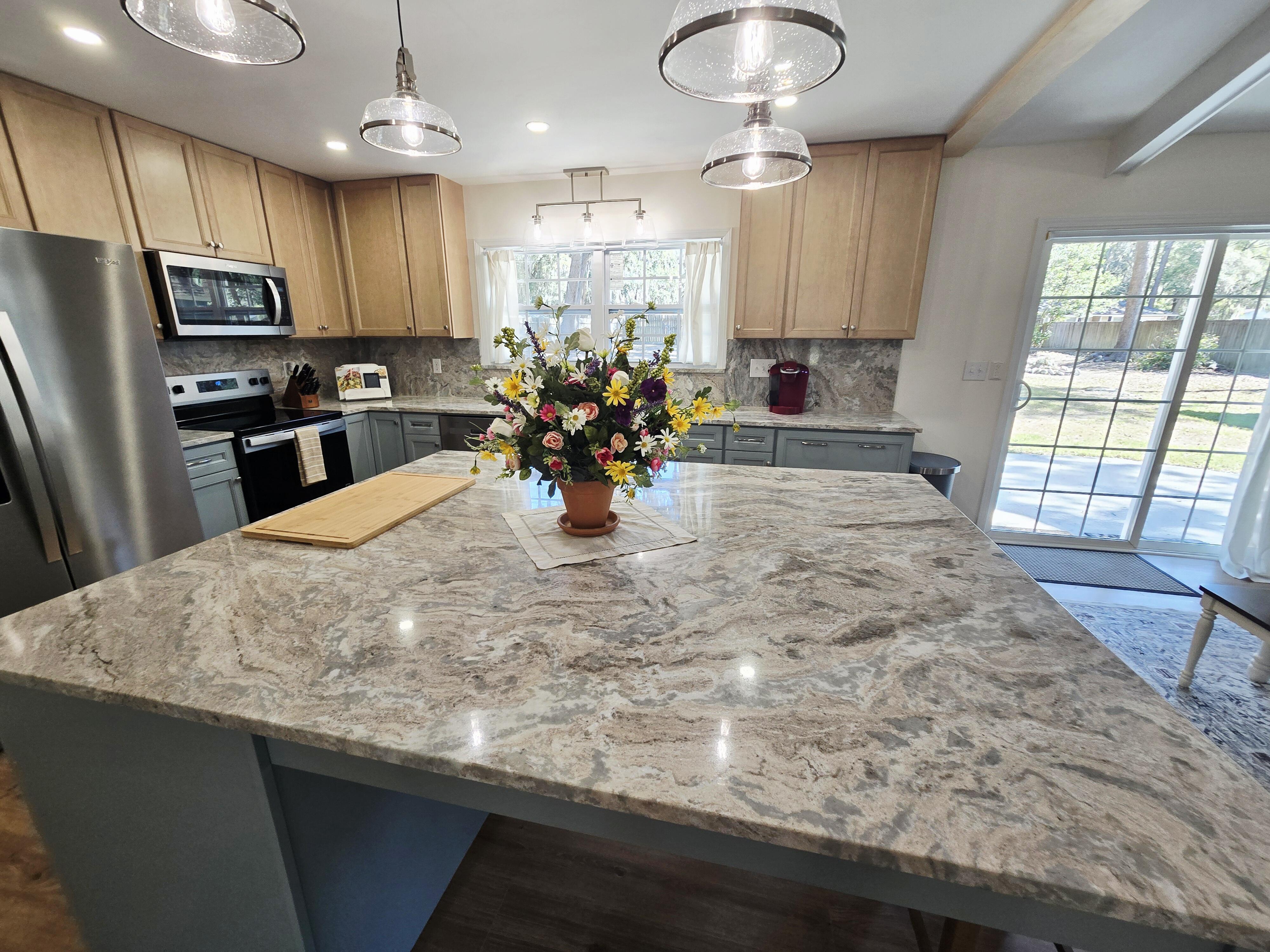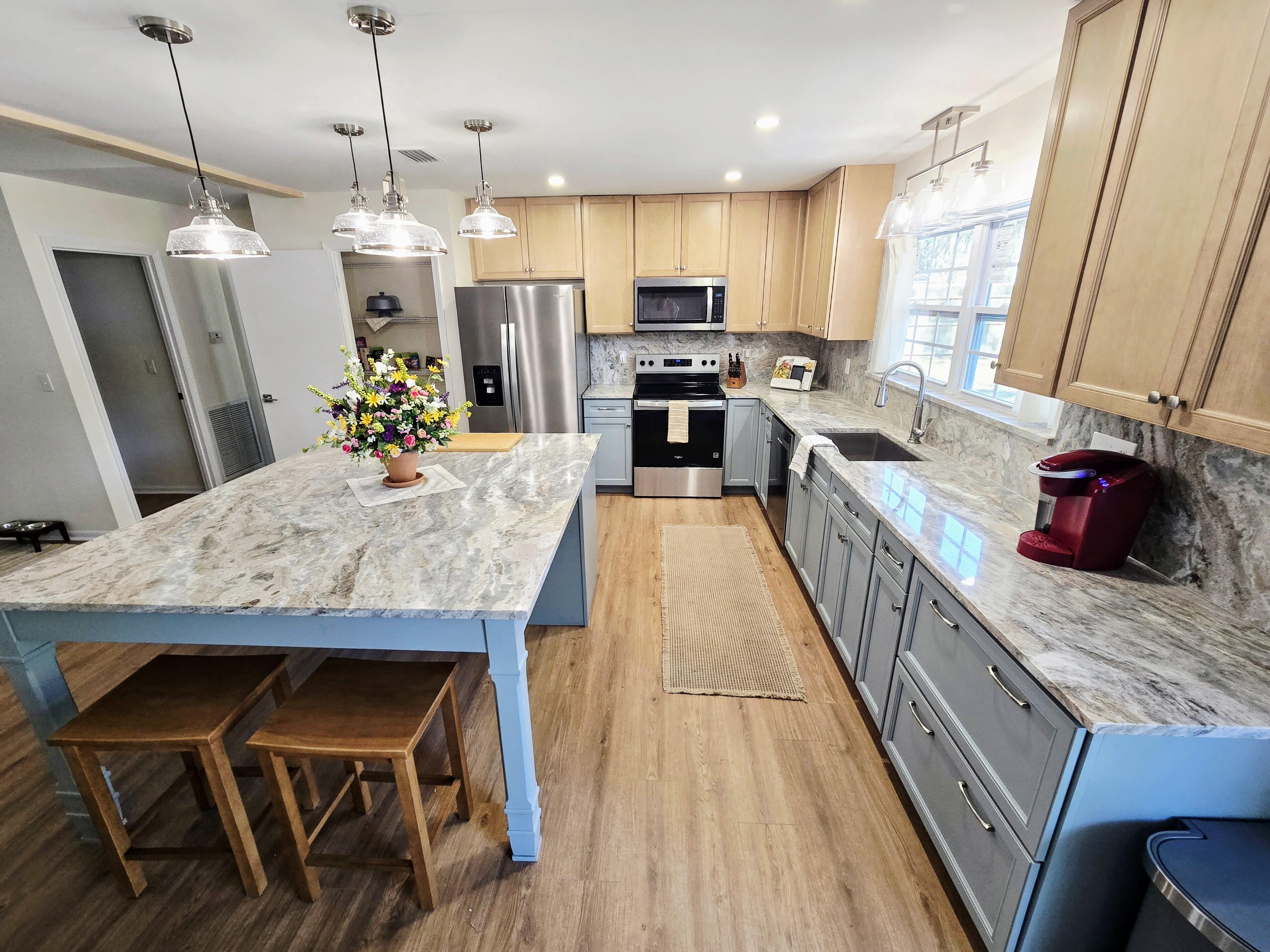 Get to the Point with this full renovation on a half-acre lot in the small, quiet & well-established River Oaks neighborhood – no HOA’s! This home boasts a new roof, all new American Craftsman windows & seamlessly installed Hydro-Shield laminate flooring throughout. Grand open concept living area with vaulted ceilings provides space to create your dream environment. Light & bright kitchen upgraded with brand new cabinetry, natural stone countertops & large center island with seating for four or more. Zero radius sink with pulldown faucet & full pantry storage. Plus all brand new, warrantied appliances! Bathrooms are fully updated with new cabinets, stone counters & large format tile. Roomy master shower features frameless glass. All new recess, pendant & fan lighting on smooth ceilings. Brand new front door with sidelight & interior doors with fresh hardware. Tastefully accented closets in every room – plenty of storage! Double garage with automatic openers. The property is clear of excessive tree & debris making way for sunny skies & river breezes. Three crepe myrtles grace the front lawn, waiting to bloom in the spring! A fantastic back yard has 364sqft of patio for dining & lounging, 170sqft garden shed & easy rear gated yard access for boat, rv, trailer, etc, without overcrowding. All this with privacy & the sweetest neighbors! Come to Point Peter Place, this one won’t last!!
