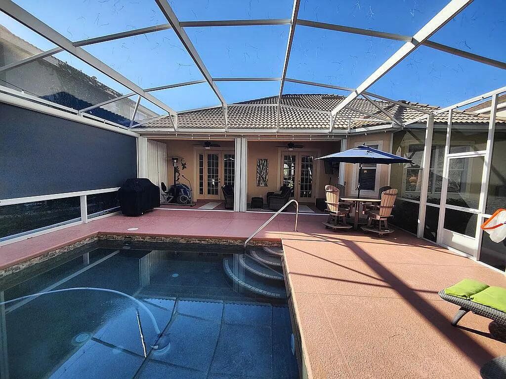 TROPICAL PARADISE! THIS 3 BEDROOM/2 BATH CUSTOM HOME HAS A SCREENED-IN HEATED SALT WATER POOL THAT BACKS UP TO A CONSERVATION/NATURE PRESERVE AREA IN THIS UNIQUE COMMUNITY OF VENETIAN BAY. KITCHEN: WOOD CABINETS, GRANITE COUNTERTOPS, STAINLESS STEEL APPLIANCES, BREAKFAST AREA & FAMILY ROOM WITH FRENCH DOORS OPEN UP TO A COVERED LANAI, SCREENED PATIO AND POOL ENHANCING THE OUTSIDE ENTERTAINMENT AREA. BEYOND IS THE LUSH TROPICAL NATURE PRESERVE OF TROPICAL PLANTS, FERNS, & PALMS. A REMOTE CONTROL PRIVACY SCREEN PROVIDES ADDITIONAL PRIVACY FROM NEIGHBORS ON THE SIDE. HARDWOOD FLOORS IN FORMAL DINING ROOM (CURRENTLY BEING USED AS AN OFFICE). 2-CAR GARAGE WITH LOFT STORAGE. NEW HVAC, NEW POOL HEATER & NEW POOL PUMP. FRAMELESS GLASS SHOWER ENCLOSURE IN MASTER BATH. LARGE MASTER BEDROOM WITH DOUBLE TRAY CEILING. PLUS NUMEROUS UPGRADES THROUGHOUT THIS LOVELY HOME. Show more
