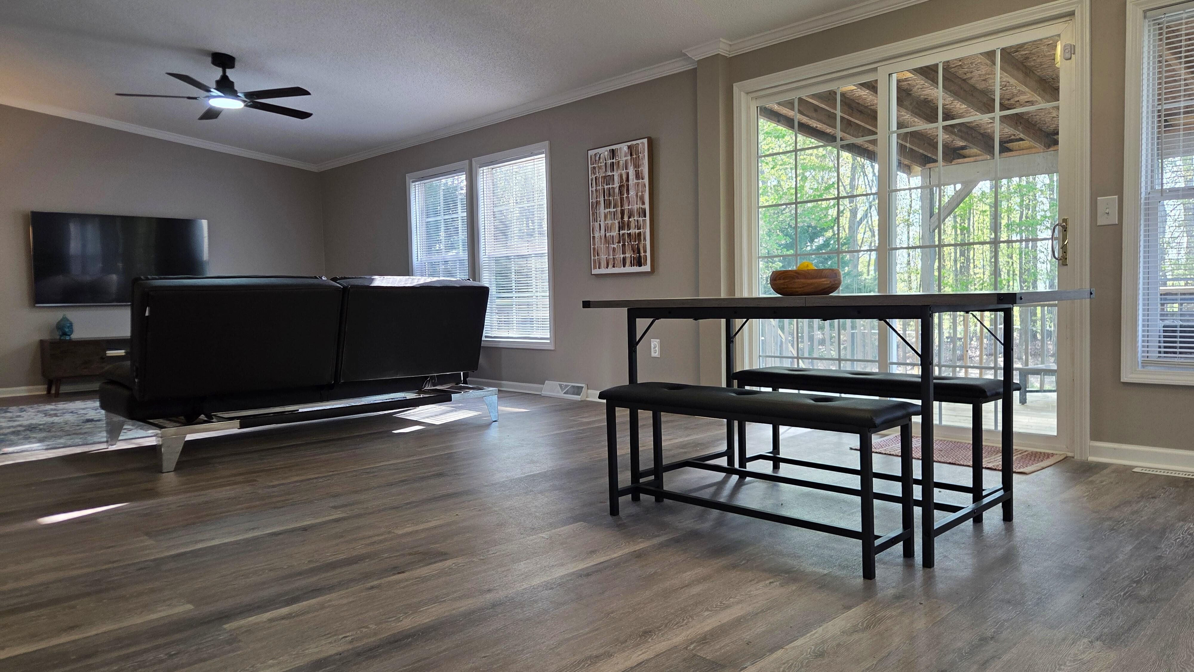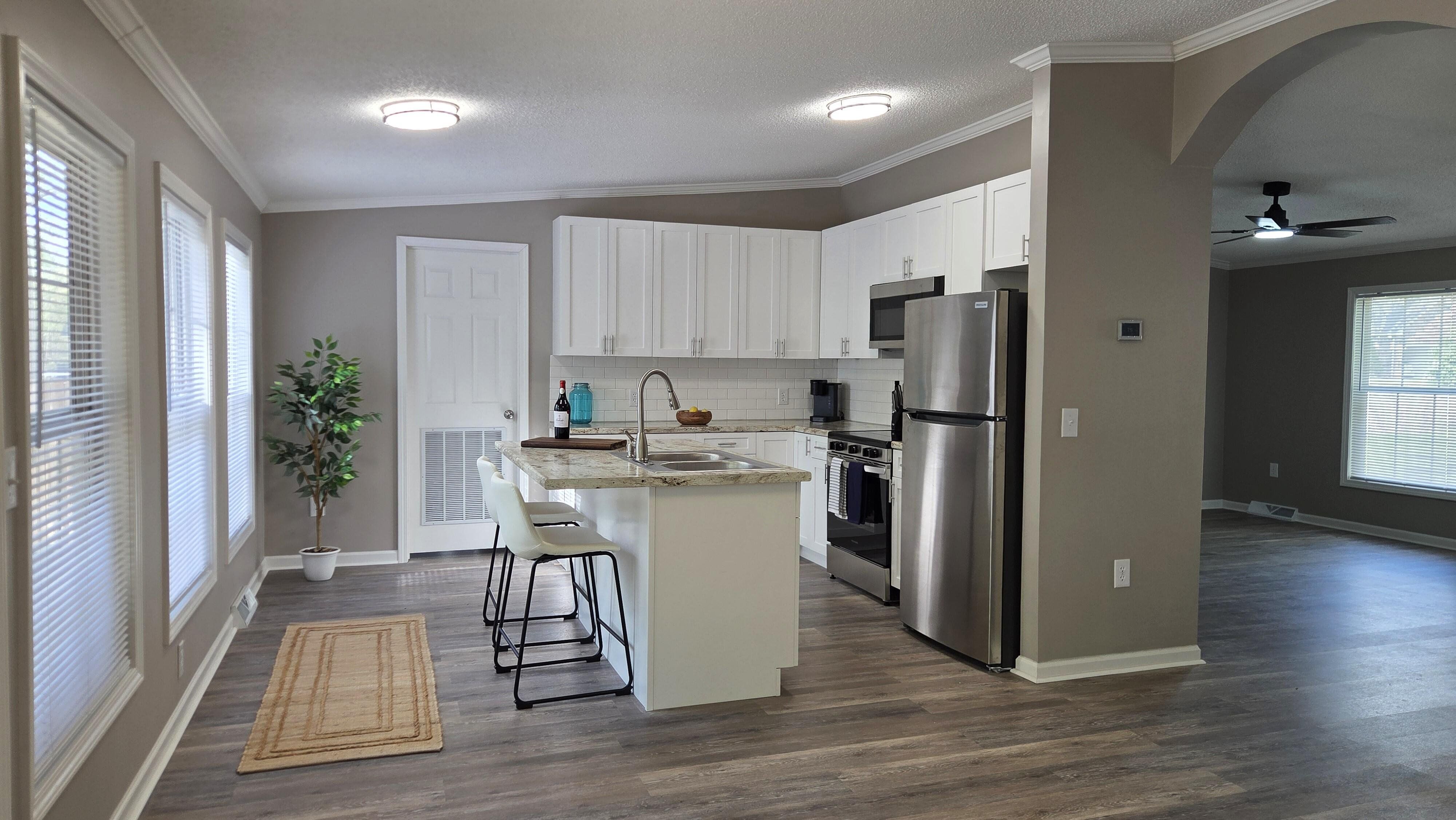 This charming home has been completely remodeled from top to bottom – literally! From the new roof to the new flooring, just about everything in between has been updated, replaced or re-done. Located on a quiet street, the home features spacious living areas filled with lots of natural light. In the kitchen, new stainless appliances complement custom cabinets and the open floor plan helps create a space that's just made for hanging out with family or entertaining friends. The partially covered back deck is a just a few steps away, too, for when the fun spills over outside. The new deck overlooks a large, completely fenced back yard that’s great for pets & little ones to roam safely. You’ll also find a wired, 2 car garage/workshop in the back of the property, along with another 8’x8’ storage building for mowers, yard tools, etc. Both bathrooms have been completely updated with all new fixtures and ceramic tile. Even the HVAC is new in this move-in ready home!