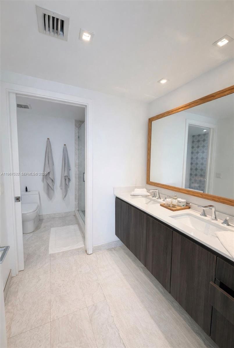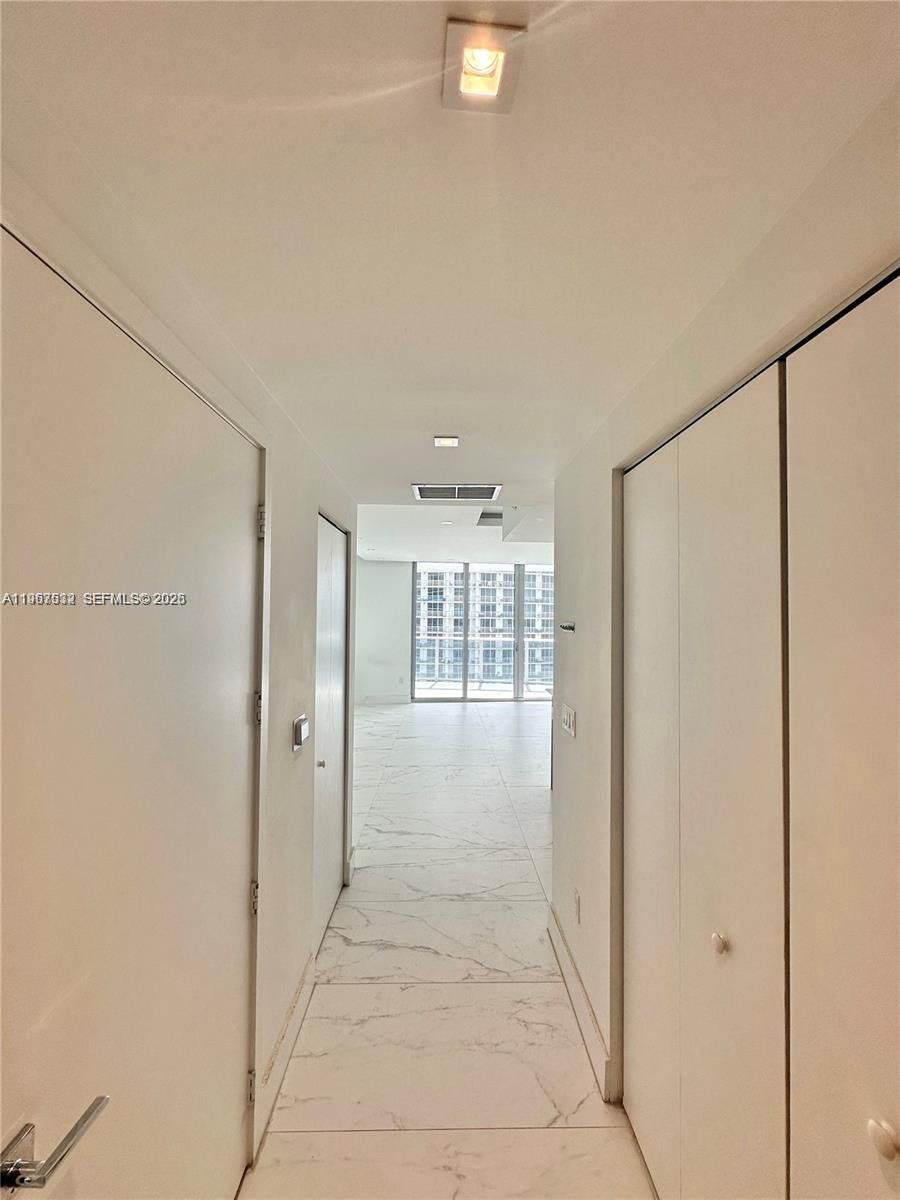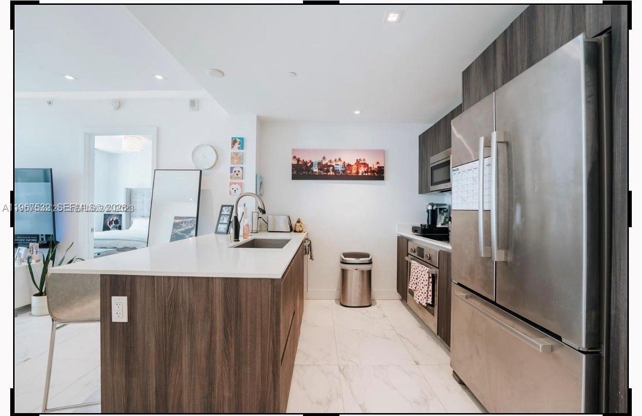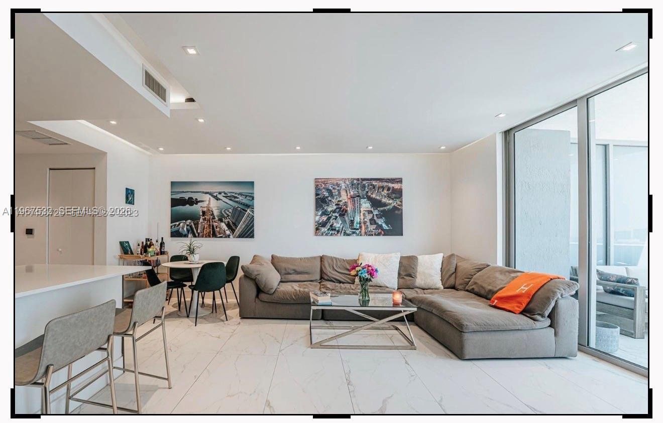 Centrally located in Miami's Arts & Entertainment District, Residence 4304 offers a spacious 1-bedroom, 1.5-bath layout with southern exposure and open views of Biscayne Bay and the Downtown Miami skyline. This well-appointed unit features tile flooring throughout the interior and balcony, custom drop ceiling with integrated ambient lighting, motorized blinds, quartz countertops, and Bosch stainless steel appliances. The primary bathroom includes an upgraded shower and soaking tub.