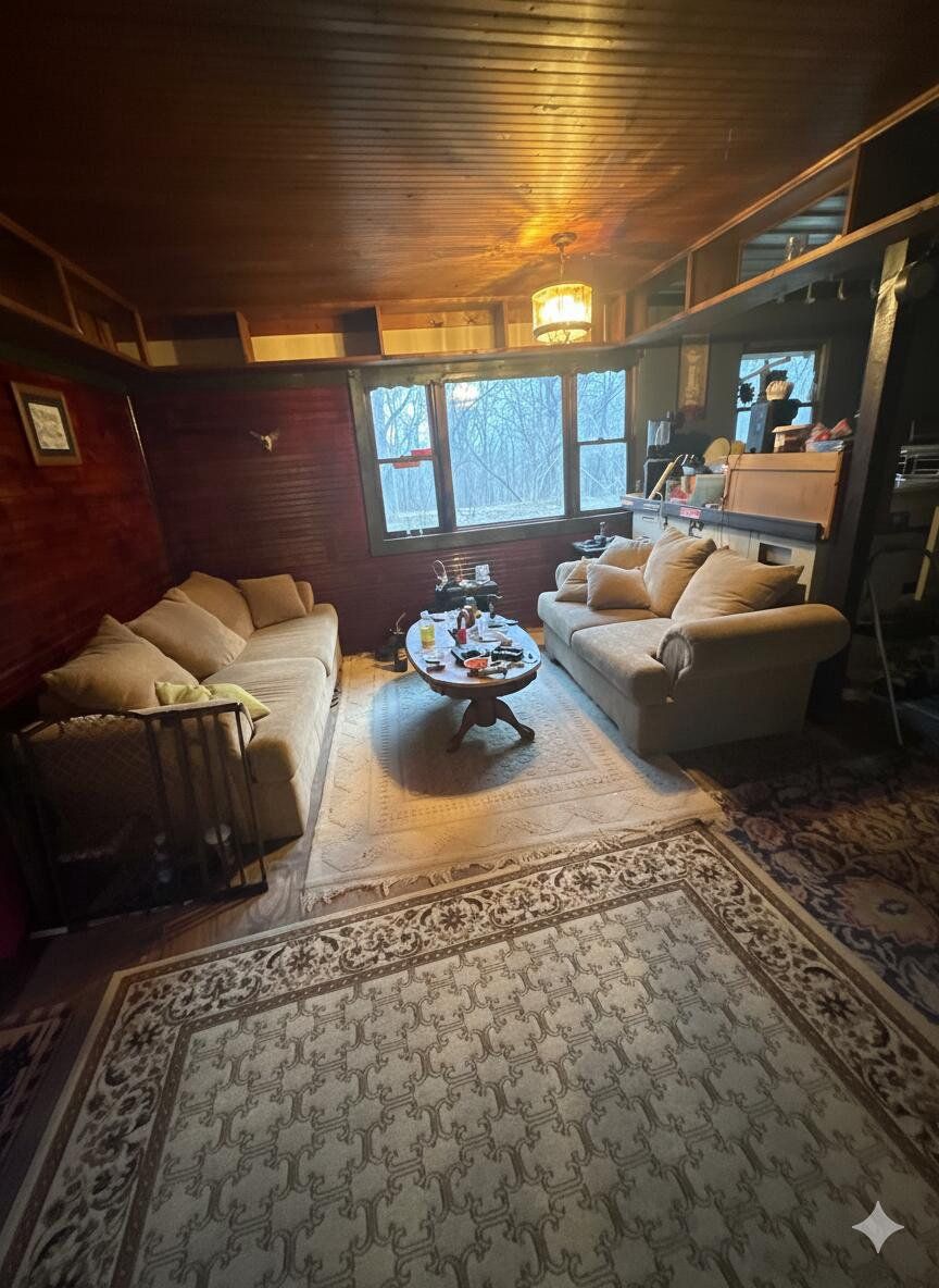 Custom built by the original owners in 1989, this charming 2-story home features 2 bedrooms, 2.5 baths, and a partially finished basement on a beautiful 1-acre lot. Spacious living areas showcase extensive wood trim, built-ins, stained picture windows, and shelving that wraps the living and kitchen spaces, adding warmth and character throughout. Both bedrooms feature walk-in closets, with ceiling fans in every room. The kitchen trim has been recently repainted, sanded, and stained. Enjoy additional storage or expansion potential with a large walk-up attic. Total electric with newer furnace, sewer connection, and energy-efficient solar bubble windows throughout. Located on a hill with front-row views of the annual antique car hill climb event each October.