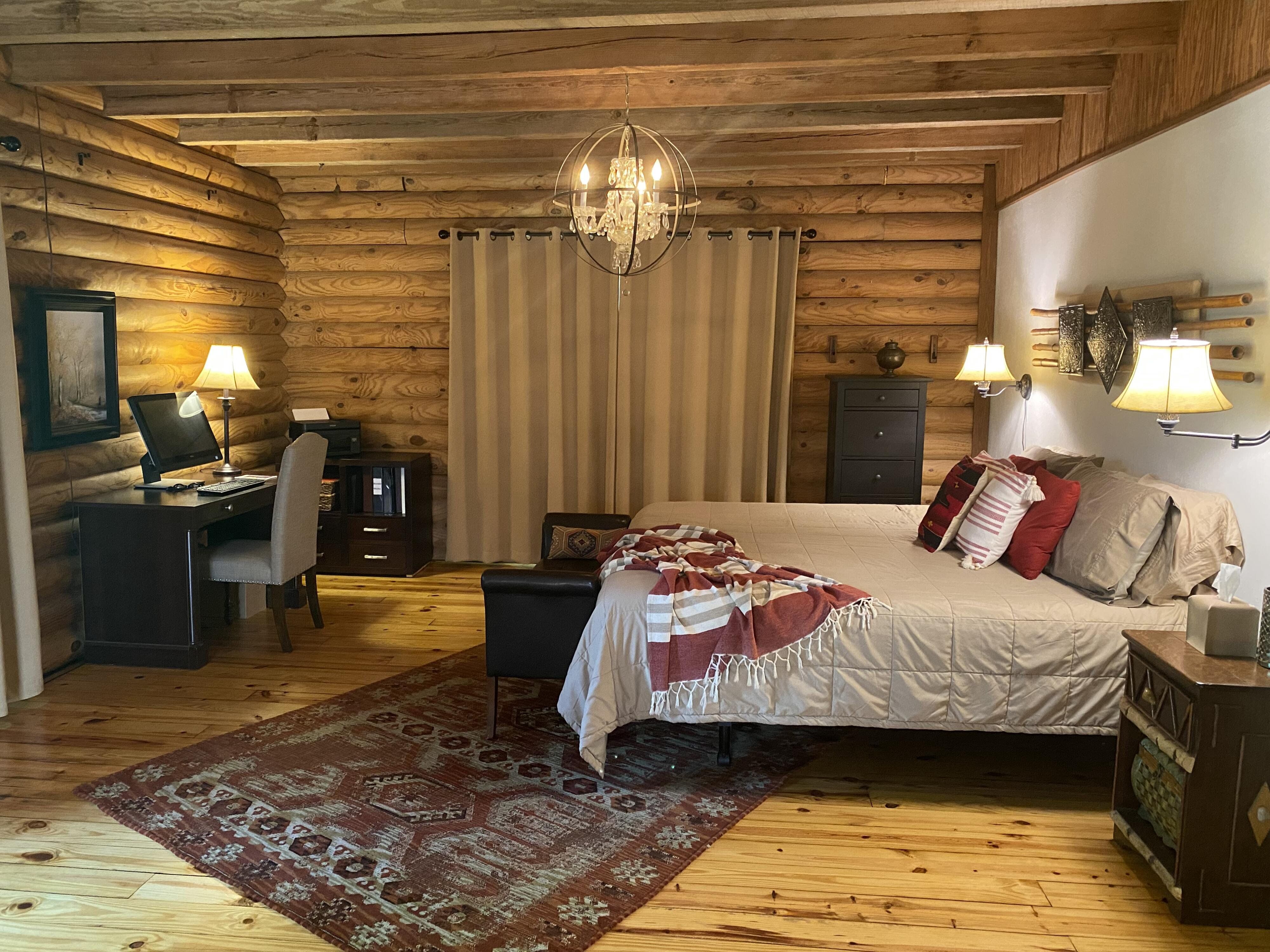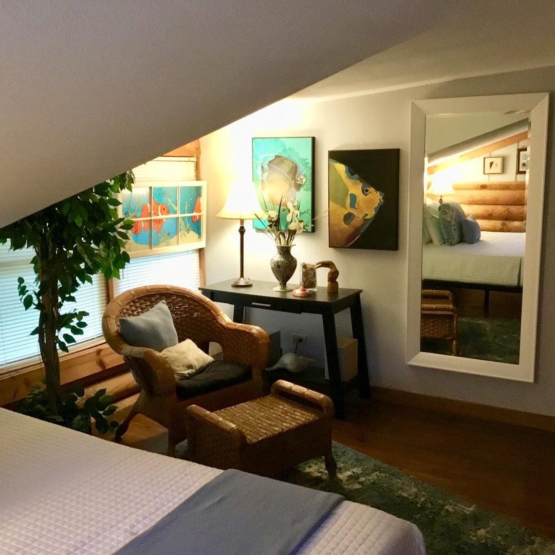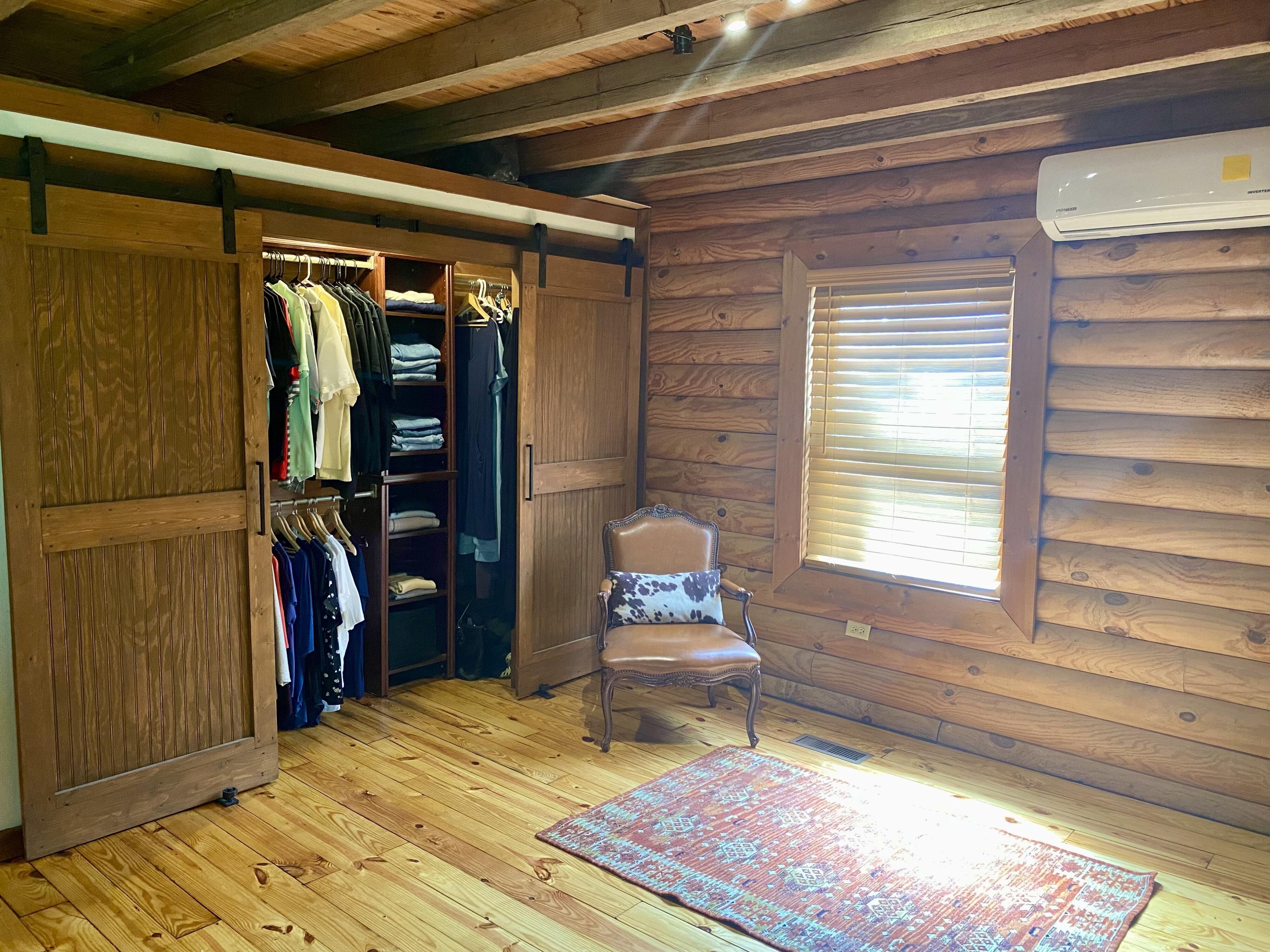 A unique and charming log home in the woods, close to shopping, town and highly rated schools. This home has been remodeled inside and out. Impeccably maintained and loved; the home boasts a large master suite with bedroom, bathroom and office (or nursery). Upstairs are 2 bedrooms, bathroom and loft living area with a kitchenette. There's an inviting front porch to add a swing. In the back, a new multi-layer deck (lower deck already wired for hot tub) and a fire pit area make it great spot for entertaining. The open-concept floor plan creates an airy atmosphere with soaring high ceilings in the living room and high ceilings throughout the rest of the home. The kitchen is a dream kitchen, all stainless steel appliances (30” wall oven, 2 drawer dishwasher, 2-door frig, 50lb under counter ice machine, toaster oven and microwave) and a laundry/pantry off the kitchen with chest freezer, washer and dryer. There are also 2 detached storage sheds. This home is definitely a must see. Other items included in the sale: Honda riding mower, battery lawn mower, battery edger, extension ladder, 8' ladder, patio furniture (sofa w/cushions, 6 chairs, bistro table, 2 bar stools, fire pit, refrigerator, dishwasher, wall oven, induction 2-top, induction pots & pans, 2 microwaves, toaster oven, 5 metal wall sconces, small frig, 42" wall mount TV, washer & dryer, chest freezer, crystal chandelier, queen headboard, queen mattress & frame, 2 XL tool boxes, generator, AC window unit and ALL WINDOW TREATMENTS.