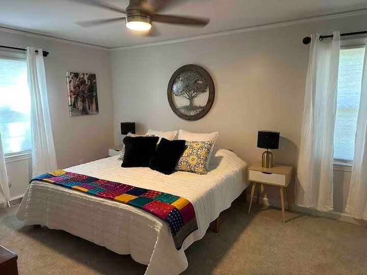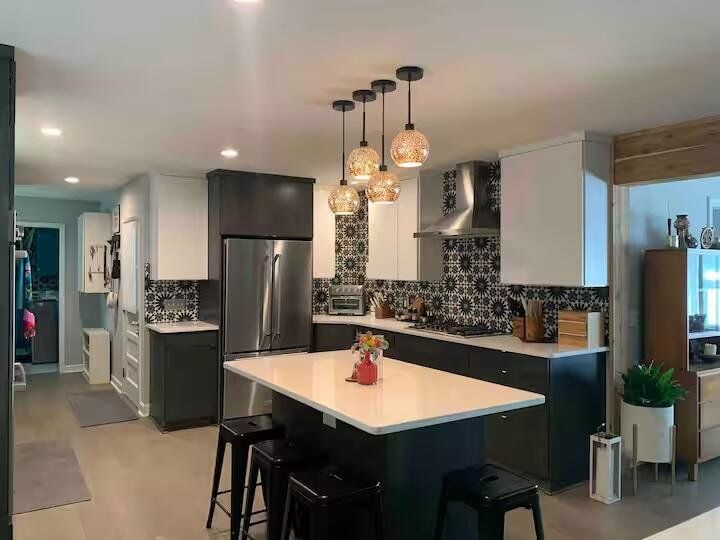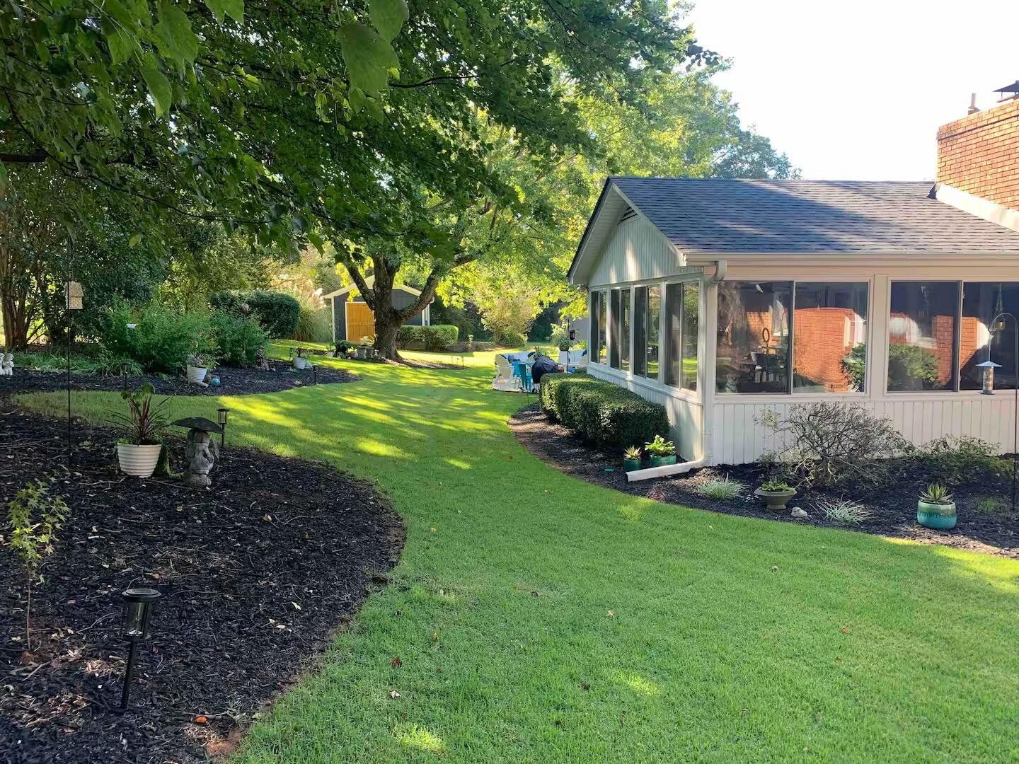 Completely renovated within the last few years, this charming home nestled in a serene cul-de-sac in Greenville, features an inviting open floor plan, a spacious living area, modern kitchen with stainless steel appliances, and a sprawling dining space. There are four bedrooms and two and a half bathrooms, with a separate office space and huge screened in porch. The master suite has ample comfort with a walk-in closet and ensuite bath. Enjoy outdoor relaxation on the private porch overlooking a well-maintained yard and firepit area. Only minutes from charming downtown Greenville, this home is conveniently located near hospitals, shopping, dining, and local parks, for both comfort and accessibility. Other details about the house are engineered hardwood floors, new carpet, custom maple builtin cabinets in kitchen, large island, quartz countertops and oversized laundry room with beautiful tile work throughout. All bathrooms have new hardwood vanities with marble tops and marble floors. Oversized garage and outdoor workshop great for shed, playhouse, great for a cottage industry. Neighborhood has wide streets with mature trees with a neighborhood park and green space.