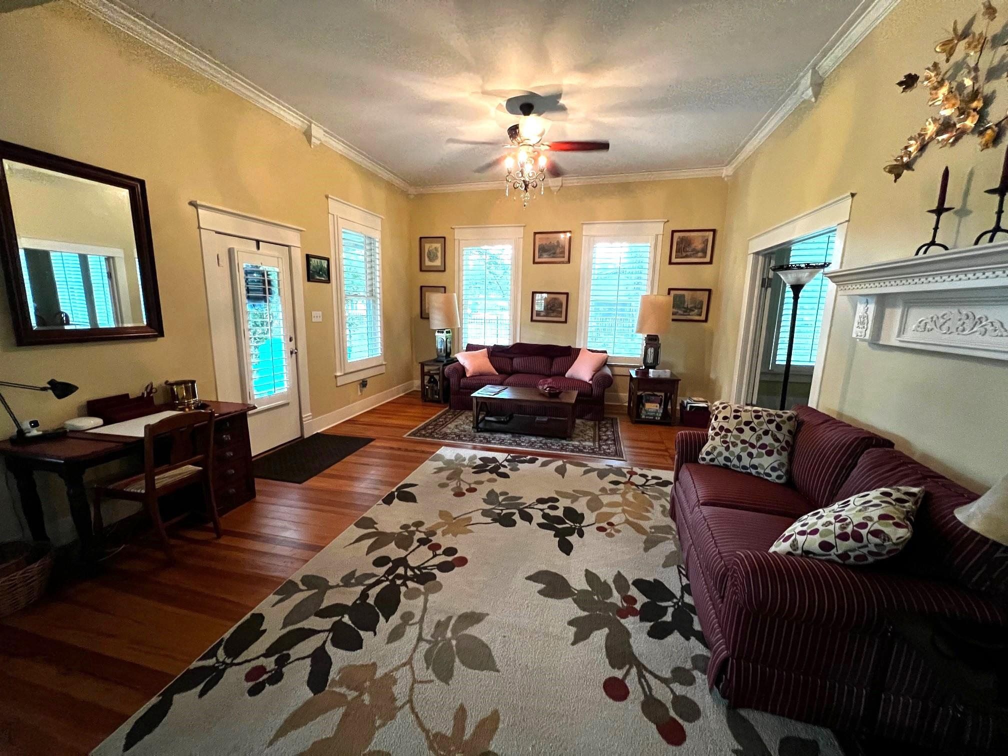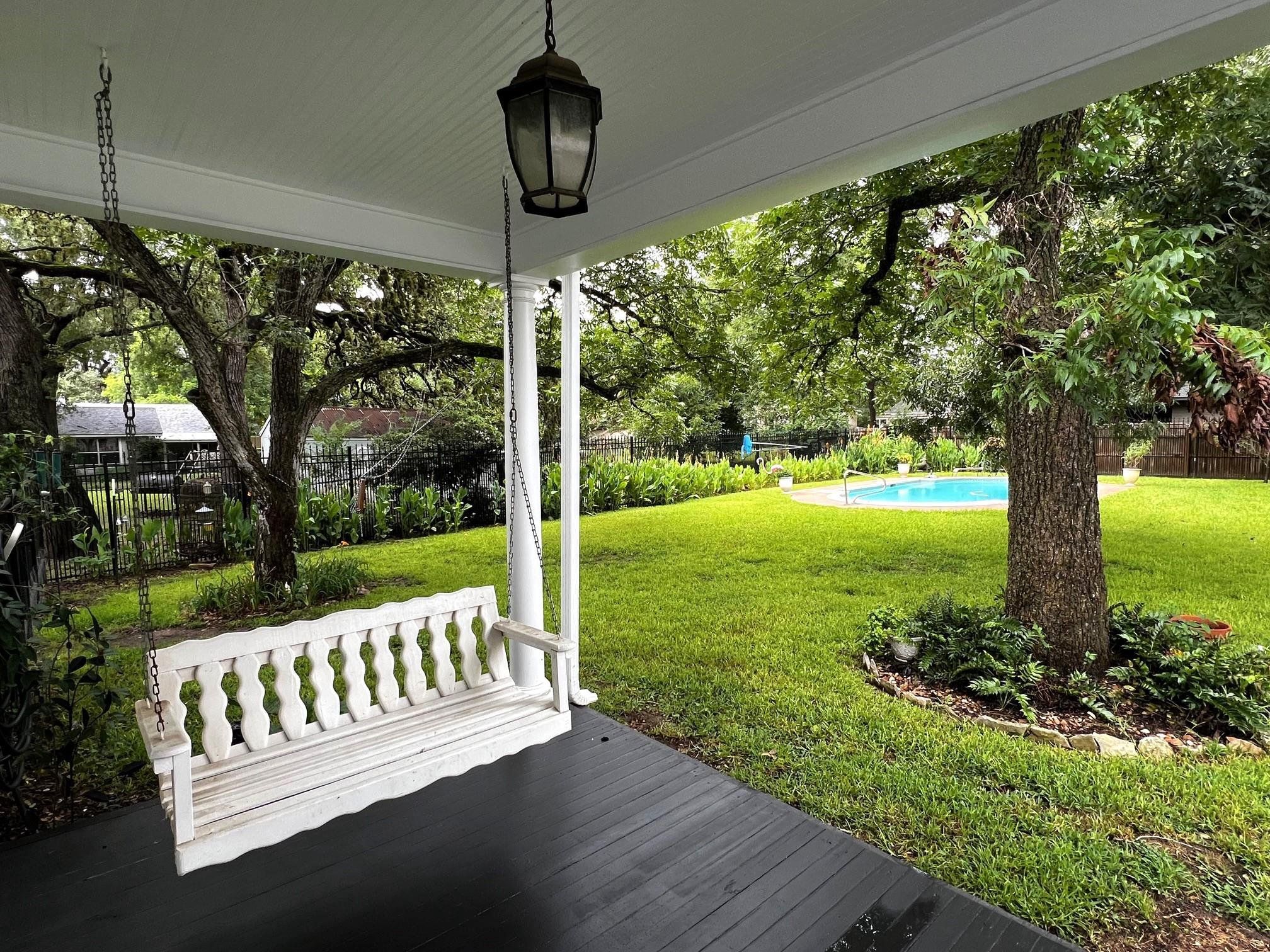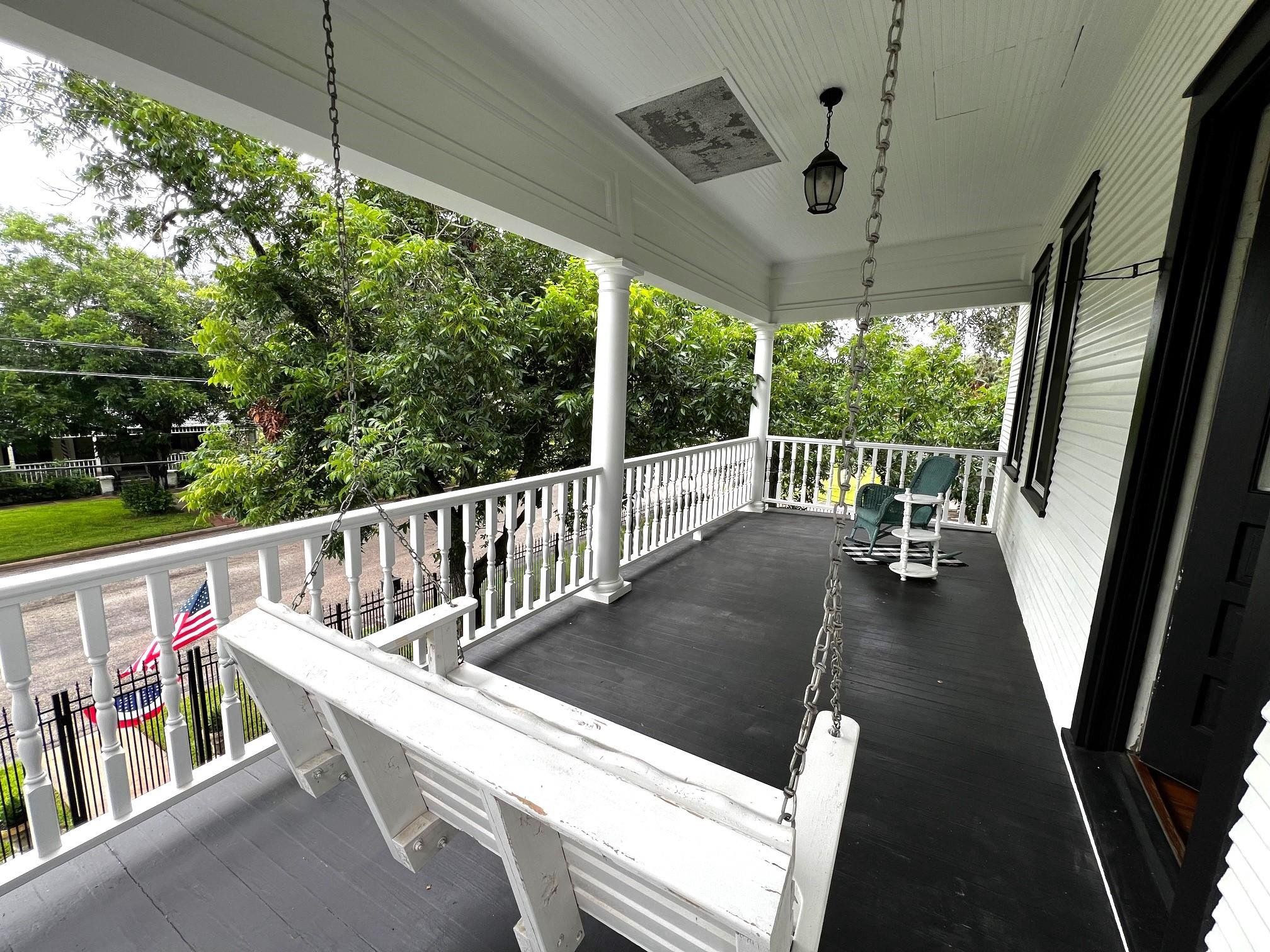 Circa 1917, this gorgeous Victorian beauty has been well maintained & is ready to move in! Exterior recently repainted, custom 24 gauge standing seam metal roof w/ gutters, covered front/back/side porches & upstairs balcony. 2,592 sq. ft. of character & charm updated w/today's amenities & trends, yet keeping the integrity of yesteryear. Plumbing throughout the entire home was replaced & new waste lines to sewer in 2015. Original long leaf pine floors refinished, sealed & restored to their original glory. Plantation shutters, ceiling fans w/ stunning drop down chandeliers, detailed wall sconces, pendants, lanterns & crown moulding. Custom dark wood stained cabinets in the kitchen w/ bead board accents, chandelier, pressed tin ceiling, Kenmore Elite stainless steel appliances, disposal, pot filler, Italian marble counter tops & tile backsplash. Main bedroom has 2 lg closets, window seat w/ extra storage & French doors leading out to a private patio overlooking a backyard oasis! Main bathroom w/ Italian marble floors & lg handicap accessible walk in shower. Inside laundry rm. Upstairs has 3 bedrooms, full bathroom w/ bathtub & separate shower, sun room & balcony access. 664 sq. ft. detached 2 car garage w/ Epoxy painted floors, 2 garage doors w/ electric openers, window unit w/ heating & cooling, 2 ceiling fans, windows, attached storage rm & attic storage. Attached to the garage is an efficiency guest home/casita w/ approximately 384 sq. ft. which would also make a great home office or air b&b. Inside you will find an open floorplan w/ 1 bedroom, closet, full kitchen w/ electric stove, refrigerator & sink, laminate wood flooring, private bath w/ furniture style vanity & sink, shower/bathtub combo, window a/c & heat & plantation shutters. All this sits on a beautifully manicured, tree shaded, fully fenced corner lot w/ landscaping, irrigation & an inground swimming pool. This property is truly a gem!
