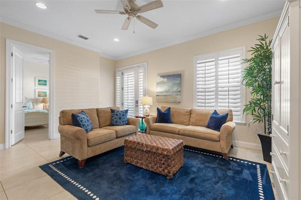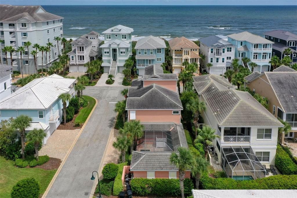 Experience the ultimate Florida coastal lifestyle in this three-story beachside retreat located directly across from the Atlantic Ocean. With ocean breezes, easy beach access just steps away, and a proven vacation rental history through Cinnamon Beach Vacations, this 4-bedroom, 3 full bath, 2 half bath home offers the perfect balance of private escape and investment potential. The first floor features two guest bedrooms joined by a Jack-and-Jill bath, a guest den, and a dedicated home office that could easily converted to an additional bedroom. An oversized covered patio and outdoor shower make beach days effortless. An elevator provides easy access to all three levels. The heart of the home is an open-concept island kitchen with granite countertops flanked by two elegant chandeliers, custom cabinetry, and a large dining area perfect for entertaining. The living room is accented by wood-inset ceilings, coastal-themed décor, and warm wood-look tile floors, creating a refined yet relaxed atmosphere. Three sets of French doors open to a wide balcony that welcomes in the salty breeze. The primary suite is privately tucked away, featuring a tray ceiling with wood detail, a spacious walk-in closet, and a spa-style bathroom with dual vanities and an oversized glass-enclosed shower. For convenience, the laundry room is located on this level as well. Designed for both privacy and entertaining, the enclosed courtyard pool and hot tub are complemented by a large outdoor lounge with oversized sofas, a grilling station, and a fireplace. Whether hosting friends for dinner, watching the game on the outdoor TV, or enjoying a quiet night by the fire, this resort-style space is truly the centerpiece of the home. Third Level – Private Guest Suite & Balcony. The top floor offers a guest suite with a private full bath, wet bar, and direct access to its own private balcony—perfect for taking in coastal views and enjoying a morning coffee or evening cocktail. The Cinnamon Beach community was designed to feel like a private coastal retreat, offering exceptional amenities within easy walking distance. Owners and guests enjoy two resort-style pools — an oceanfront pool and a lakeside zero-entry pool, along with hot tubs, a children’s splash park, clubhouse, fitness center, an adult lounge area and a kid's game room that create a true vacation atmosphere year-round. There is a cafe located at the lakeside pool that offers lunch bites and poolside beverage service. Cinnamon Beach is part of the larger Ocean Hammock coastal enclave, known for its quiet streets, scenic lakes, and proximity to championship golf. The renowned Jack Nicklaus Signature Ocean Course at Hammock Beach Resort is just minutes away, offering spectacular oceanfront golf and additional resort experiences for those who choose to join the club. Beyond the gates, residents enjoy the best of Northeast Florida living. The community sits just 20 minutes from historic St. Augustine, 30 minutes from Daytona Beach, and roughly an hour from Orlando, making it an ideal home base for both quiet coastal living and easy access to world-class dining, culture, and entertainment. With its private beach access, resort-style amenities, and peaceful coastal setting, this home is situated in one of the most desirable neighborhoods along Florida’s Atlantic coast — a place where everyday living feels like a vacation.