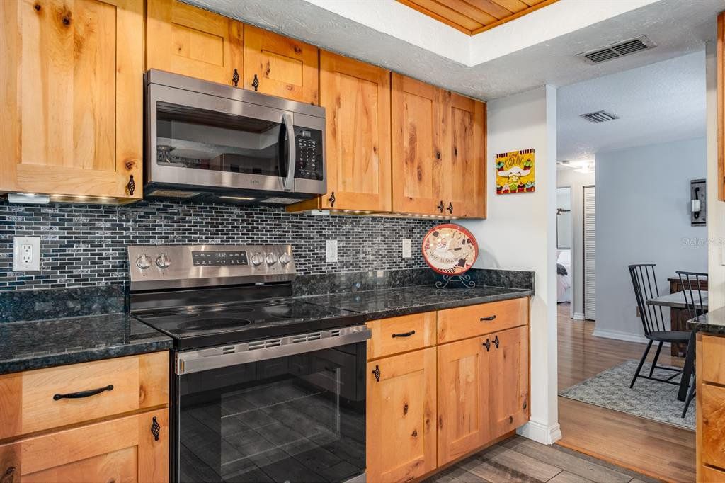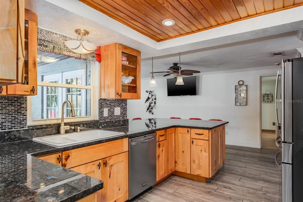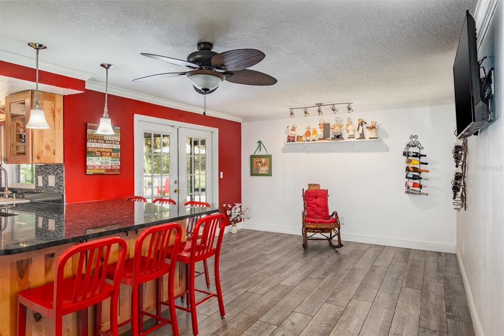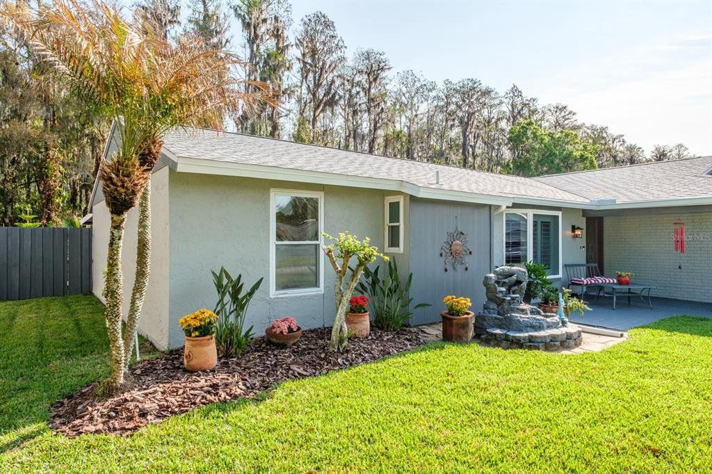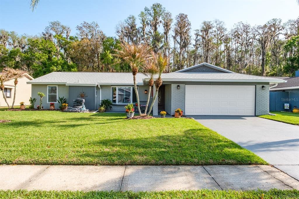 Location! Location! Location! This lovely home sits on a gorgeous conservation lot and offers tranquil stunning views in the desirable community of Forest Lakes… Move-in ready offering over 1,700 sq.ft. of fine Florida living featuring 3 bedrooms in a popular split bedroom layout, 2 baths and a 2 car garage. Covered front entry leads to Elegant single leaded glass door to the spacious living room featuring wood flooring and Bay window with plantation shutters providing tons of natural sun light. The formal dining room also features wood flooring, designer light fixture and French doors that lead to your outdoor paradise. The fabulous remodeled kitchen (2016) boasts porcelain tile flooring, granite countertops, soft close wood cabinetry with 2 lazy suzannes and under cabinetry lighting, designer tile backsplash, elegant hardware, wood accented raised ceiling, breakfast bar with lower cabinetry, pendant lighting, full wall pantry, stainless steel appliances including ceran top range and dishwasher (3/2026), built-in microwave (2025), and 4-door refrigerator (2023). Family room located just off the kitchen also has French doors leading to the outdoor paradise. Large primary bedroom boasts laminate flooring and features a walk-in closet with custom closet cabinetry and an impressive updated ensuite bath (2021) with stunning gorgeous granite countertops, dual undermount sinks, tumble marble backsplash, full walk-in shower through the block and glass door. The secondary bedrooms are located on the other side of the home with convenient hall bathroom serving them both boasting tub/shower Jacuzzi bathtub, single decorative vanity with tumble marble backsplash, and wainscoting wall accents. Extend your living and entertaining outdoors through either set of French doors to your serene oasis with roomy screen enclosed lanai which leads to a secondary outdoor entertaining deck with tranquil fountain and stunning conservation views!!! Fully fenced, Florida living at its best… enjoy a morning cup of coffee or afternoon cocktail watching the wildlife including turkeys and deer. Simply magnificent…Important updates include Roof 2025, Flat Roof 1/2026, AC 2025, Water Heater 2023, Washer 2026, Electrical panel 2024 including 30 amp hookup ideal for a generator, Hurricane impact garage door, garage door opener 2023, double paned windows 2016, Exterior Gutters 4/2025, and ceilings textured 2016. Forest Lakes Community offers fabulous amenities including, pool, playground and picnic area, basketball, racquet-ball, tennis and pickle ball courts. The ideal Oldsmar location is convenient for access to shopping, restaurants, airports and of course the famed Gulf beaches and Dunedin’s Honeymoon Island! A great place to call home!!