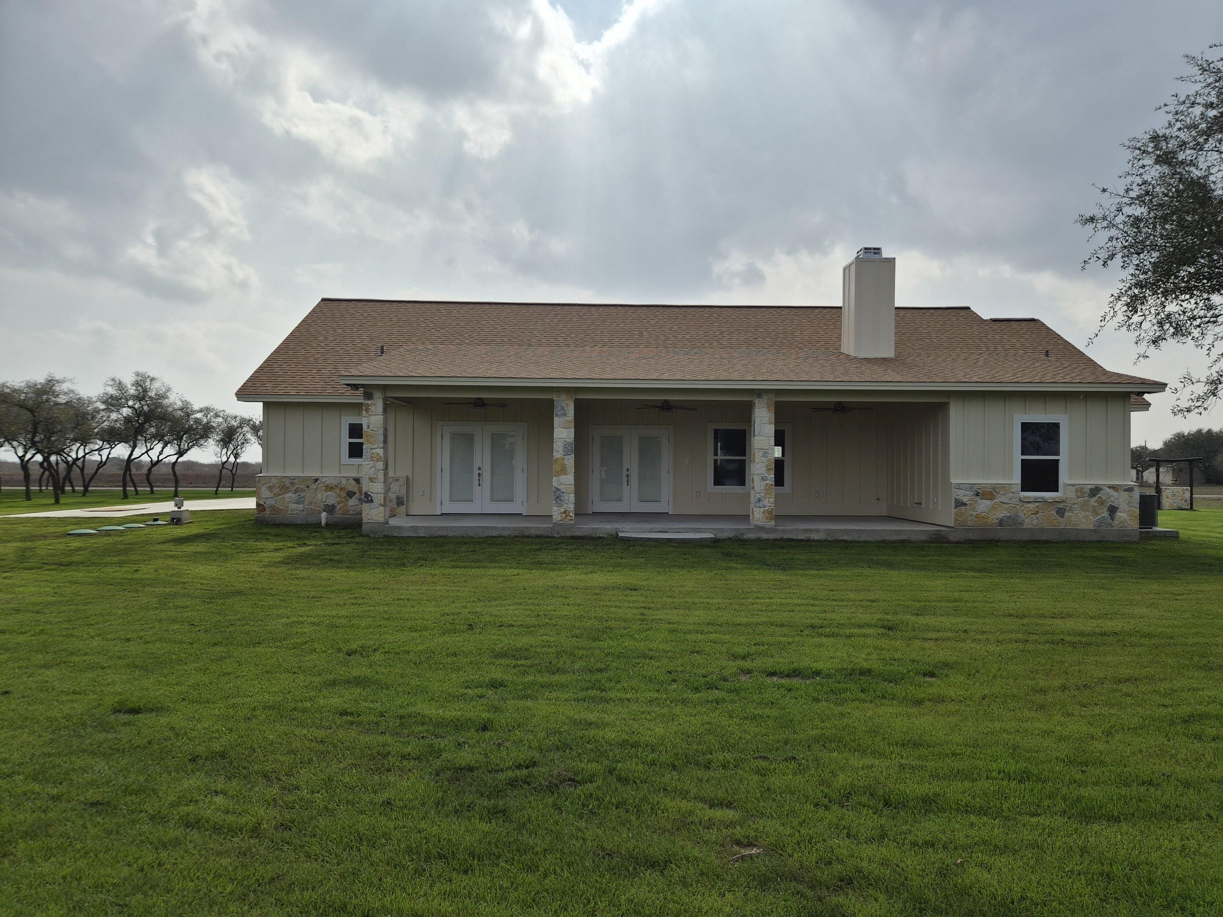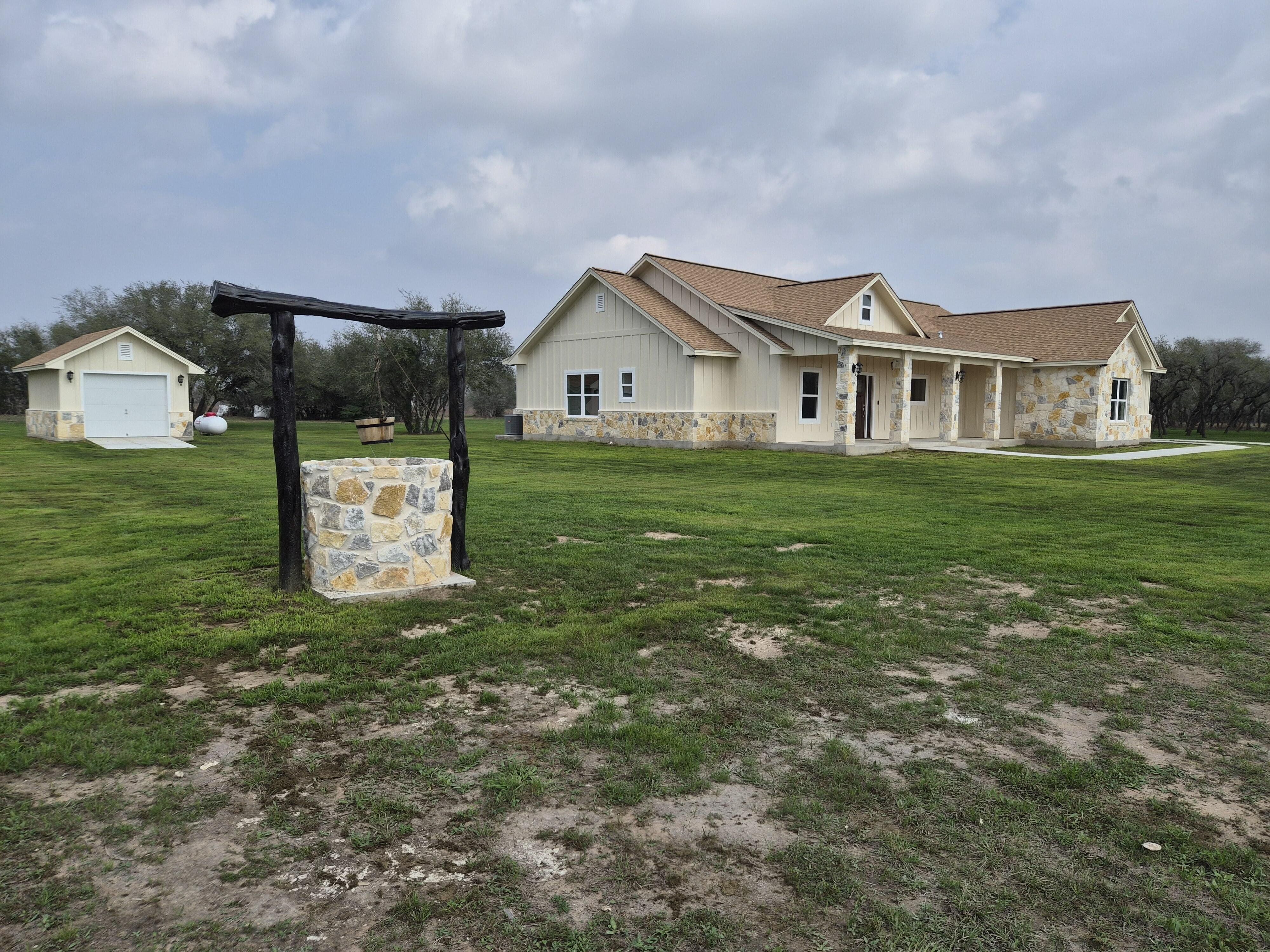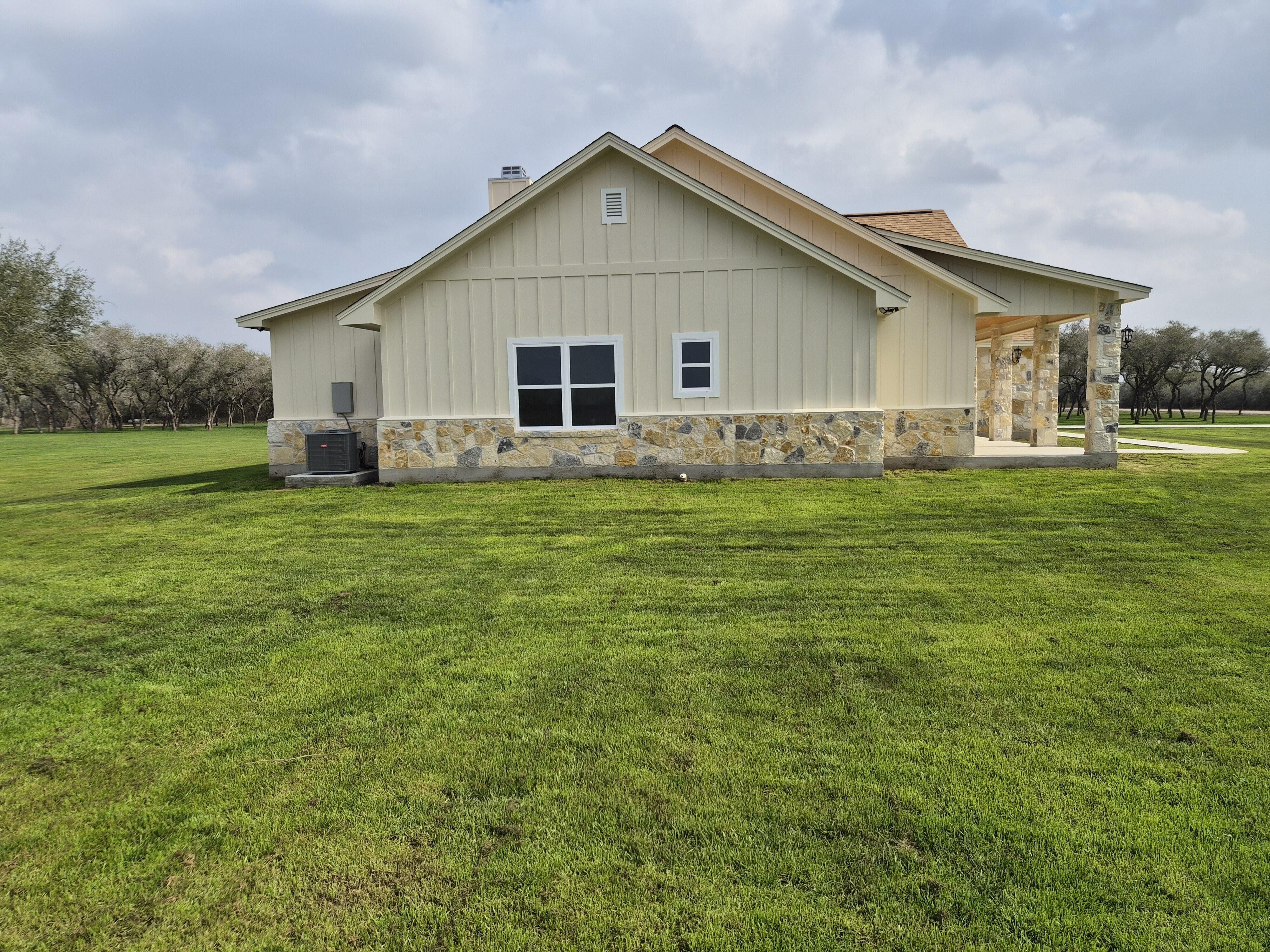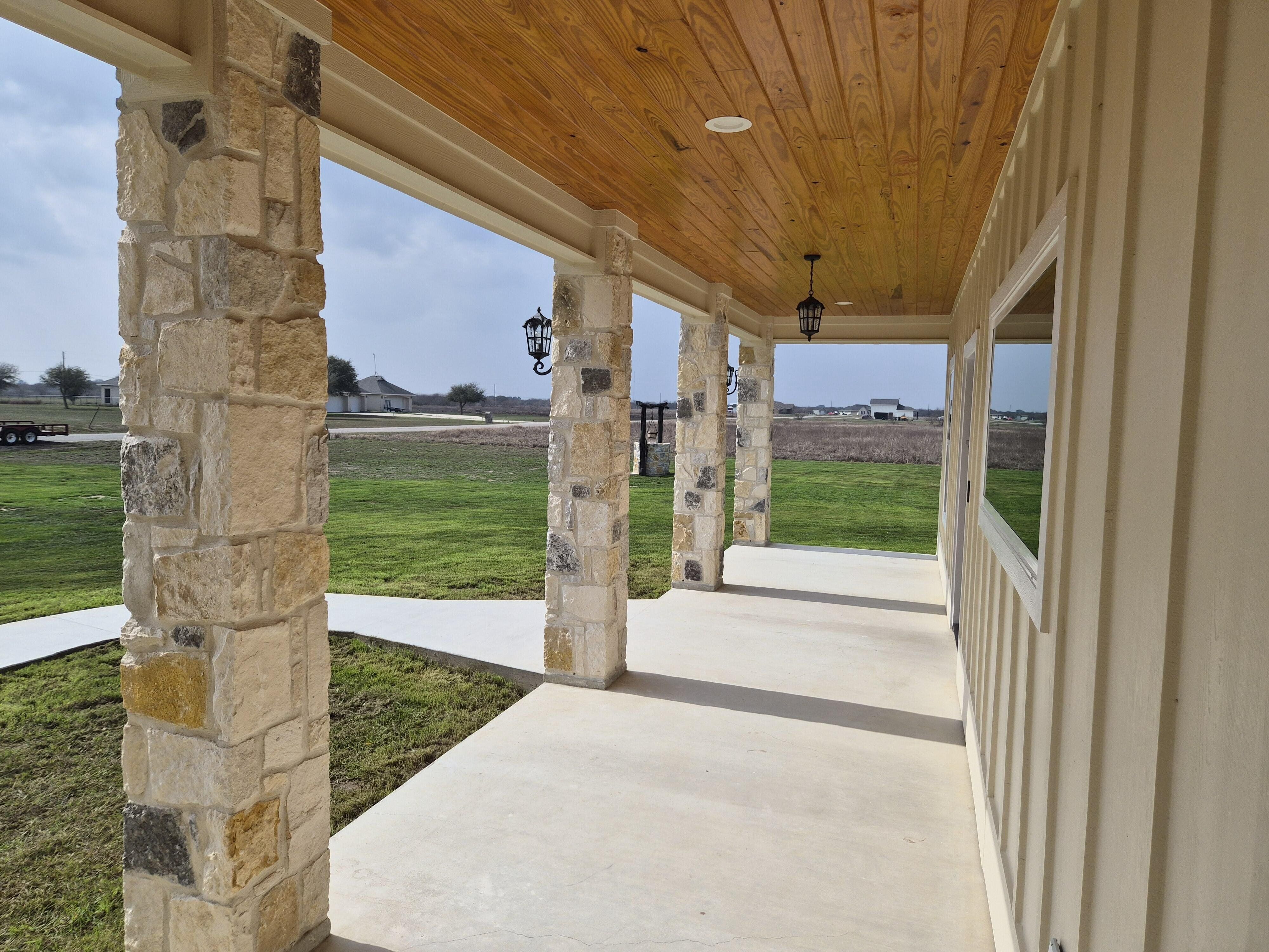 520 Essence Dr Victoria, TX. Premium New-Build on 3 Private Acres in Serenity Estates. 4 Bedrooms (or 3 + Office) | 2 Bathrooms | 2,020 Sq Ft Living Area | Expansive Porches (715 Sq Ft) 2-Car Garage (615 Sq Ft) 216 Sq Ft Storage Building | 3-Acre lot with wooded park-like side yard. Flexible Layout, Open-Concept Living, Gourmet Kitchen (with premium built-in appliances), practical extras (mud room, large utility room, and equipment room). Beautiful built-in rock fireplace. Premium touches throughout and engineered for strength and longevity. This brand-new 2026 construction delivers premium quality, thoughtful design, and abundant space on a peaceful 3-acre lot. Rural tranquility and nearby Victoria amenities.
