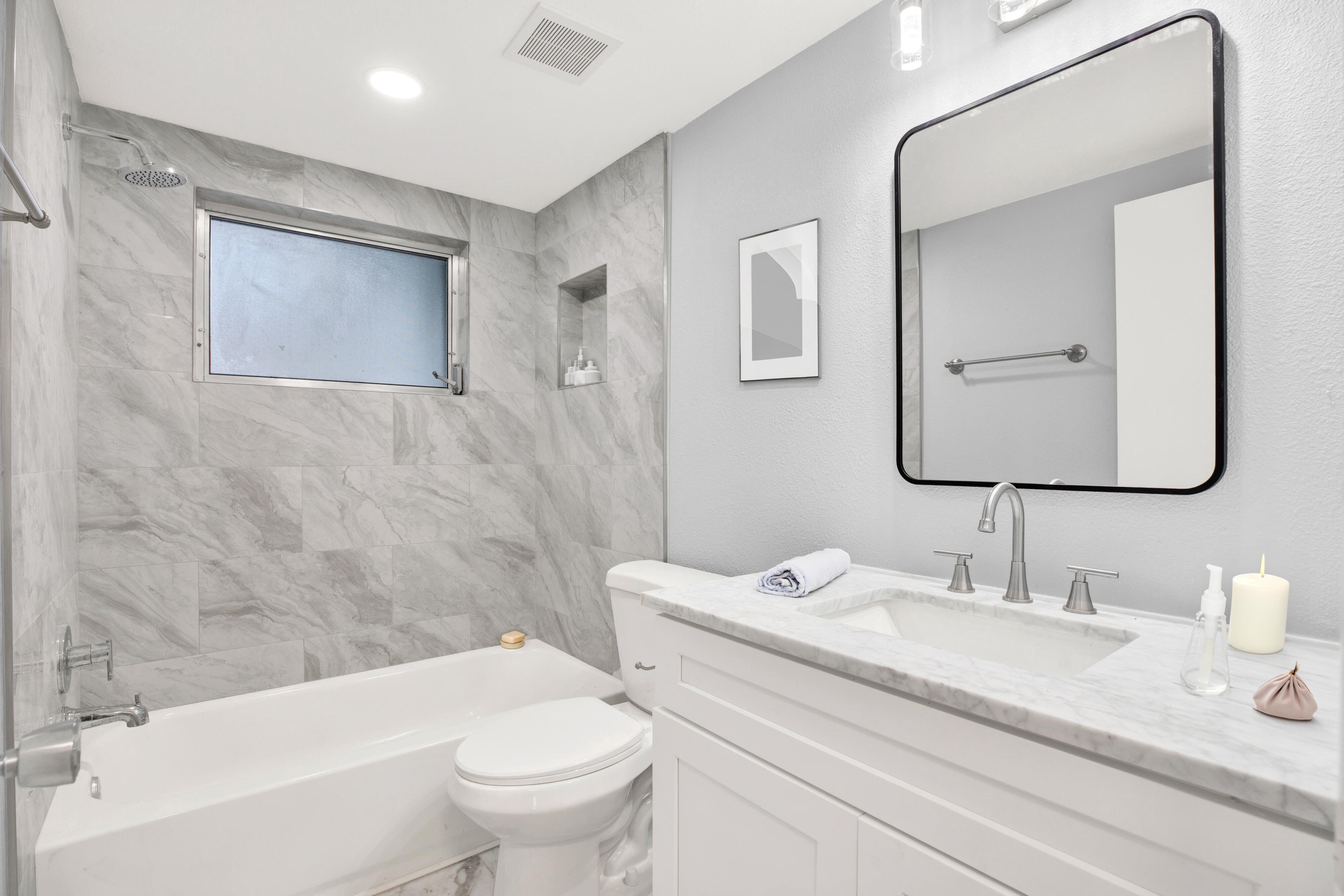 NO FLOODING and NO FLOOD ZONE HERE! This beautifully UPDATED 3-bedroom, 2-bathroom home features the perfect blend of modern convenience and cozy charm with New Flooring. Enjoy a bright and spacious living room featuring brand-new modern-style cabinets with LED lights inside. The Modern Kitchen is adorned with beautiful newer cabinetry, Granite countertops, a stylish backsplash, and new appliances. A rich wooden island adds an element of aesthetic and elegance. The home boasts TWO Remodeled Bathrooms, complete with beautiful new vanities, updated lighting, stylish tile, and more - allowing you to move in and enjoy all the upgrades already done for you! The ENTIRE exterior and interior have been freshly painted, ensuring a CLEAN and refreshed look. A NEWER FENCE provides privacy, while mature landscaping creates the perfect outdoor setting for pets and activities. Additionally, the freshly painted 1-car garage includes a washer and dryer for your convenience.