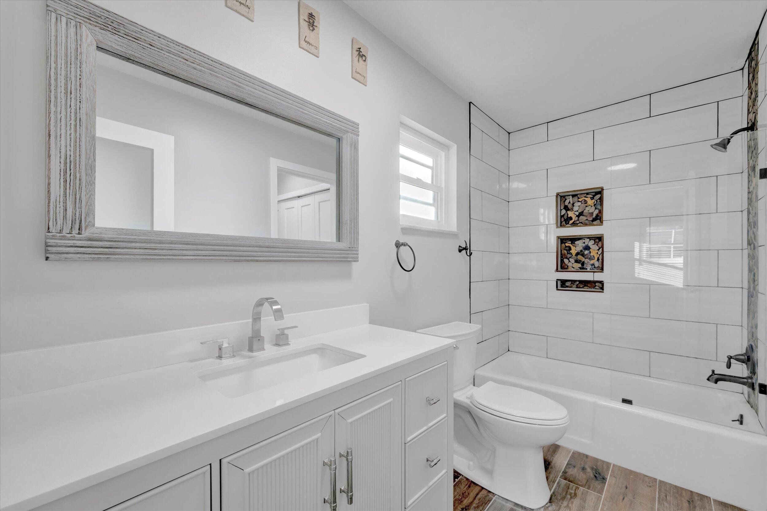 Beautifully renovated 4BR/2BA home located in Shore Acres, in NE Saint Petersburg. Welcome to this extremely spacious 2,246sqft residence with open floor plan and abundant natural light. This meticulously renovated home features Italian porcelain tile, two tone modern kitchen with a high end gas stove and a ten foot island, custom made quarts counter tops, and an indooor laundry with an upscale washer and gas dryer. The homes' practical layout includes three bedrooms with en-suite baths, while the master bedroom features an expansive walk-in closet and a spa-like bathroom with two separate forty inch modern sinks. Enjoy the serene backyard with a cozy patio area. Two car garage with a large driveway parking for both residents and guests. Ideally located just minutes from downtown St. Pete, you'll have easy access to waterfront parks, boutique shops, fine dining, and vibrant entertainment. The area is also convenient to airports, top-rated schools, and the beautiful Gulf beaches. All within a welcoming waterfront community known for its parks, recreation, golf cart parades and community events. Offered unfurnished. Minimum 12-month lease. Lawn care included. Experience St. Pete living at its finest!