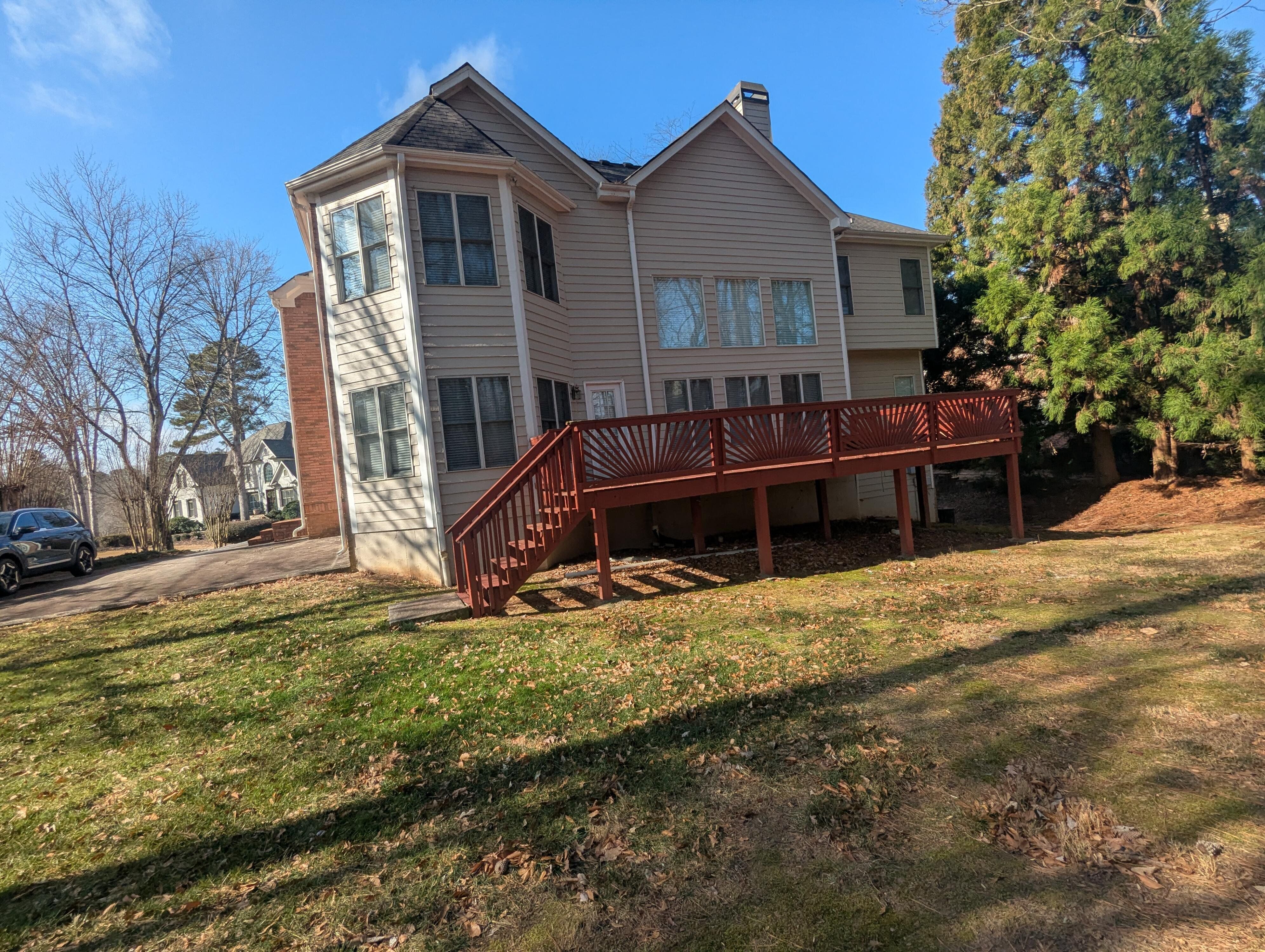 Welcome to this stunning home located at 5235 Chaversham Ln in Peachtree Corners. This beautifully maintained property features spacious living areas, a modern kitchen with updated appliances, and a cozy fireplace in the living room. The exterior boasts a large backyard with a deck, appropriate for outdoor entertaining. Full partially finished basement. The home is conveniently located near shopping, dining, and recreational amenities. Don't miss the opportunity to make this charming residence your own in the highly sought after Amberfield subdivision! Home being sold as is.