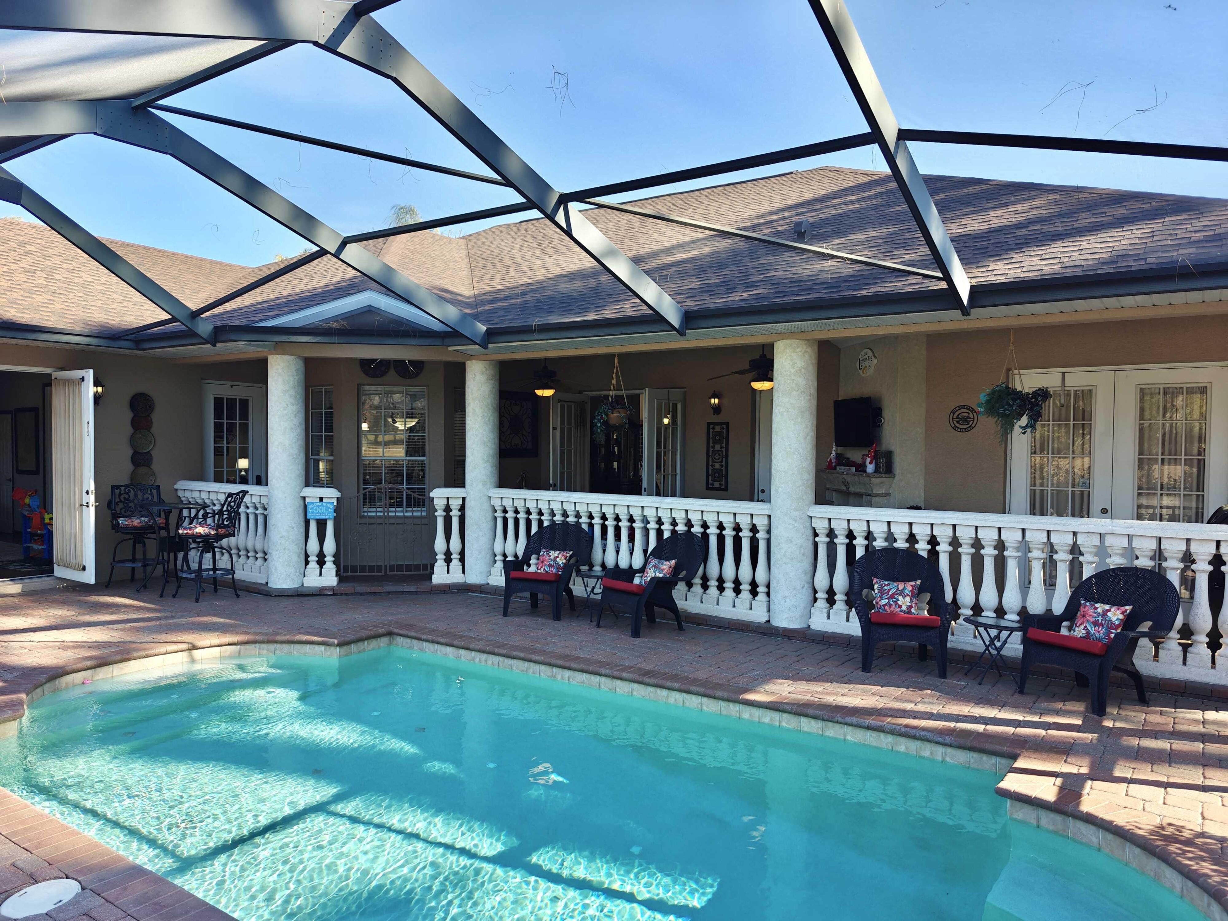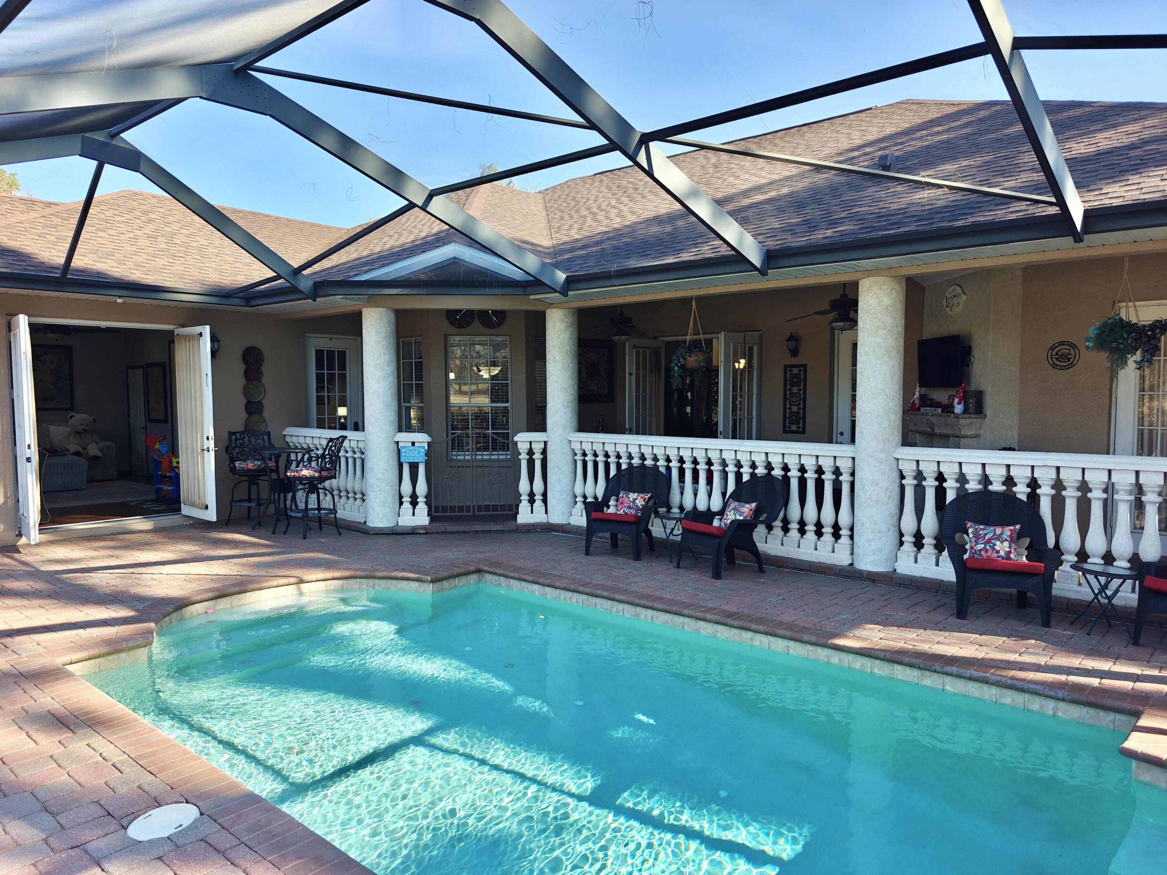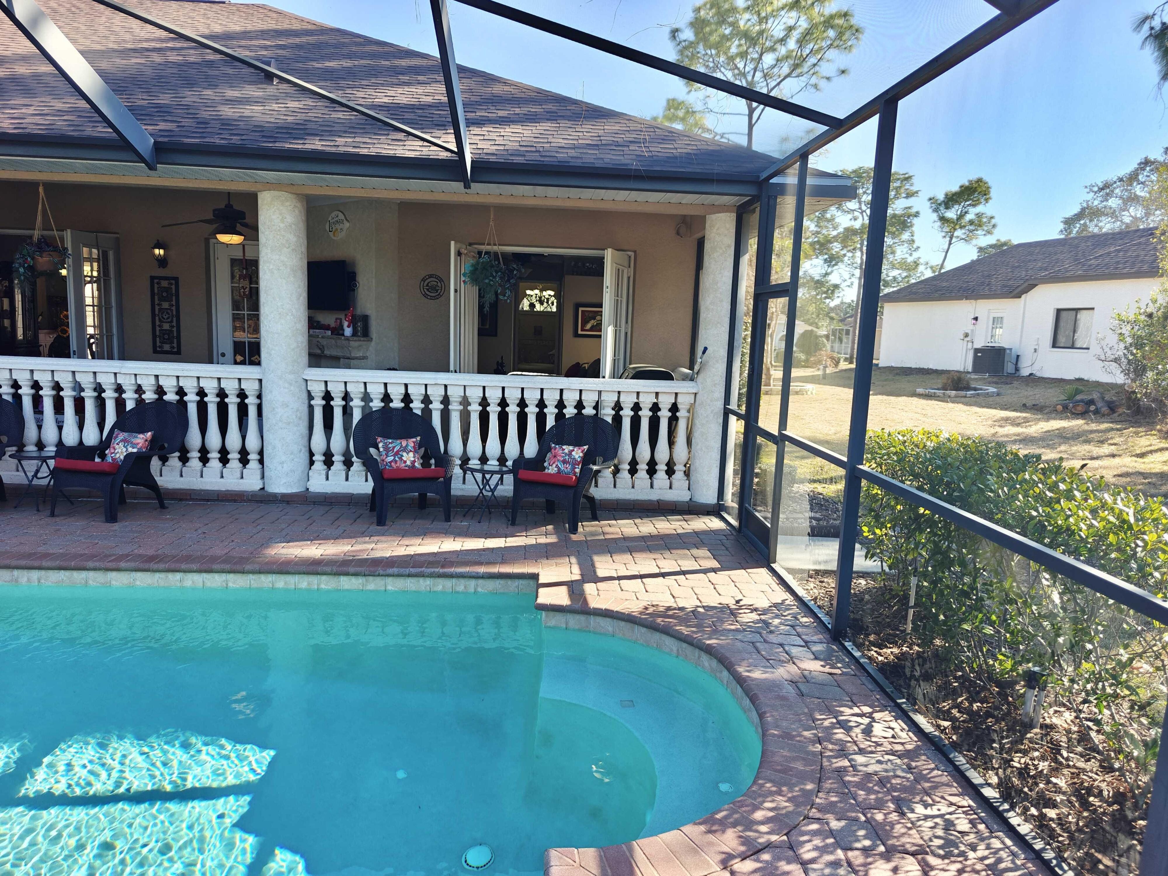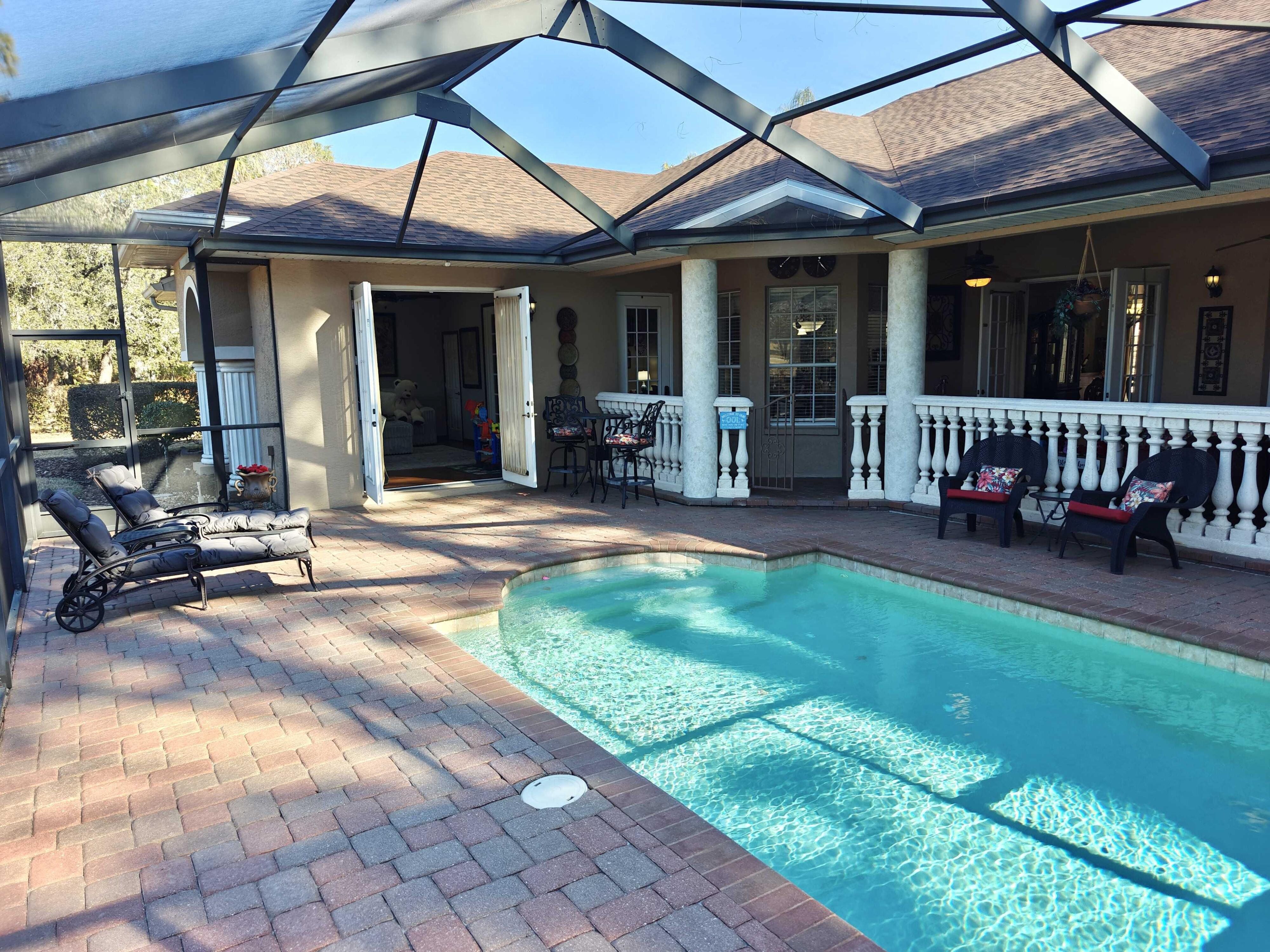 WELCOME TO YOUR BEAUTIFUL POOL HOME!! THIS STUNNING 3,000+ sq. foot - 3/3/3 PLUS OFFICE PLUS LARGE EXTRA ROOM / GAME ROOM MINI-MANSION IS JUST WAITING FOR ITS NEW FAMILY! Located in the gated golf course community of Silverthorn. The community is a gated neighborhood offering a club house with restaurant (under new management!), Pro shop, golf course, fitness center, community center, pool, playground, tennis / pickleball courts, activity center and library. Shopping, restaurants, medical facilities and the Suncoast Parkway (Rt 589) are close by. Included in the HOA dues are Spectrum 500MB internet and cable TV! New roof (in 2025) and new 5-ton AC (2024). All new large kitchen (2025) with its gorgeous quartz countertops and beautiful wood cabinetry has Samsung stainless appliances: dishwasher, wall oven (2025), wall microwave/convection (2025), refrigerator, undercounter wine fridge (2025), glass induction (magnetic) cooktop (2025), Blanco sink (2025)! And all 3 bathrooms have granite countertops! The amazing private pool retreat overlooks a ''preserve type area'' and the 16th fairway in the distance. You will be in awe with the gorgeous pavers and stunning outside fireplace and new Family Room fireplace (2025) while you enjoy your morning coffee on the lanai. Pool has a new electric heating unit (2025) and pump. Inside, notice the 12-foot ceilings and crown molding along with beautiful wood flooring that flow throughout the entire home. The large owner's suite includes walk in closet, center garden tub, double sinks and huge walkthrough 2-person shower. The large extra room/game room could easily be converted to a Home Theater or a 4th Bedroom! This beauty lacks nothing! The 3-car side entry garage has Wifi remote access along with Wifi irrigation control. This home includes 4 ceiling mounted POE wired WIFI access points spaced North, South, East and West in the home provide 800MB connectivity. For the technically inclined, this is a smarthome! Z-wave/Zigbee switches and outlets throughout (But don't worry, if you are not technically inclined, the entire home acts as regular home unless you know how to take advantage of it)! There is a small Media room with a wall-mounted rack for computer network components (Included with the home) and home stereo (Negotiable) , a Hubitat Zwave/Zigbee controller (Included with the Home). Just add Amazon Alexa or Google Home devices and you can control the lighting (indoor and outdoor) as well as music throughout numerous zones in the home with your voice! Oven, Range and Refrigerator are Wifi connected and you can preheat the oven on your way home! Ceiling mounted house speaker system with wiring that leads to the Media room. It is truly one of the 'gems' in the community and it won't last long. Don't wait!
