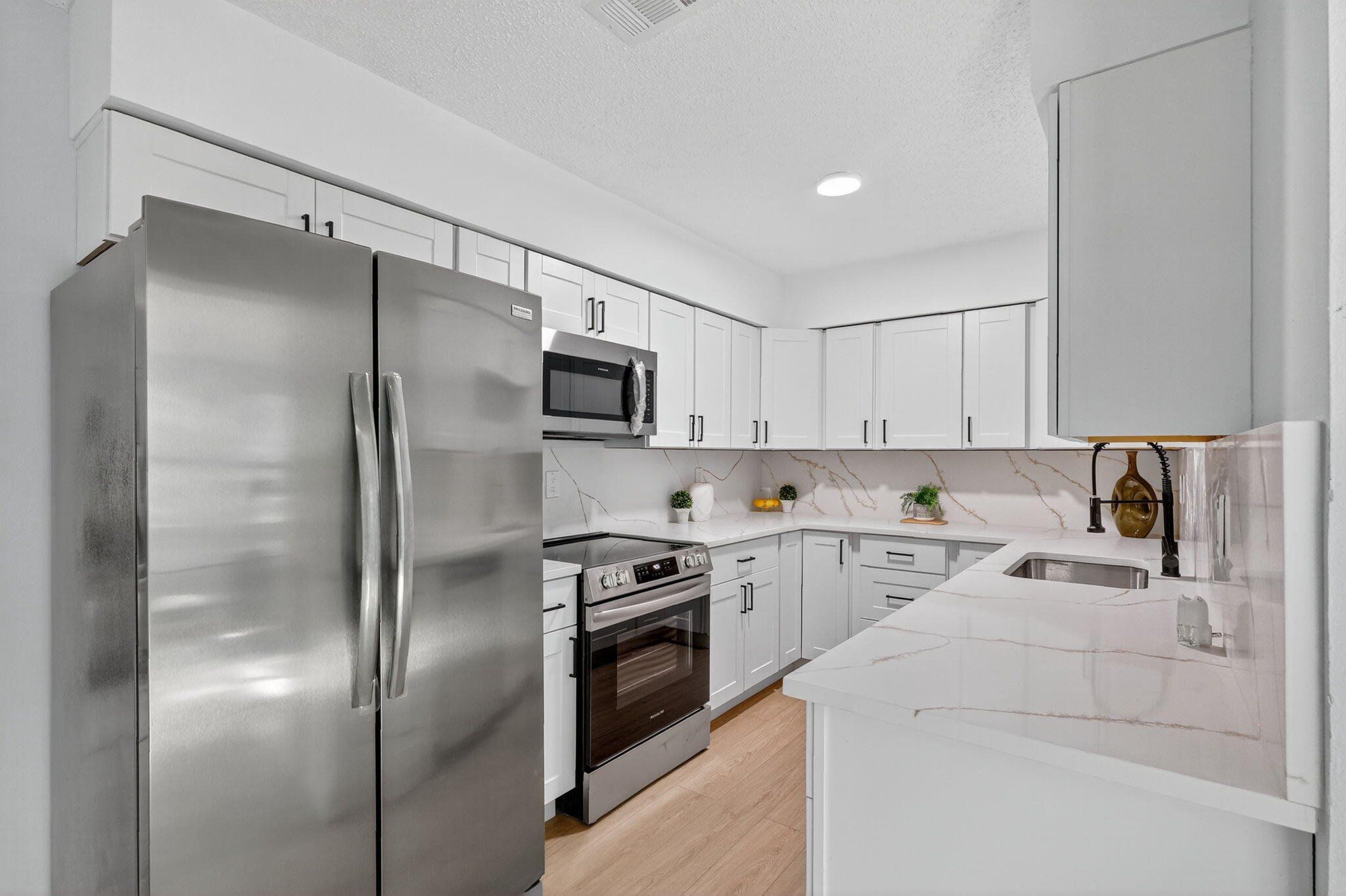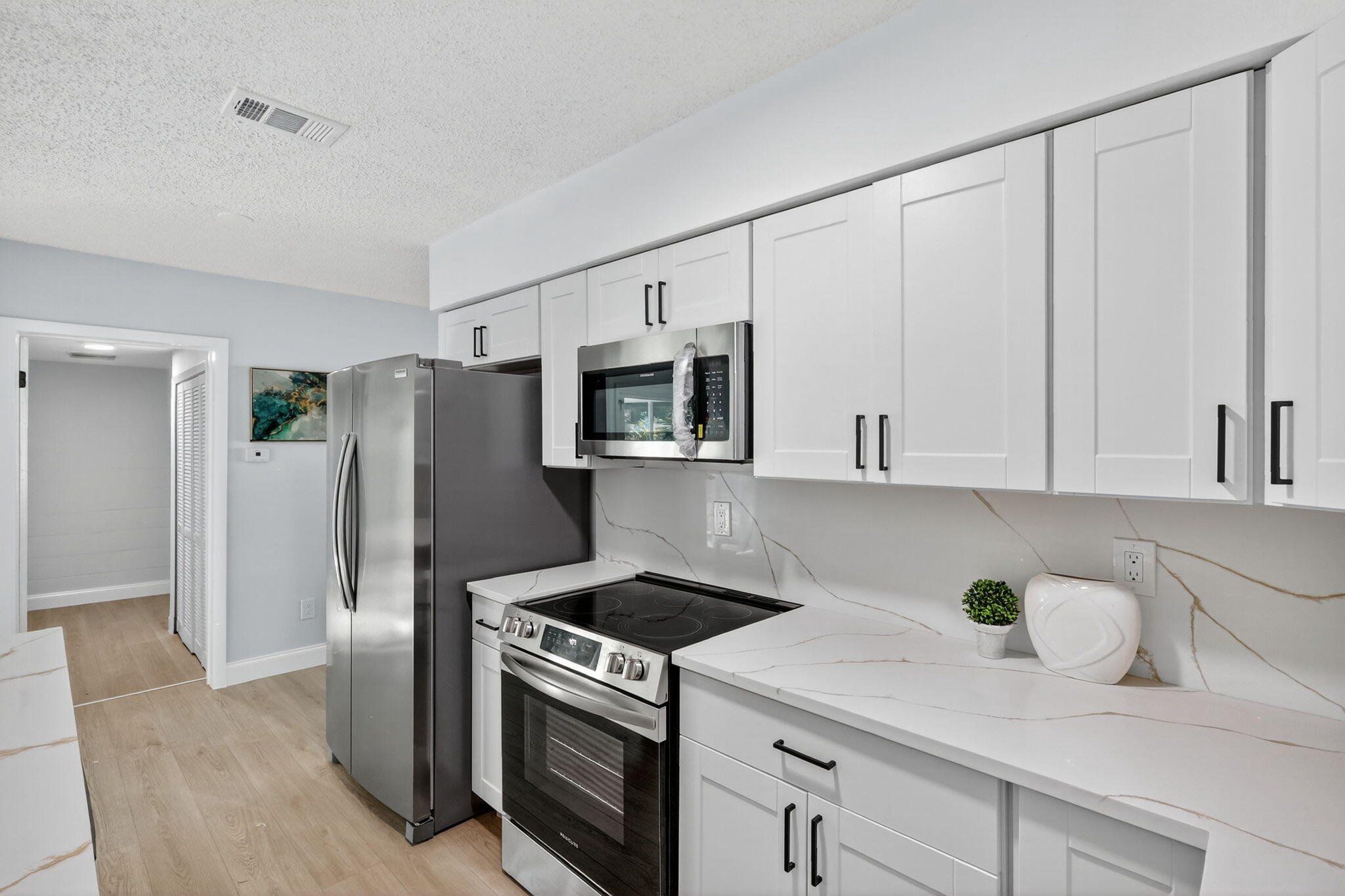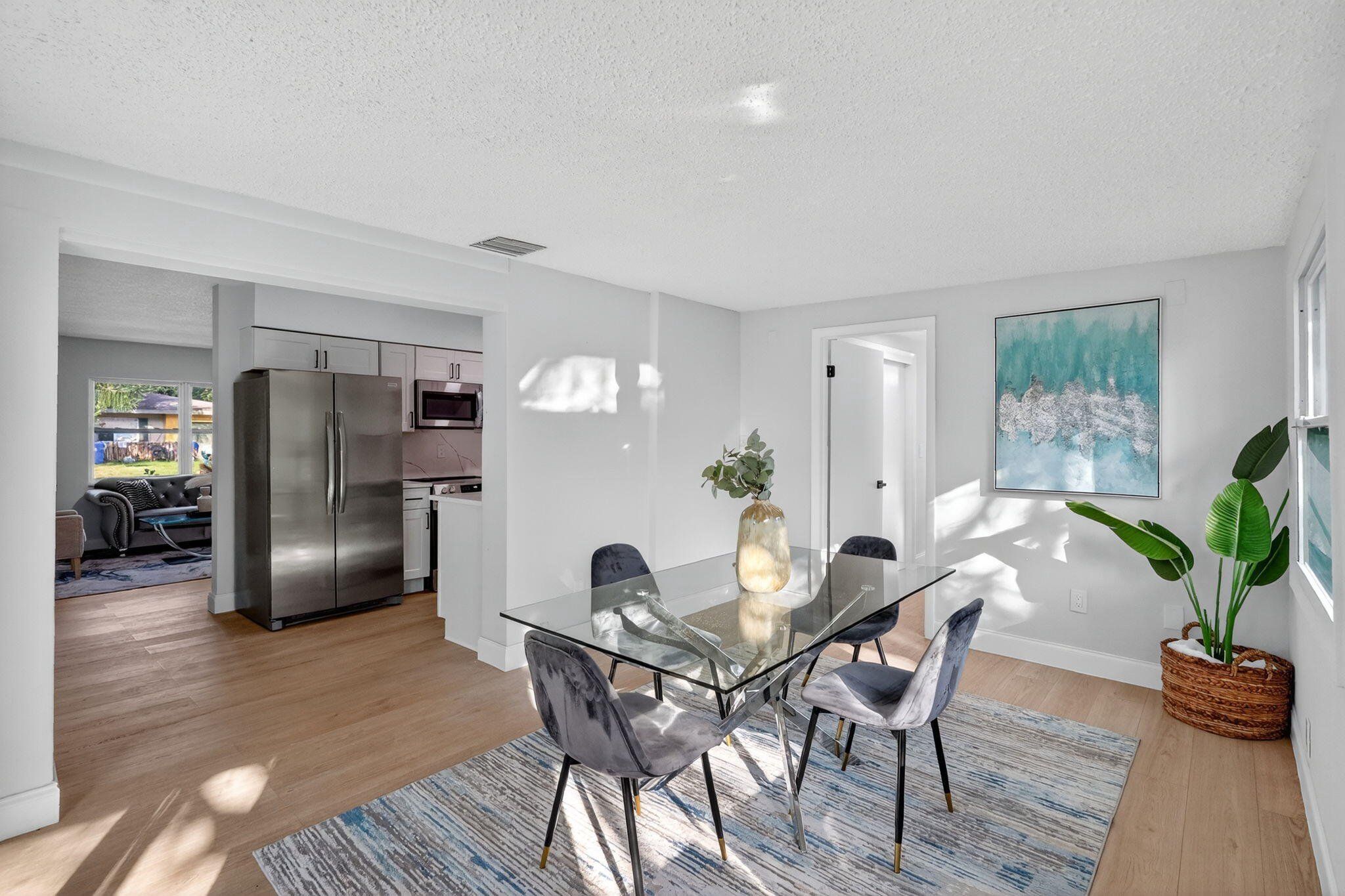 Step into this charming 3-bedroom, 2-bath residence nestled in Dunedin’s desirable Grove Acres neighborhood. Set on an 0.18-acre lot with a fully fenced yard, this property provides a sense of privacy and freedom with no HOA restrictions. The home greets you with inviting curb appeal, highlighted by crisp landscaping and a welcoming exterior. Inside, you’ll find an open and modern interior finished with luxury vinyl plank flooring that ties the living areas together beautifully. The kitchen presents a clean, contemporary look with stainless steel appliances, quartz countertops, and streamlined cabinetry, made for everyday cooking or hosting friends and family. All three bedrooms present generous space and natural light. The primary suite includes a thoughtfully updated bathroom complete with a stylish vanity, updated mirror, and a fully tiled walk-in shower for a touch of luxury. Sliding doors lead from the main living area to a screened patio where you can enjoy breezy Florida evenings overlooking the peaceful backyard. With plenty of room for outdoor dining, gardening, or play, it’s a great extension of your living space. The home also includes a one-car garage and a secure, enclosed yard. Just minutes from downtown Dunedin, popular parks, acclaimed schools, and beautiful Gulf Coast beaches, this move-in-ready property creates an unbeatable combination of comfort, convenience, and location.