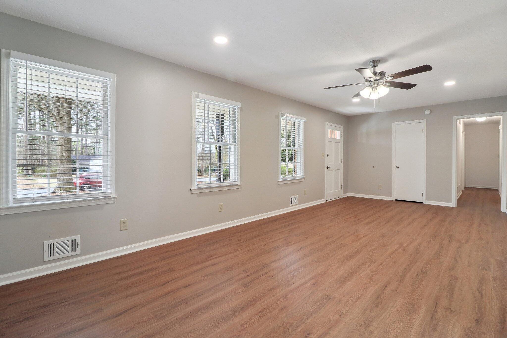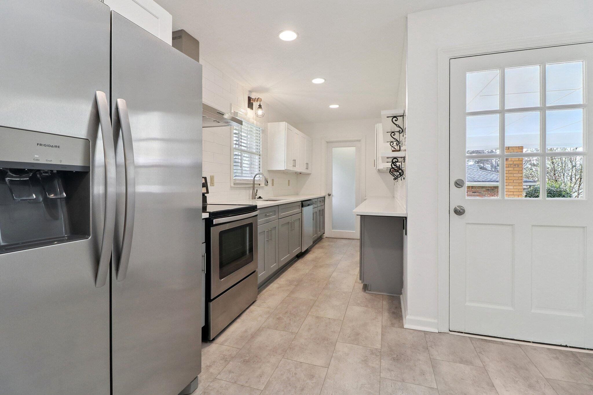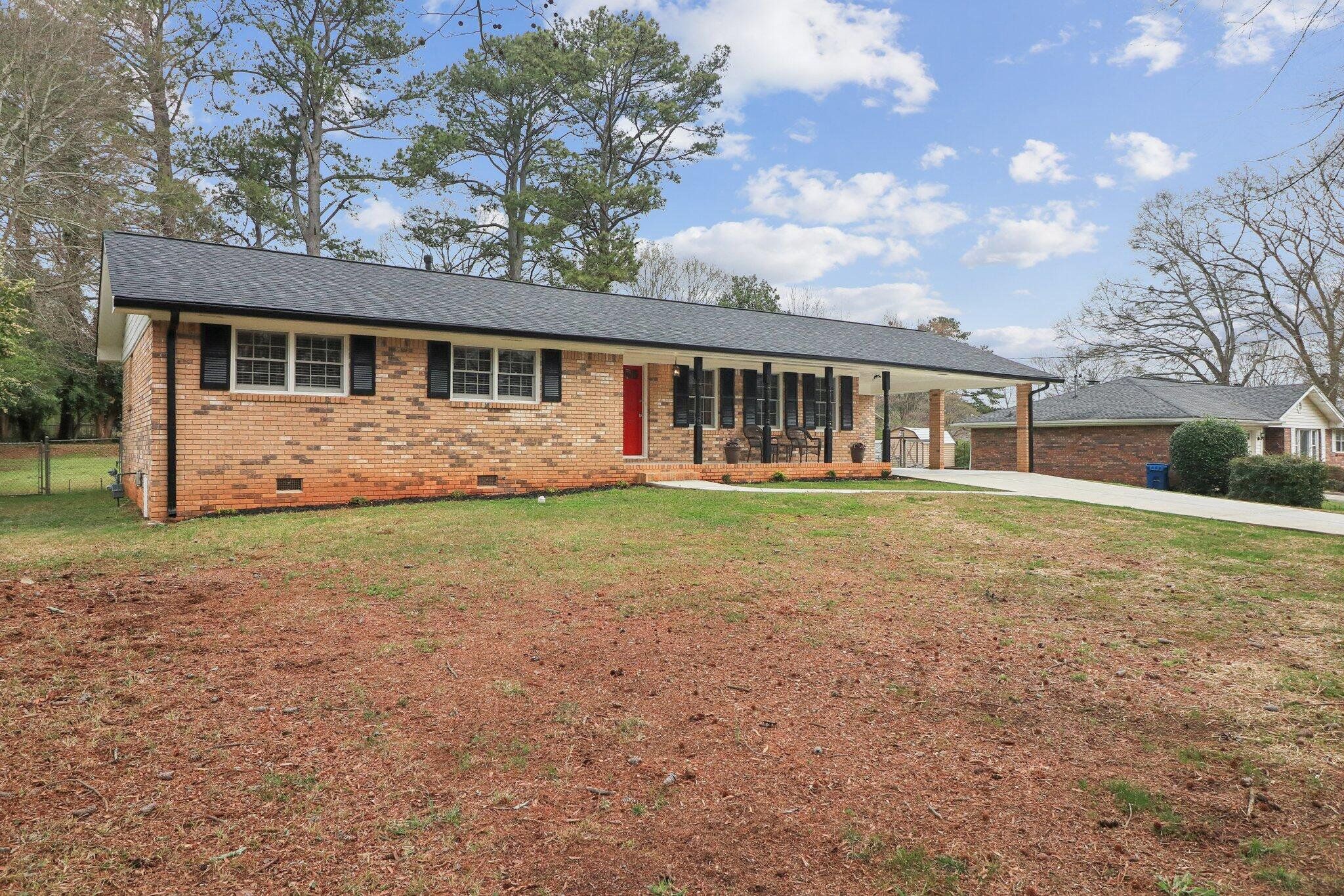 Experience the perfect blend of mid-century charm and modern luxury at 560 Donna Dr in Smyrna. Located in the quiet, established Russell Heights neighborhood, you are free from HOA restrictions. This beautifully updated 1971 3-bd, 2-ba, four-sided brick ranch sits on a large, level 0.46-acre lot. Peace of mind comes standard with a new roof, new cement driveway, new water heater, updated plumbing and bathrooms, new recessed lighting, light fixtures, and ceiling fans. The extensive driveway leads to a 2-car carport, with an entrance into the kitchen, making unloading groceries fast and convenient. The sprawling, fully fenced backyard, complete with a large, covered cement patio, is a perfect place for outdoor entertaining, and the fire pit ring is ready for evening gatherings. If you love to garden, the 64 sq ft shed is the perfect place to store all your tools and equipment. From the fully-covered front porch, step into the spacious, well-lit family/living room, big enough for all your furniture. The beautiful, new Luxury Vinyl Plank flooring located throughout the house is waterproof, scratch-resistant, and easy to clean. Next, move into the completely remodeled galley kitchen featuring gleaming quartz countertops, painted shaker cabinets, stainless steel appliances, recessed lighting, a large deep sink with garbage disposal, and custom under-counter lighting. A frosted glass door at the end of the kitchen leads to the laundry room with washer/dryer hook-ups, upper cabinets for storage, a door that leads to the backyard, and enough space for a small mudroom bench. At the other end of the kitchen is a small breakfast nook area with beautiful French doors leading to the backyard and patio. The dining room is located off the kitchen and nook, and has a 6ft wide window overlooking the backyard. In the hallway, you’ll find a large linen closet and the main bathroom, which has been fully updated with new fixtures, vanity, mirror, and a newly tiled shower/tub combo. The three well-lit bedrooms are at the end of the hall. The master bedroom comes with a ceiling fan, separate his & hers closets, and a small remodeled ensuite bathroom, with a new walk-in shower, vanity, mirror, and fixtures. Well-located in an established neighborhood with no HOA, 560 Donna Dr. would be a wonderful place to call "home."
