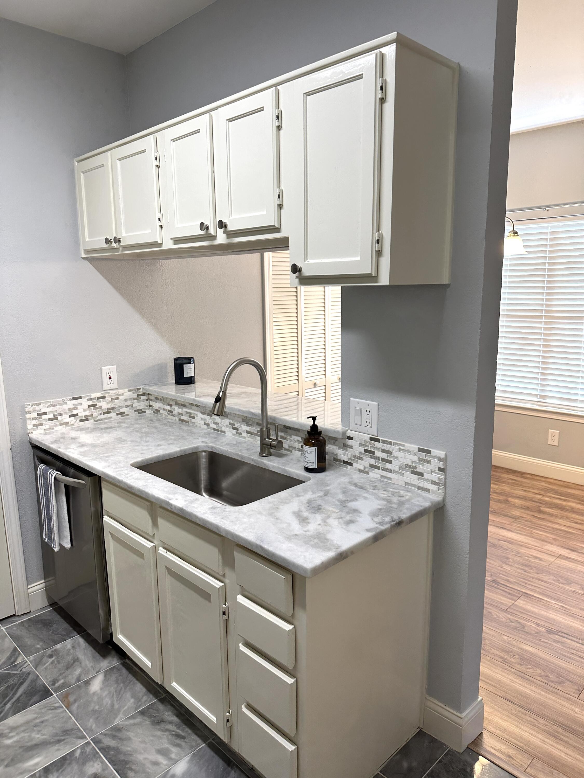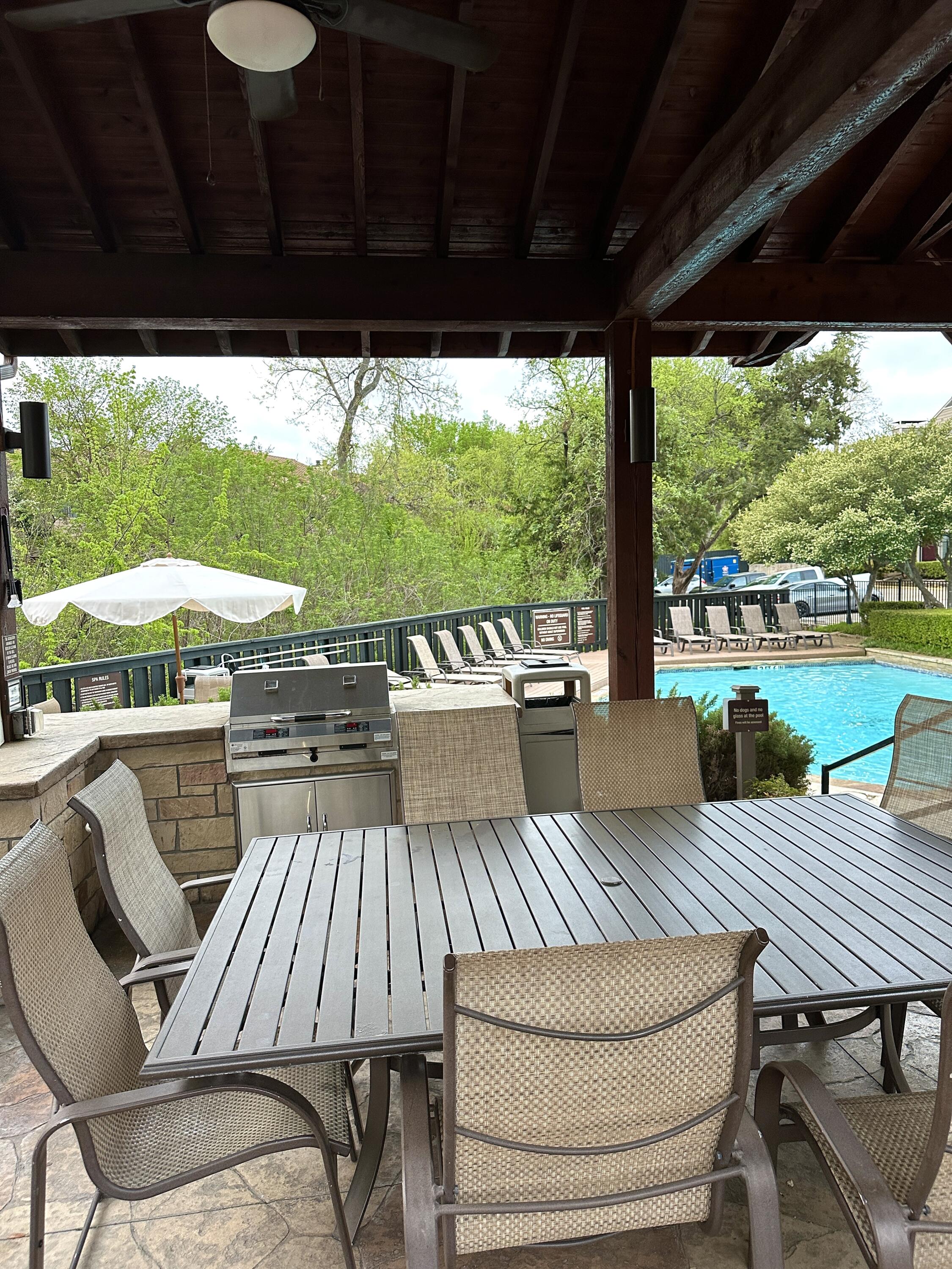 Discover this beautifully updated condo in north Dallas, blocks from premier shopping, dining, and major highways. Step inside to find updated flooring, creating a modern aesthetic. The open-concept is filled with natural light. Soaring ceilings and skylights create a sense of openness, while the living room is anchored by a cozy wood-burning fireplace. The kitchen is thoughtfully designed with stone countertops, a designer backsplash, and stainless steel appliances. A beautifully updated bathroom feature quality finishes. Enjoy a cup of coffee on the private back patio or the patio just outside the front door in a semi-private gated courtyard. Highlights: one car garage, New water heater October 2025, gated community for added peace of mind, 2 sparkling pools, well-maintained community.