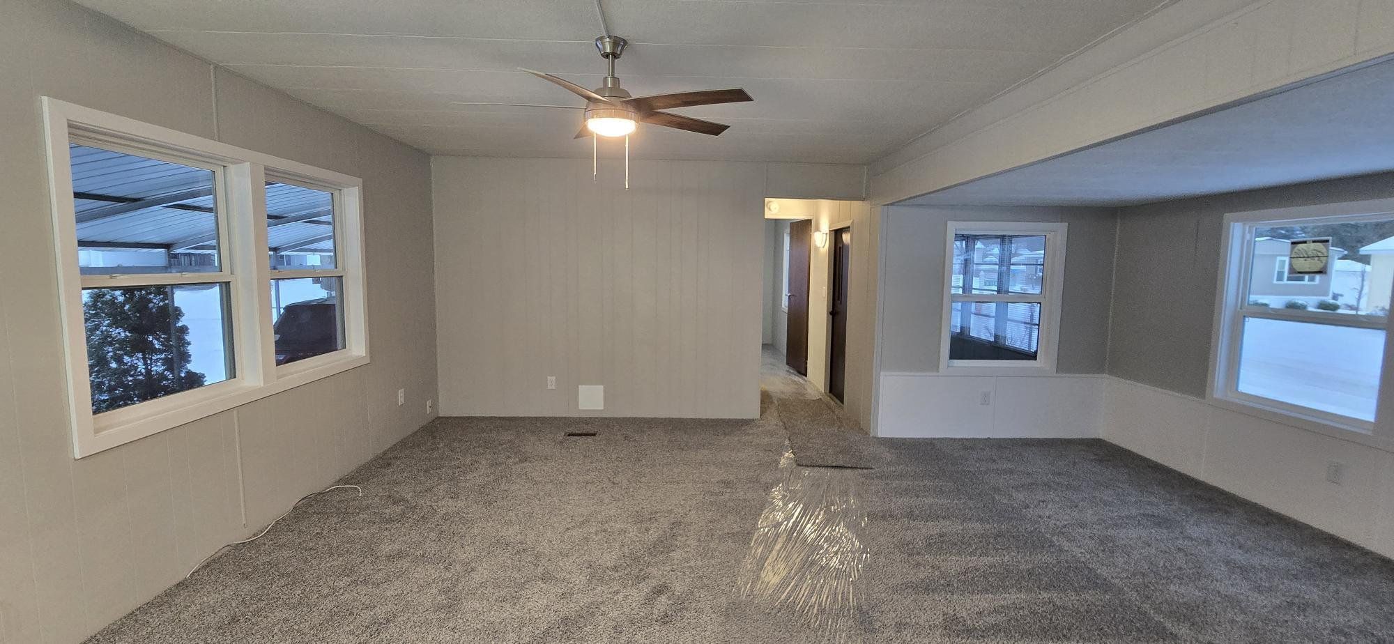 Updated mobile home is move-in ready! 1978 14x70 Parkwood 2 bedroom 2 bath with a 12'x60' carport with wheelchair ramp, 10x9 shed, enclosed 12x7 sun porch, spacious living room with 14x7 bump out, a roof over system and includes stove, fridge and washer/dryer. We've just added central air, all new double-pane vinyl windows, new vinyl siding, everything inside and out has a fresh paint job, new plumbing and electrical fixtures throughout, new window treatments in bedrooms, all new flooring, new countertops, and new main entry door. It's located in Belmont at Leisure Village, a well established park with mature trees, off street parking, community garden, playground, community room, and fitness center. Lot rent is about 690/mo. Buyer must be pre-approved by park
