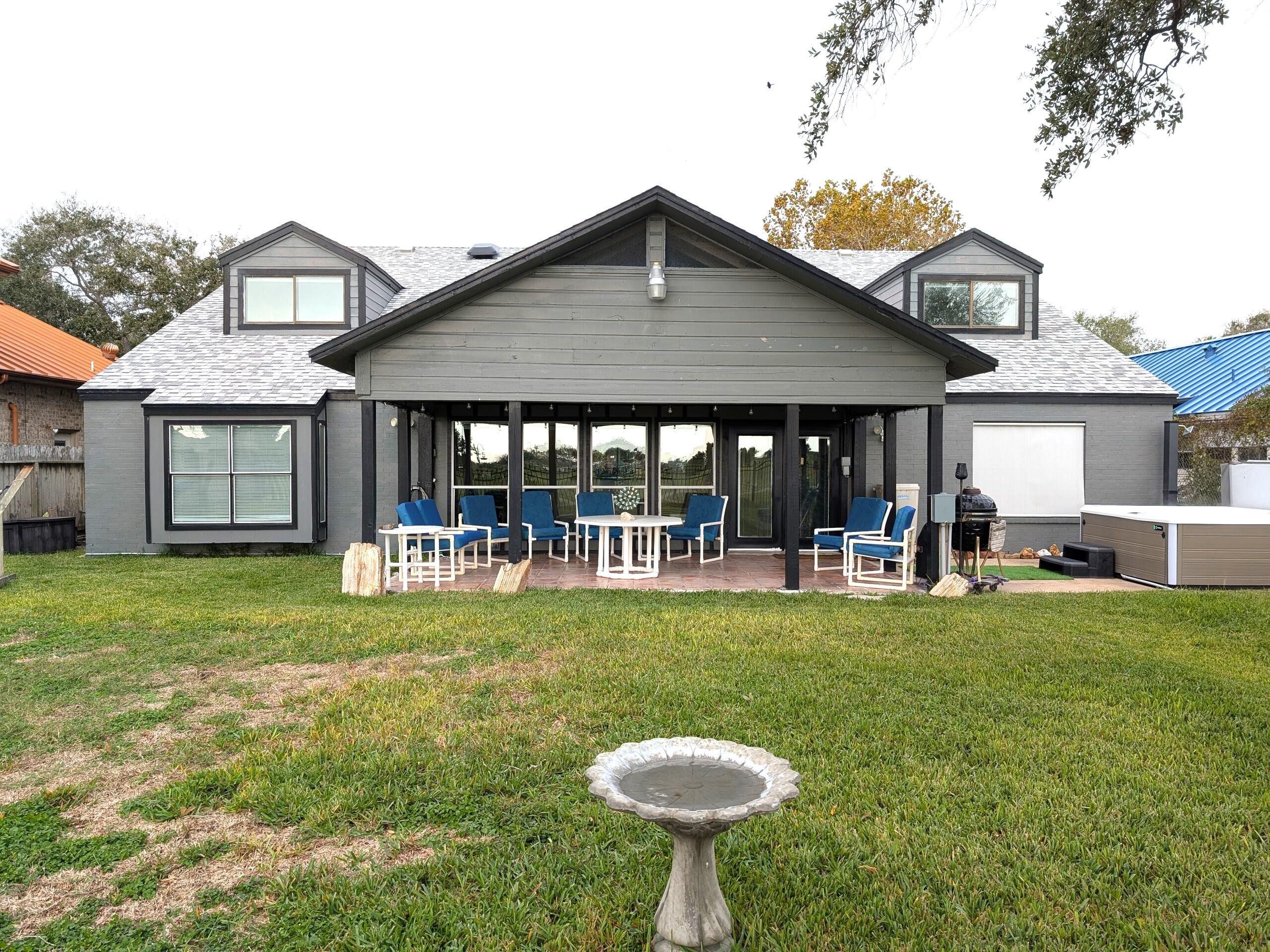 This home has an excellent location! Three blocks from Corpus Christi Bay and within a few miles of grocery shopping and Texas A&M, yet off the busy main streets. The breathtaking view in the backyard or from the back facing windows on both floors is the Oso Beach Golf Course, complete with acres of mowed grass, trees and ponds! Main floor features 3 bedrooms and 2 full baths, 2 spacious living areas, dining, kitchen, laundry and garage. Many extra features including built-in shelving in many rooms and hallway! There is a covered patio in the backyard with plenty of room for seating and a hot tub for relaxation! The second floor has many potential use options! Currently used as the Master Suite with a huge bathroom, bedroom, living area and home offices. Alternatively, the space could be used as multiple living areas, craft areas, playroom, Movie room, or an apartment with a separate entrance. There is plenty of storage in the 16-foot-long closet or in the several attic areas. This home has had many updates over the last several years including new paint, flooring and appliances along with many maintenance items such as new A/C units for both up and downstairs, low-e windows, new electrical service panels, new roof (2018) and foundation work (2018). Some photos have been virtually rendered.