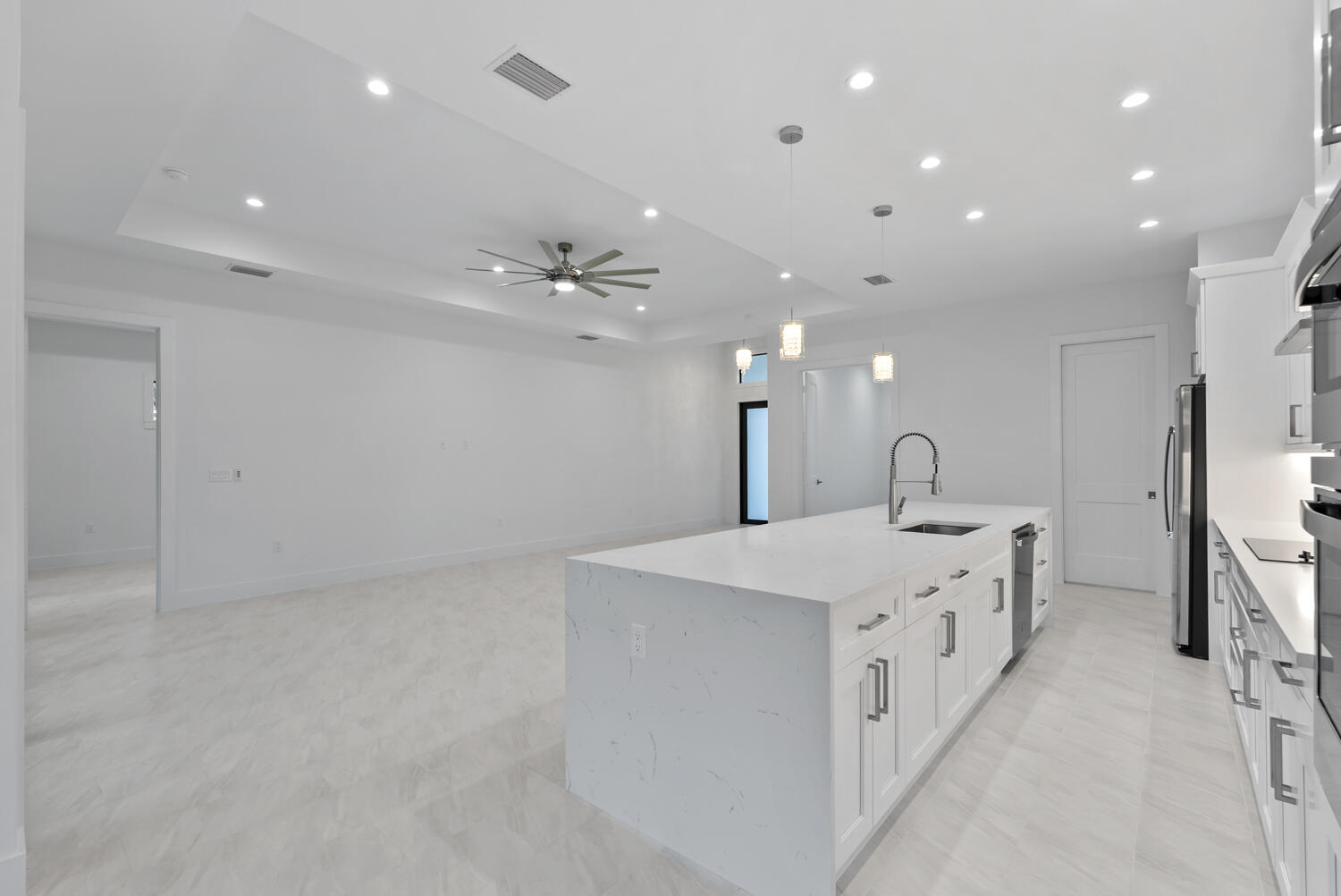 One of a Kind — Move-In Ready New Construction Home! Welcome to this stunning, fully completed new home, offering the perfect blend of luxury, comfort, and functionality. Featuring 3 spacious bedrooms a den and 3 full bathrooms, this home provides plenty of room for family and guests. The open-concept layout flows seamlessly between the living, dining, and kitchen areas, creating a bright and inviting space that’s perfect for entertaining or relaxing. The custom designer kitchen is a chef’s dream — complete with high-end appliances, beautiful custom cabinetry, quartzite countertops, and elegant finishes throughout. Thoughtful ceiling details add a touch of sophistication, giving the entire home a truly luxurious feel. Step outside and discover a buildable lot, offering endless possibilities — whether you want to expand, customize, or add your dream pool in the future. Impact windows and doors Epoxy-coated garage floor With no HOA fees and no restrictions, this home gives you the freedom to live your way. Conveniently located near schools, shopping, and local amenities, this beautiful property