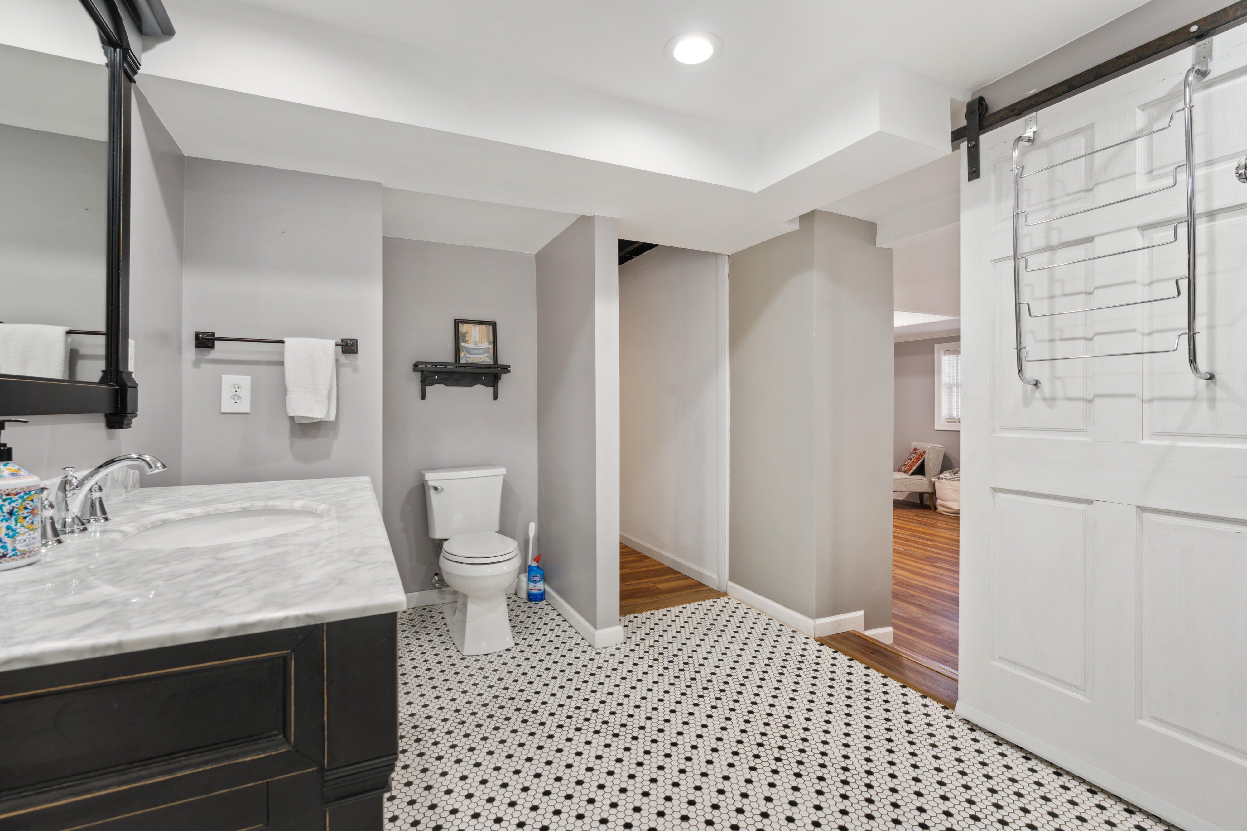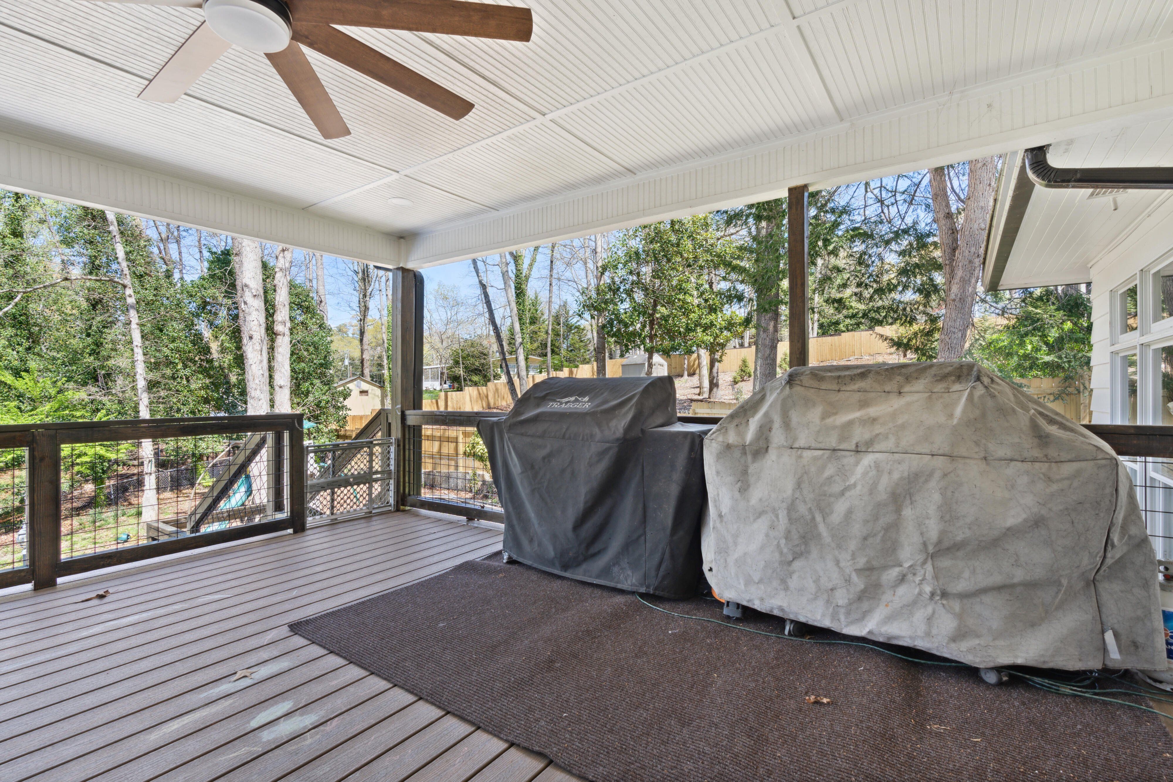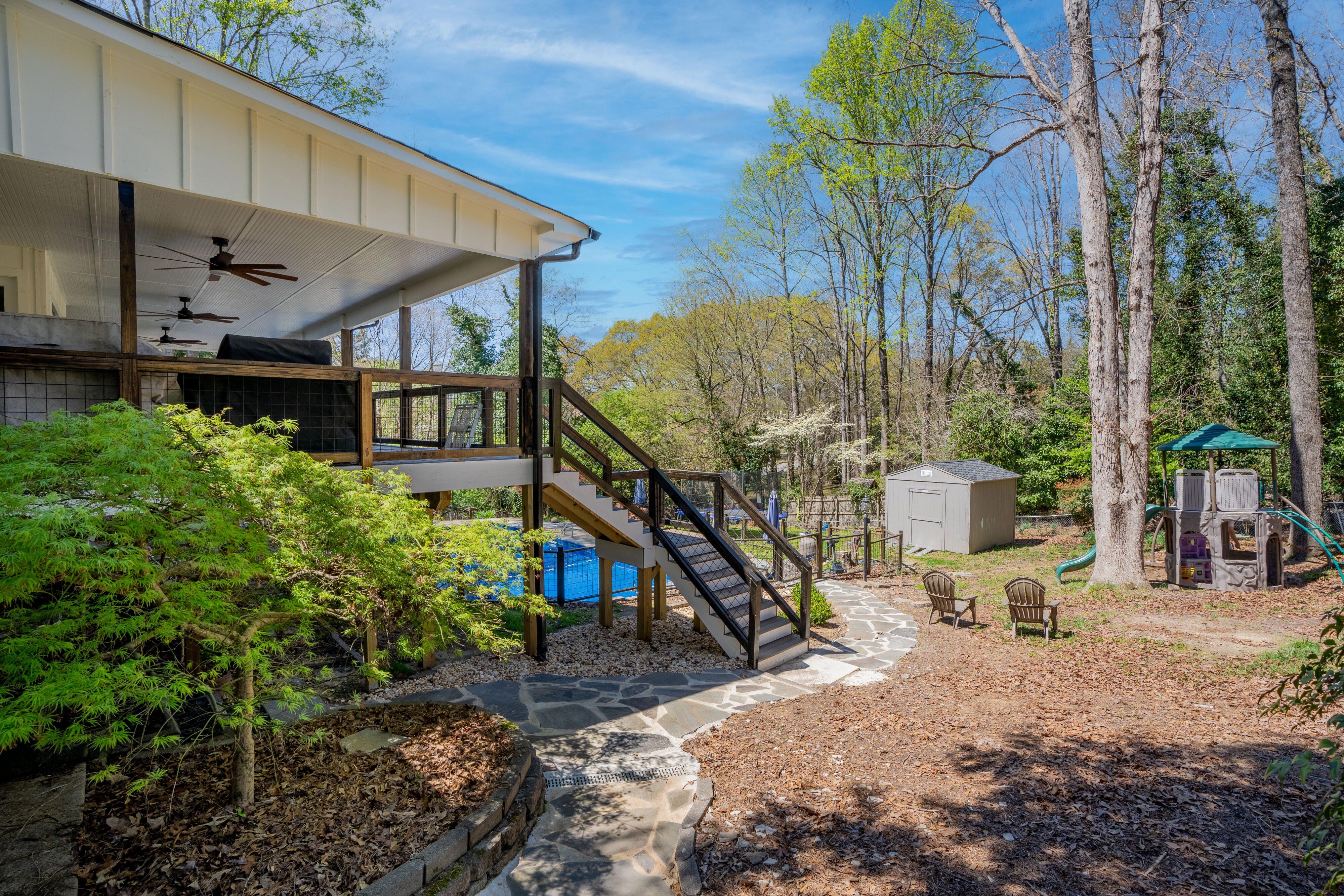 This beautifully updated ranch with a finished basement has 4,100 sq ft of flexible living space, with thoughtful upgrades throughout and an incredible backyard built for gathering. One of standout features of this property is the enormous, elevated covered porch spanning the entire rear of the home and overlooking the pool. Designed for real life and real hosting, this space includes: • Composite decking • Architectural shingle roof to match the home • Ceiling fans and lighting • Room for multiple seating areas, dining tables, and outdoor furniture • Direct access from the kitchen and living area through 4-panel sliding glass doors Whether it’s birthday parties, summer cookouts, watching the family swim, or simply enjoying coffee in the morning, this porch creates a natural gathering place for family and friends. The backyard allows privacy, space to play, and a layout that makes it easy to entertain while keeping everyone connected. Below, a screened porch provides additional shaded space directly outside the master suite. Interior Features • 4 Bedrooms | 4 Full Baths • Two Primary Suites (main level + basement) • Fully renovated basement with new full bathroom • Large recreation / play / media room downstairs • Carrara marble kitchen countertops with oversized island • Expanded dining area with wall of sliding glass doors • Dedicated office space • Oversized laundry area The main level flows naturally from kitchen to dining to living space, making it great for everyday family life as well as hosting larger gatherings. The oversized master suite downstairs features a large bathroom, walk-in closet, gas fireplace, and private screened porch overlooking the pool. Bring your hot tub to the concrete pad next to this private patio for extra relaxing evenings! Major Improvements • Multiple mini-split HVAC systems for improved comfort and efficiency • Ductwork reconfigured for balanced airflow • Basement plumbing fully replaced • Gas line replaced to fireplace • Remodeled pool, drainage and pool area Over $200,000 in improvements already completed, offering peace of mind for the next owner. If you’re looking for a home that truly brings people together, this one stands out.
