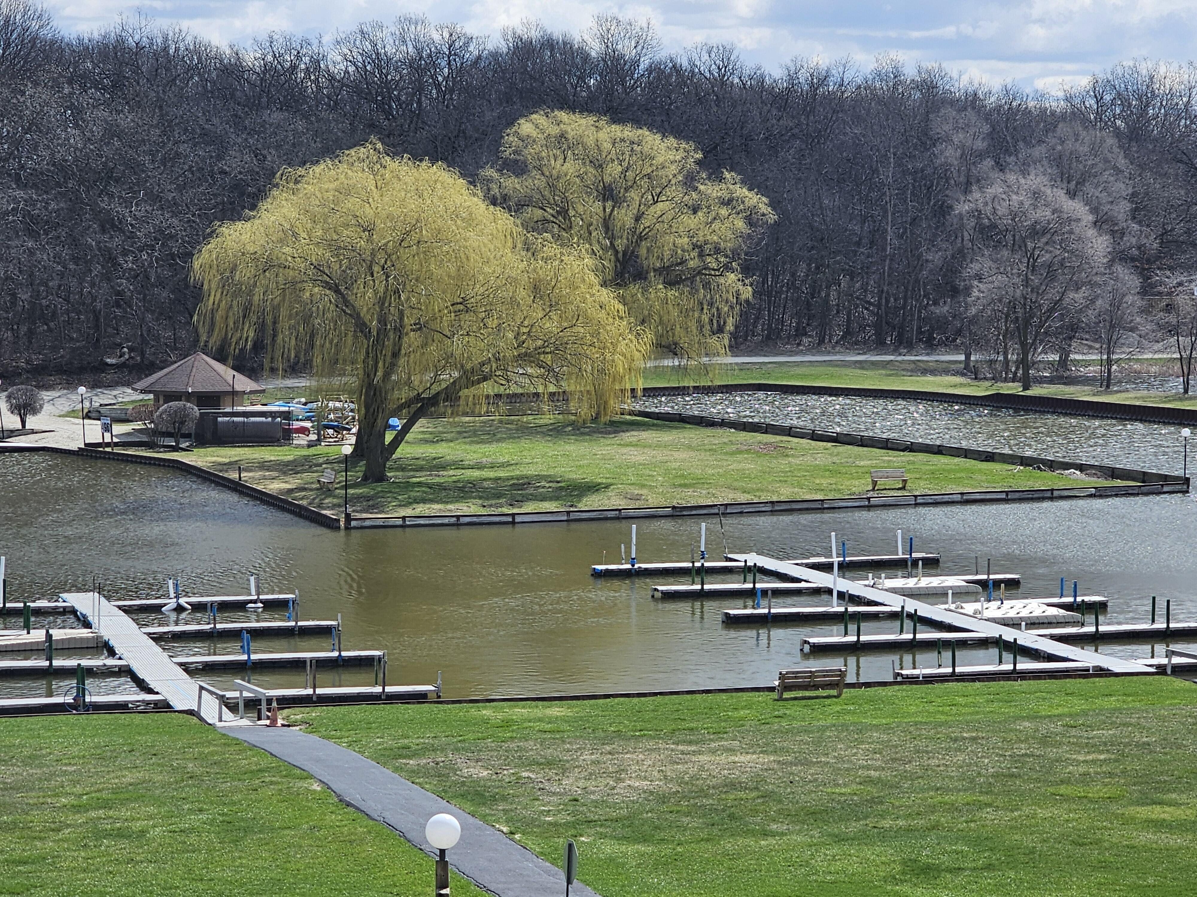 BEST BUY IN FOX LAKE! Premium waterfront location with stunning marina views from your private deck with storage. This move-in ready 2nd floor, 1-bedroom condo has been thoughtfully updated throughout, featuring a new bathroom, newer kitchen with granite countertops, breakfast bar open to the living room, newer sink, faucet, and refrigerated reverse osmosis system. New HVAC, well-maintained water heater, wood laminate floors, and mirrored closets complete the package. Nestled inside a gated, resort-style community with 7-day-a-week security. You'll enjoy an unmatched amenity package: lake rights, pool, private beach & pavilion, 2 parks, 2 tennis courts, basketball court, 2 volleyball courts, baseball/softball field, 2 clubhouses/community rooms, nature trail, a fenced in dog park, 2 fire pits, onsite laundry facility, boat launch, and boat slip/storage are available. Conveniently located at 6800 State Park Rd, Fox Lake, IL, minutes from dining, shopping, the metra and the Chain O' Lakes. This is resort living at an exceptional value. Don't miss it!
