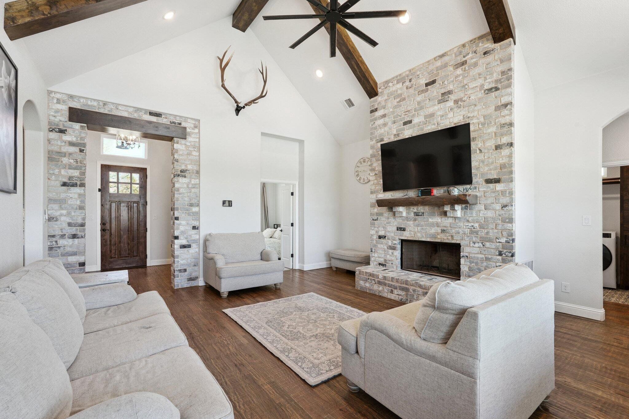 Beautiful modern one-owner custom home situated on a 1.48-acre lot in the desirable Tucumcari Ranch Estates. Inside the 2,482 sq ft floor plan features 3 bedrooms, 2.5 baths, a spacious game room, and an office with double closets that could also function as a 4th bedroom. The main living area showcases exposed brick accents, a vaulted ceiling with wood beams, and a cozy wood-burning fireplace. Floor-to-ceiling windows flood the space with natural light overlooking the spacious backyard, extended patio and sparkling salt water pool. The kitchen features luxury Cafe appliances with a built-in drawer refrigerator and hidden walk-in pantry. The primary suite provides an ensuite bath featuring dual vanities, soaker tub and walk-in closet. Outside city limits, no HOA, Royse City ISD.