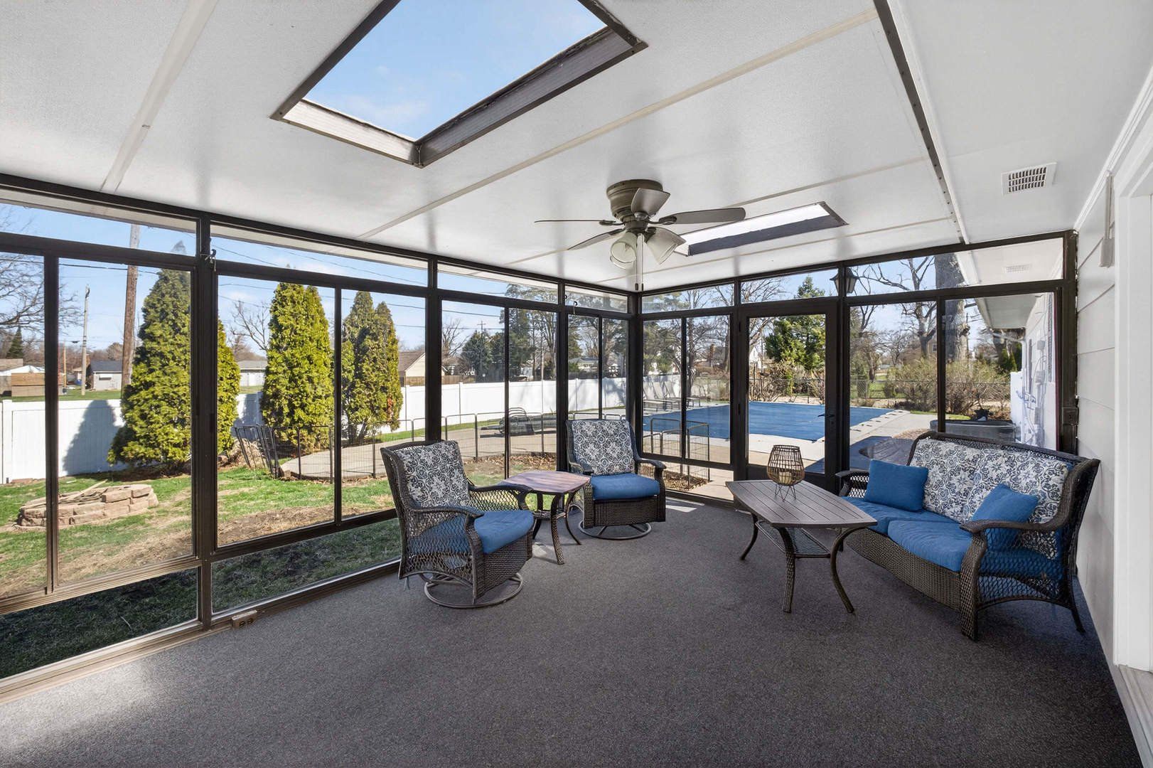 This beautifully maintained 3-bedroom, 3-bath home checks all the boxes, inside and out. The main level features three spacious bedrooms, offering convenient one-level living along with bright, inviting spaces perfect for both everyday life and entertaining. Downstairs, you'll find additional finished space plus 2 conforming bedrooms. With three bathrooms, there's plenty of room and flexibility for everyone.Step outside and the real magic begins. The fully fenced yard provides privacy and space to enjoy, while the three-season room gives you that perfect in-between spot to relax rain or shine. And then there's the showstopper an amazing in-ground pool that transforms your backyard into your own private getaway. Whether it's summer parties, quiet evenings, or weekend lounging, this space was made for making memories. Don't let this one slip by... homes like this don't come around often.
