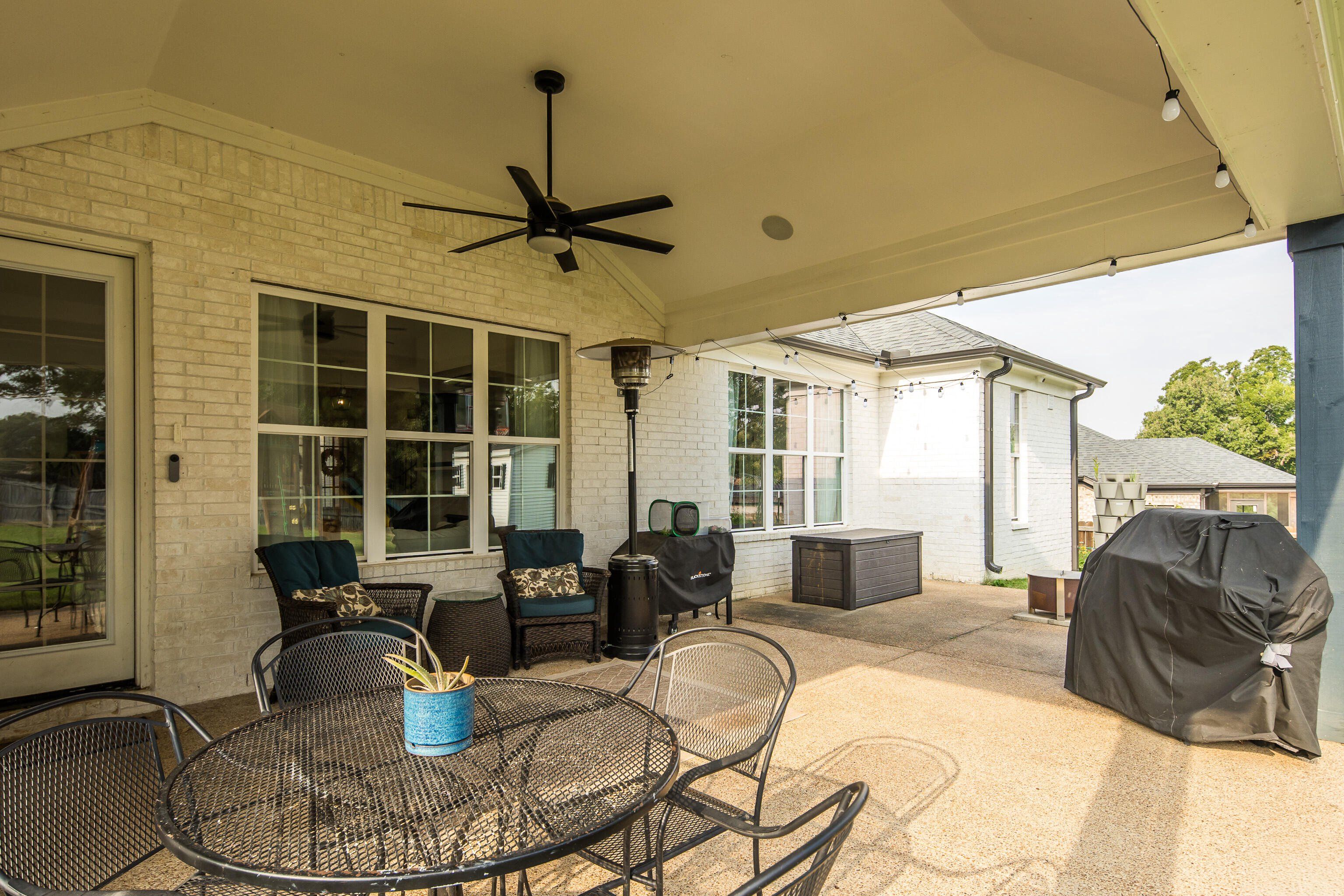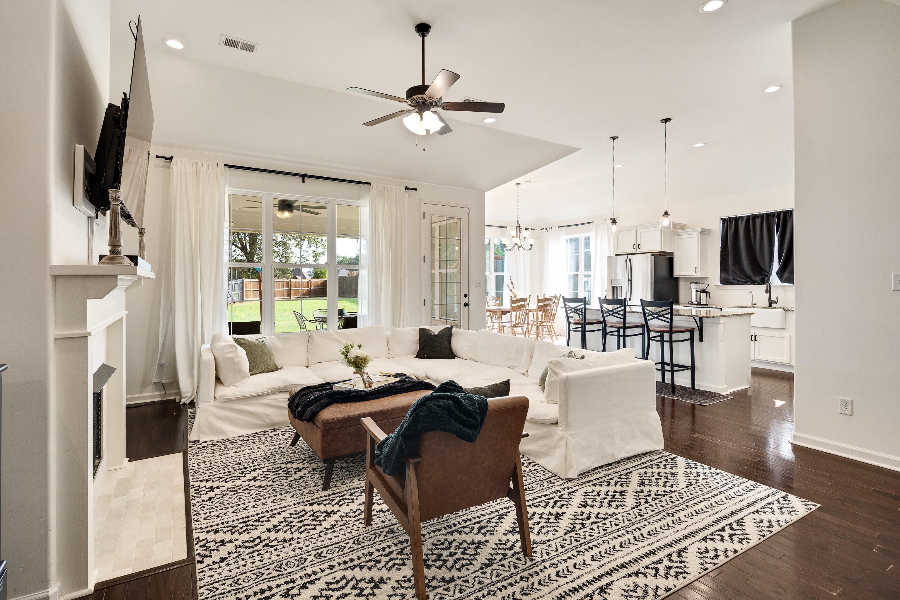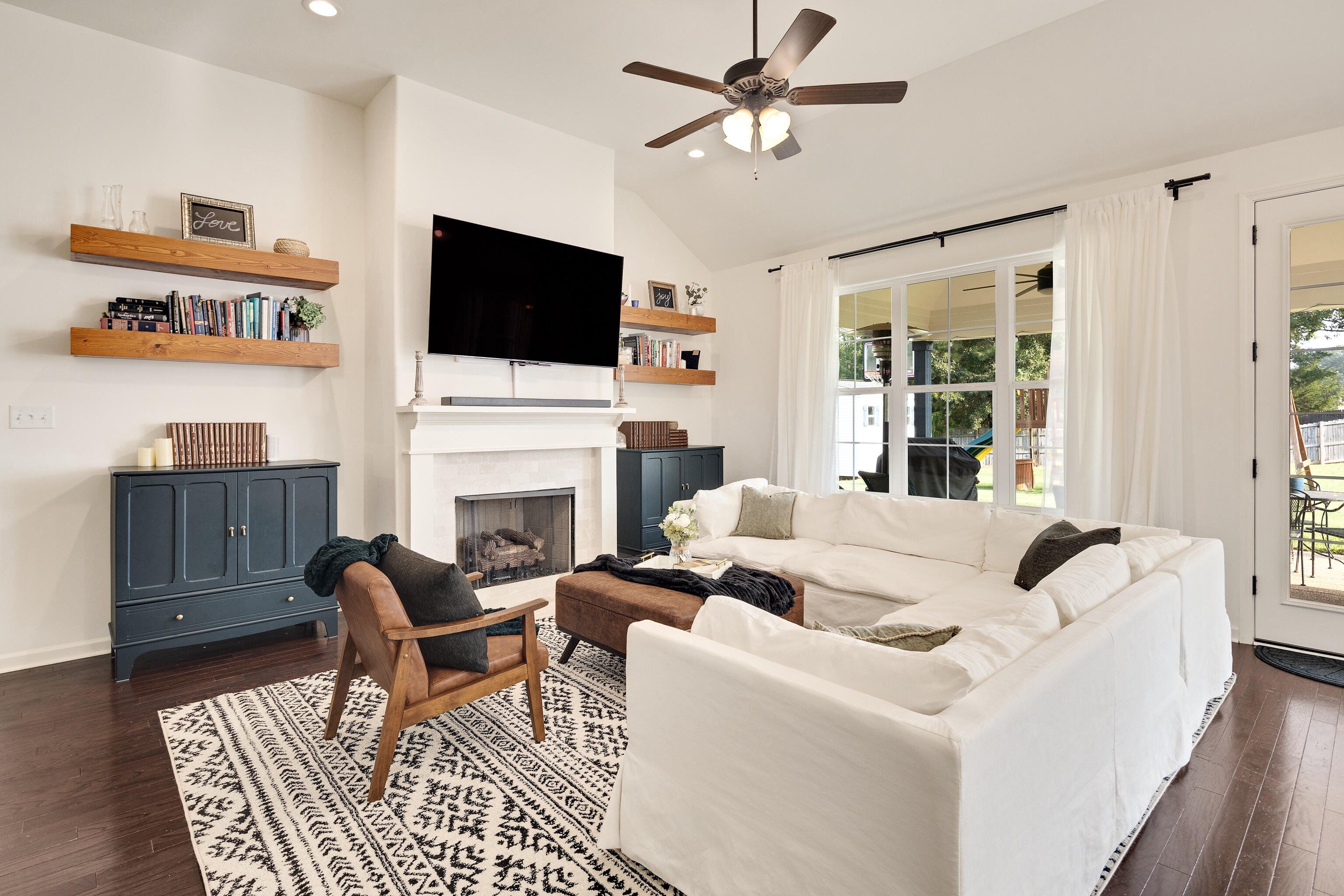 This beautiful 5-bedroom, 3-bath home was custom built in 2020 and offers a rare combination of modern upgrades and a backyard you won’t find anywhere else in this neighborhood. The property features a large, fully fenced yard backed by mature trees and fronted by mature woods instead of neighbors. Inside, the open-concept main level was designed for everyday living and entertaining. The living room features a cozy fireplace with custom built-in shelving, while the kitchen offers granite countertops, a gas stove and stainless steel appliances. Flooring throughout the home includes hardwood in the main living areas, tile in the baths, and carpet in the bedrooms. 3 bedrooms / 2 baths downstairs + 2 bedrooms / 1 bath upstairs This home also incorporates modern efficiency features to keep utilities low and comfort high: a tankless water heater, energy-efficient windows, and a radiant barrier in the attic all add long-term value. Ethernet runs throughout the home make it smart-home ready for reliable streaming, gaming, or work-from-home needs, while a pre-wired media room and patio speakers make entertaining seamless inside and out. Step outside to a covered patio with extended concrete overlooking the spacious yard. Professionally landscaped beds with automatic irrigation keep the property low-maintenance and beautiful year-round, while a detached, hand-built workshop offers extra storage or hobby space. Highlights: Large, flat fenced backyard with raised garden beds (with automatic drip watering) Covered patio with extended concrete & outdoor speakers Detached hand-built workshop Custom pantry under stairs & built-in shelving Tankless water heater, energy-efficient windows & radiant barrier in the attic Reverse osmosis water in kitchen 50A RV/generator hookup