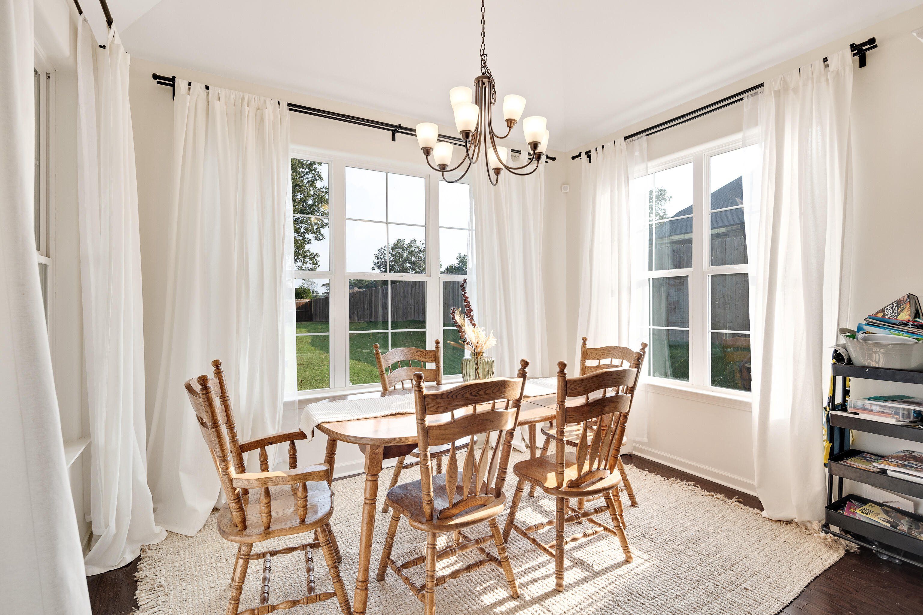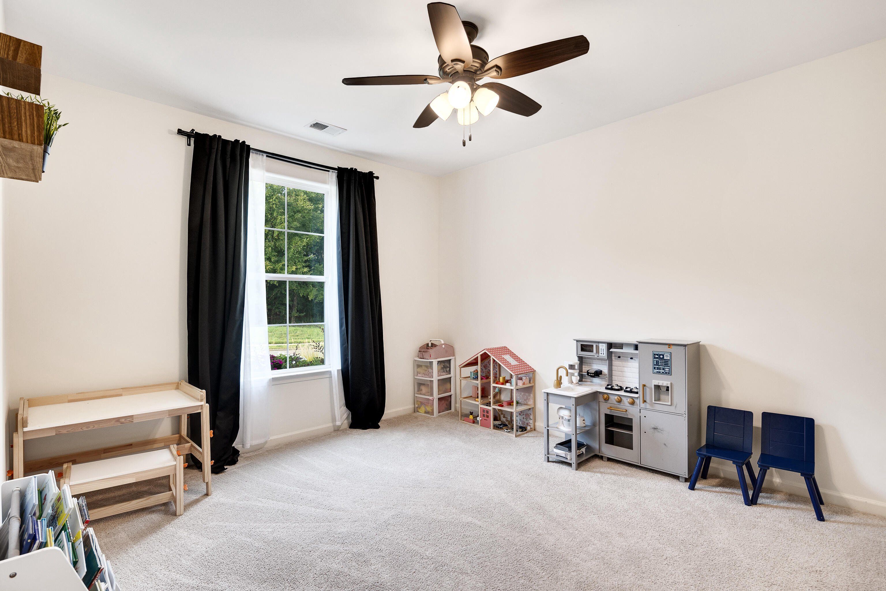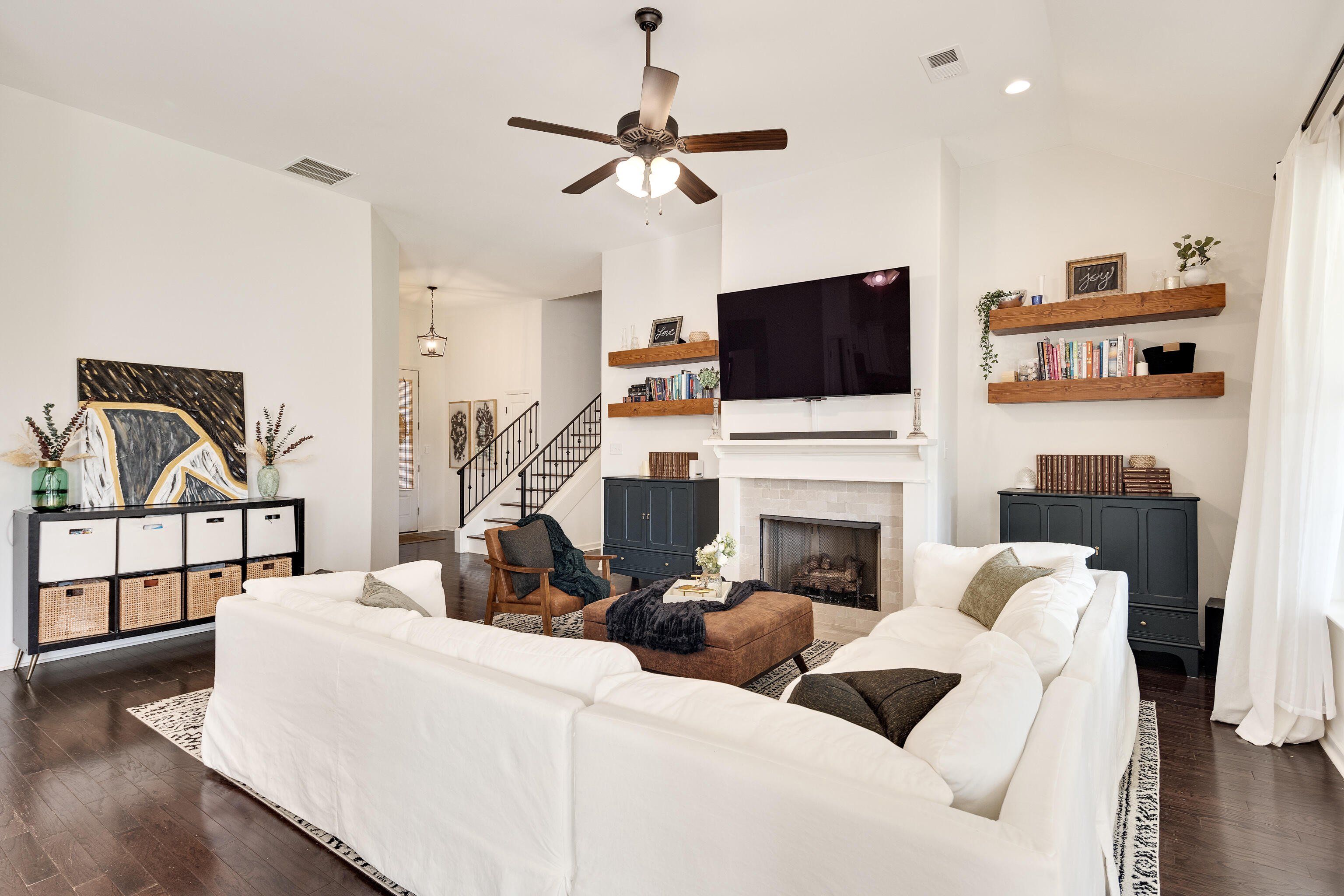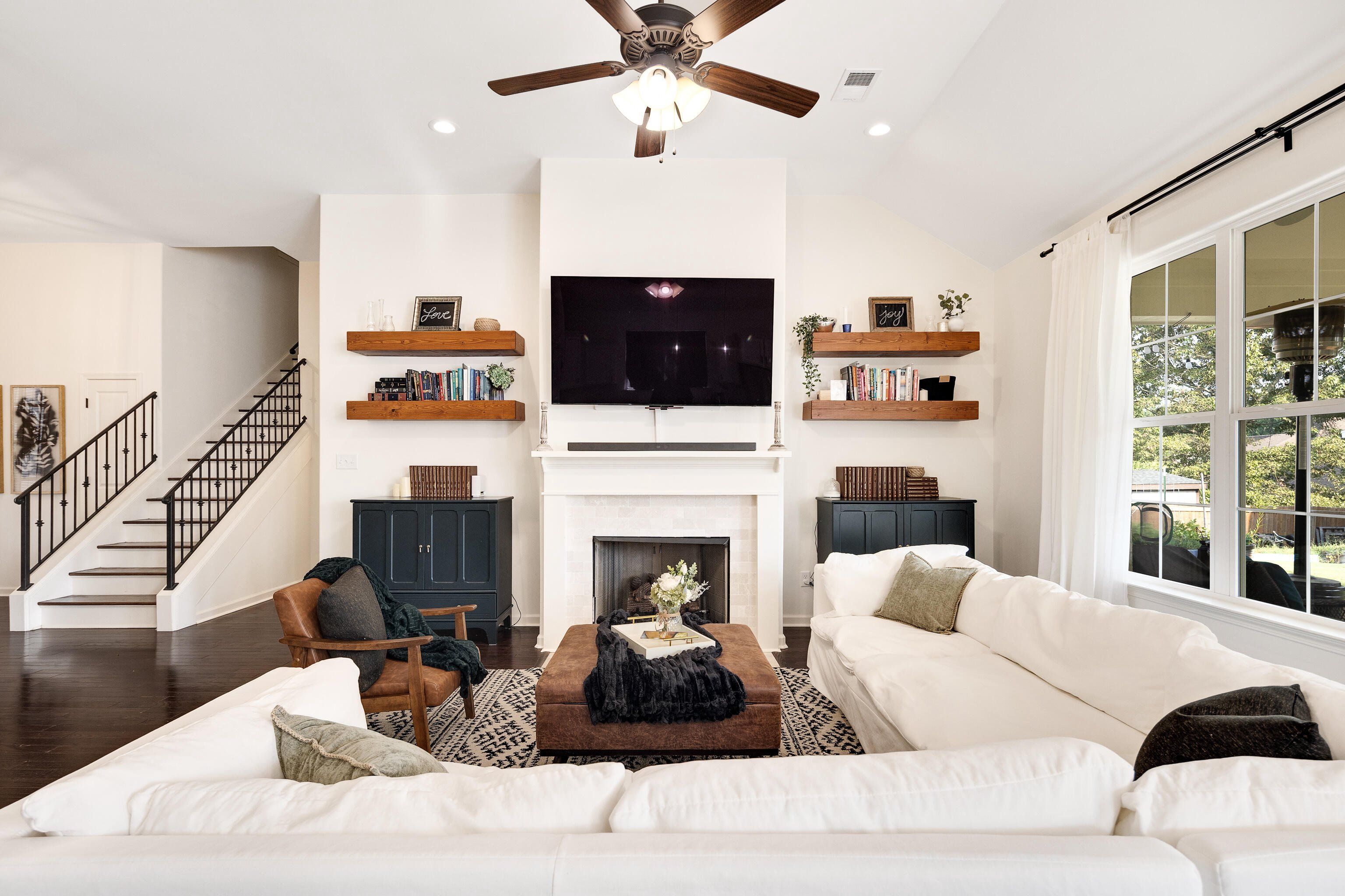 This beautiful 5-bedroom, 3-bath home was custom built in 2020 and offers a rare combination of modern upgrades and a backyard you won’t find anywhere else in this neighborhood. The property features a large, fully fenced yard backed by mature trees and fronted by mature woods instead of neighbors. Inside, the open-concept main level was designed for everyday living and entertaining. The living room features a cozy fireplace with custom built-in shelving, while the kitchen offers granite countertops, a gas stove and stainless steel appliances. Flooring throughout the home includes hardwood in the main living areas, tile in the baths, and carpet in the bedrooms. 3 bedrooms / 2 baths downstairs + 2 bedrooms / 1 bath upstairs This home also incorporates modern efficiency features to keep utilities low and comfort high: a tankless water heater, energy-efficient windows, and a radiant barrier in the attic all add long-term value. Ethernet runs throughout the home make it smart-home ready for reliable streaming, gaming, or work-from-home needs, while a pre-wired media room and patio speakers make entertaining seamless inside and out. Step outside to a covered patio with extended concrete overlooking the spacious yard. Professionally landscaped beds with automatic irrigation keep the property low-maintenance and beautiful year-round, while a detached, hand-built workshop offers extra storage or hobby space. Highlights: Large, flat fenced backyard with raised garden beds (with automatic drip watering) Covered patio with extended concrete & outdoor speakers Detached hand-built workshop Custom pantry under stairs & built-in shelving Tankless water heater, energy-efficient windows & radiant barrier in the attic Reverse osmosis water in kitchen 50A RV/generator hookup