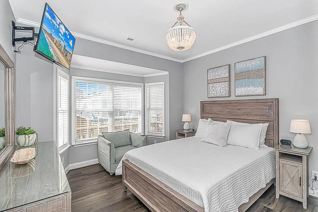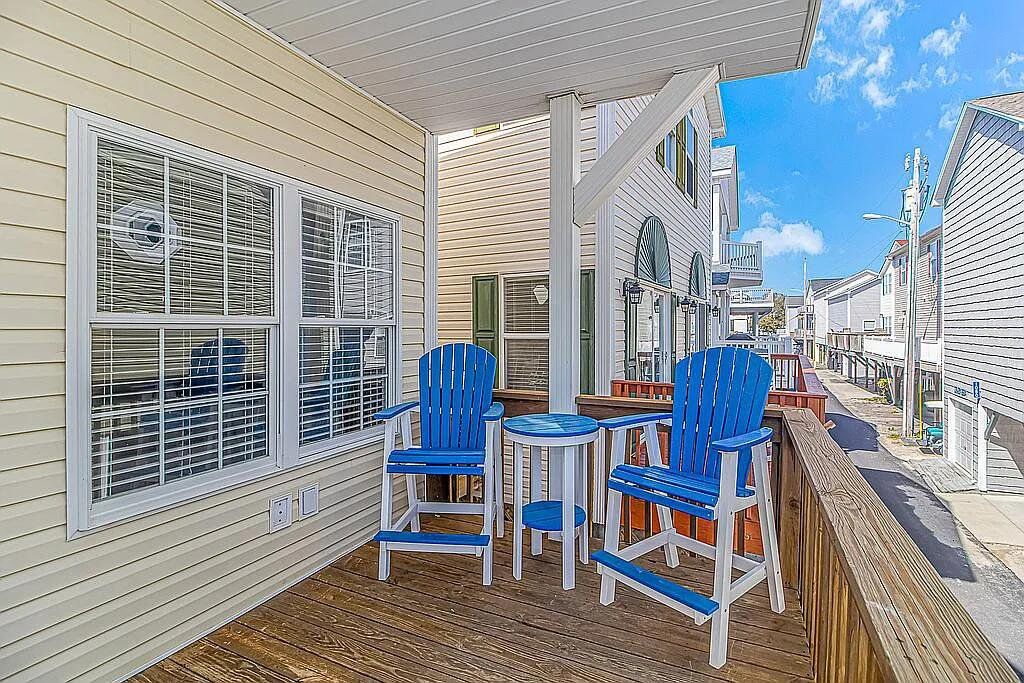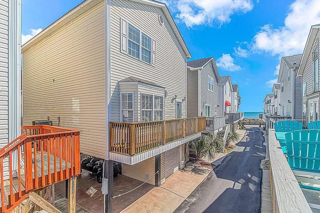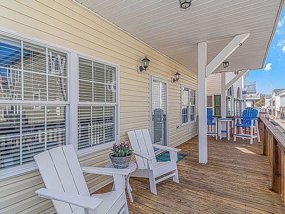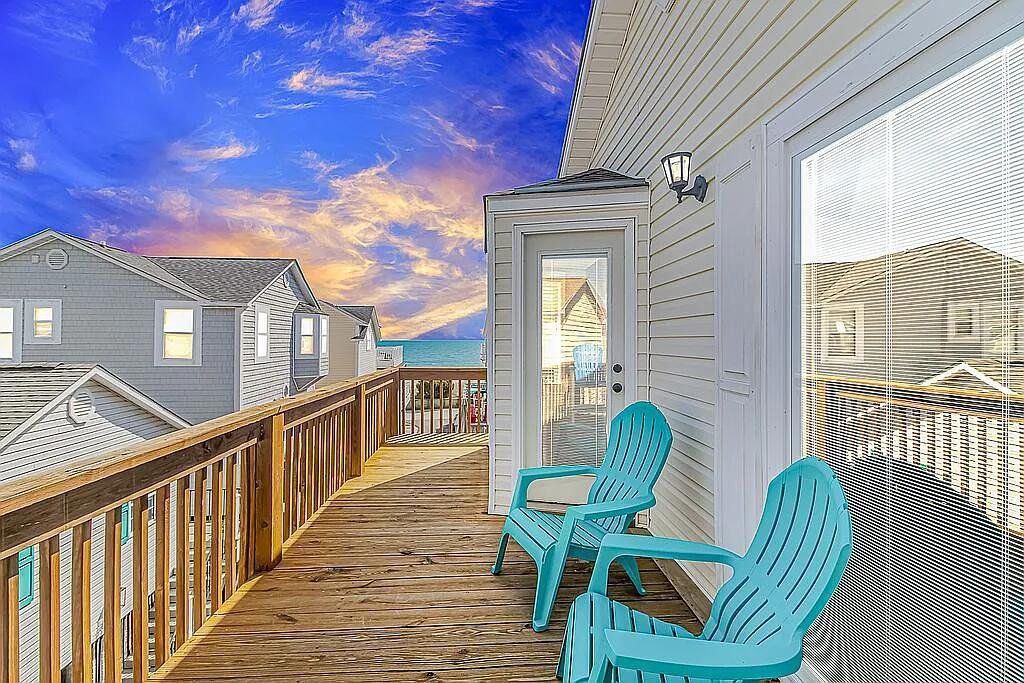 A turnkey, fully renovated beach house awaits at 1098, located within the acclaimed Ocean Lakes Family Campground. This 4-bedroom, 3-bath, two-story raised beach house comes fully furnished and delivers breathtaking views of the Atlantic Ocean from all three porches. The property is now available at $749,900. Recent improvements include two new HVAC units installed in 2024, a new hot water heater added in 2025, and new exterior gutters installed in 2024. Positioned just five houses from the ocean, the main floor features a spacious living room that flows into an open-concept dining area and kitchen with a charming breakfast bar. The kitchen includes brand-new custom all-wood cabinet doors, top-tier stainless steel appliances (washer and dryer included), and granite countertops. The home showcases new LVP flooring throughout and tile flooring in all three bathrooms. The first floor includes a bedroom and full bath with a new vanity, tile shower, and toilet. Upstairs are three additional bedrooms. The primary and second bedrooms feature new solid-wood High Point Furniture Market sample king bedroom sets. The third bedroom includes a full-over-twin bunk bed. Two additional full bathrooms include new vanities, toilets, and tub/shower units. Enjoy exceptional ocean views from all three decks, generous parking under the home, and a convenient outdoor shower. A full renovation completed in November 2023 added crown molding, custom window casings throughout, and a custom amethyst stone tile fireplace with an electric heater insert