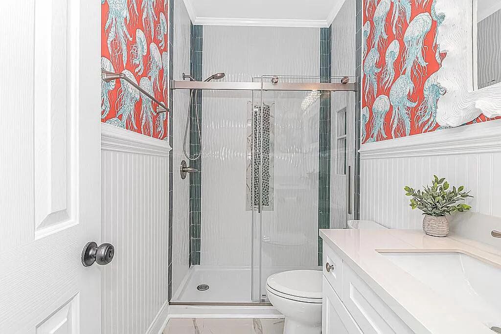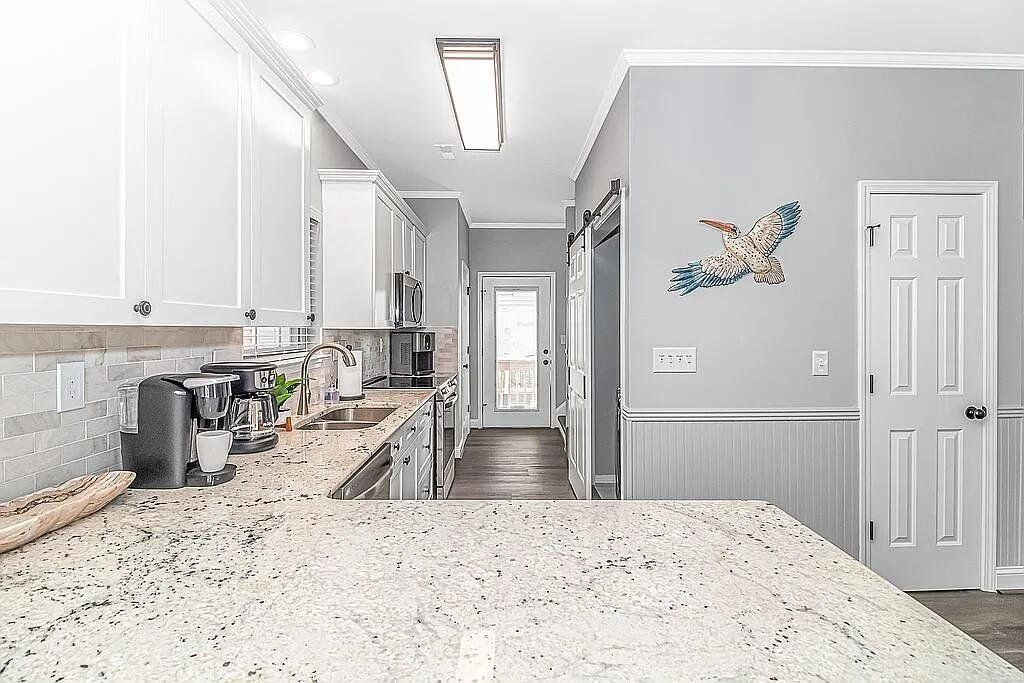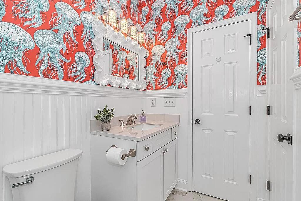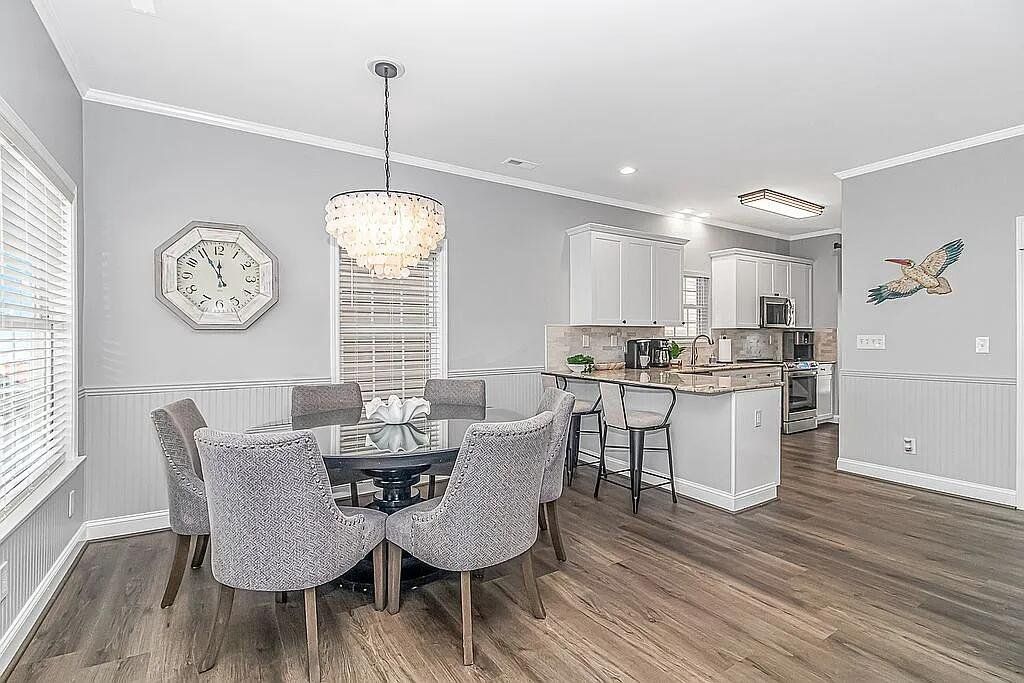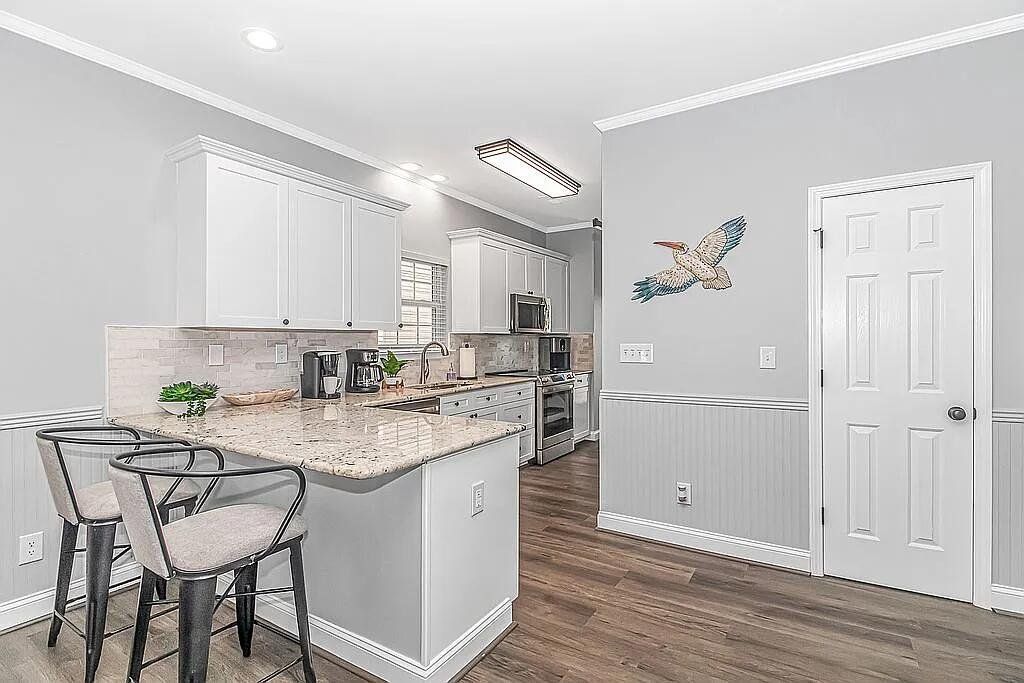 A turnkey, fully renovated beach house awaits at 1098, located within the acclaimed Ocean Lakes Family Campground. This 4-bedroom, 3-bath, two-story raised beach house comes fully furnished and delivers breathtaking views of the Atlantic Ocean from all three porches. The property is now available at $749,900. Recent improvements include two new HVAC units installed in 2024, a new hot water heater added in 2025, and new exterior gutters installed in 2024. Positioned just five houses from the ocean, the main floor features a spacious living room that flows into an open-concept dining area and kitchen with a charming breakfast bar. The kitchen includes brand-new custom all-wood cabinet doors, top-tier stainless steel appliances (washer and dryer included), and granite countertops. The home showcases new LVP flooring throughout and tile flooring in all three bathrooms. The first floor includes a bedroom and full bath with a new vanity, tile shower, and toilet. Upstairs are three additional bedrooms. The primary and second bedrooms feature new solid-wood High Point Furniture Market sample king bedroom sets. The third bedroom includes a full-over-twin bunk bed. Two additional full bathrooms include new vanities, toilets, and tub/shower units. Enjoy exceptional ocean views from all three decks, generous parking under the home, and a convenient outdoor shower. A full renovation completed in November 2023 added crown molding, custom window casings throughout, and a custom amethyst stone tile fireplace with an electric heater insert