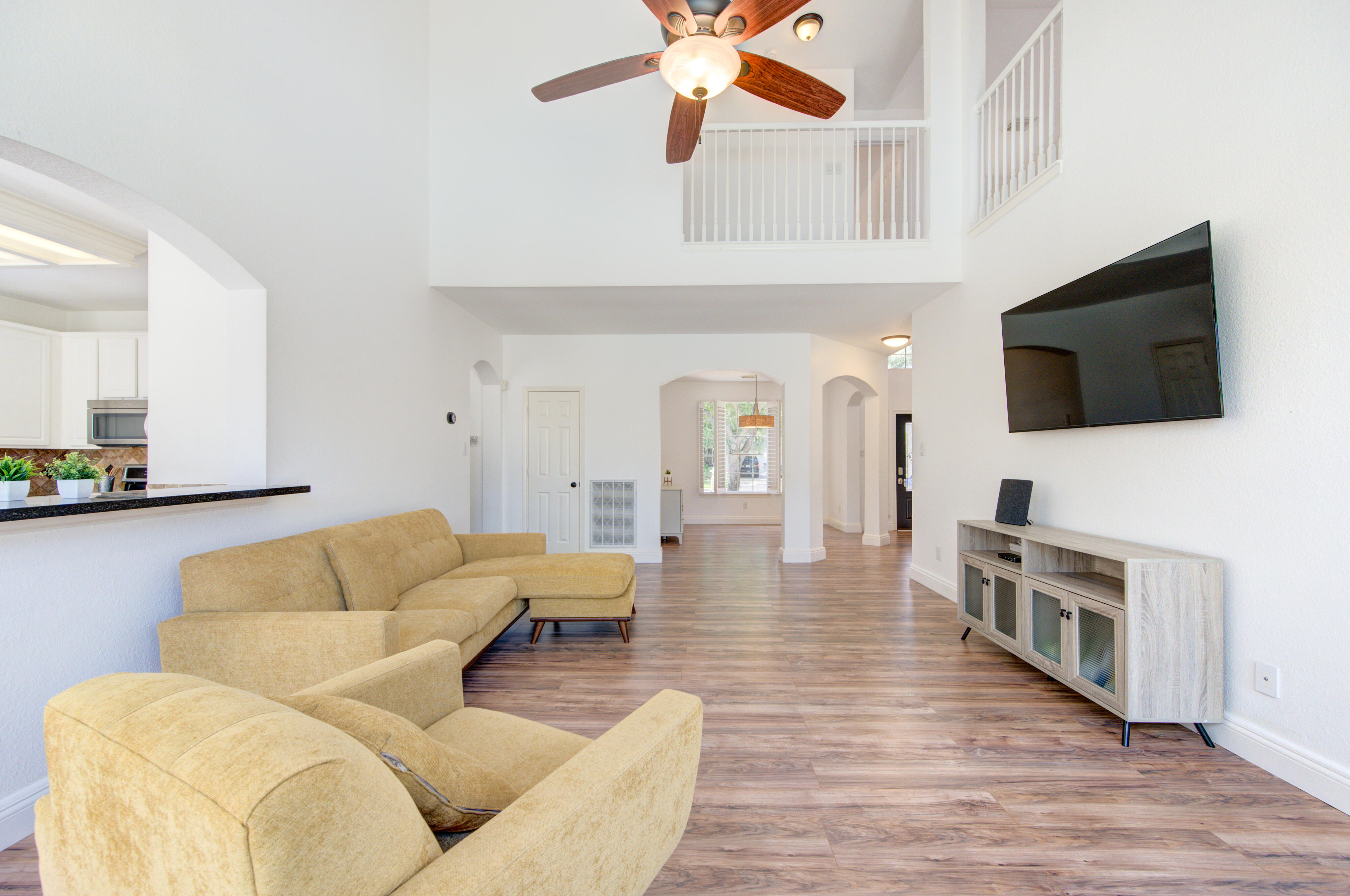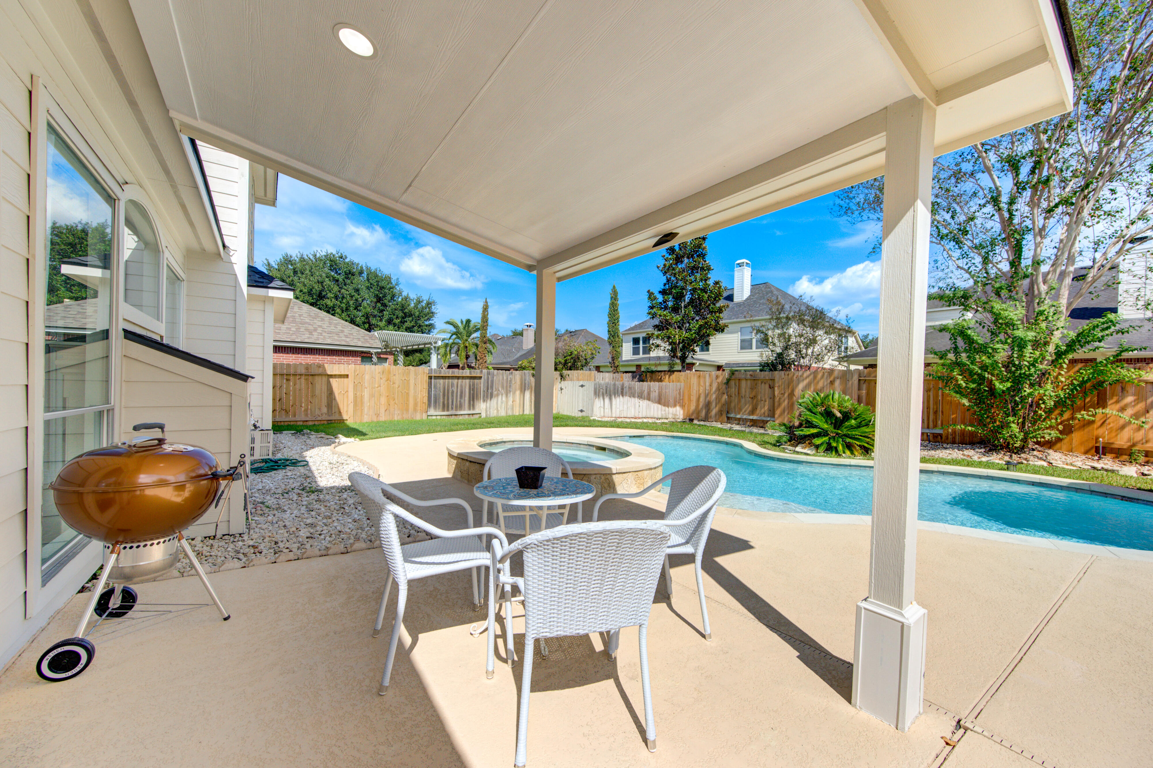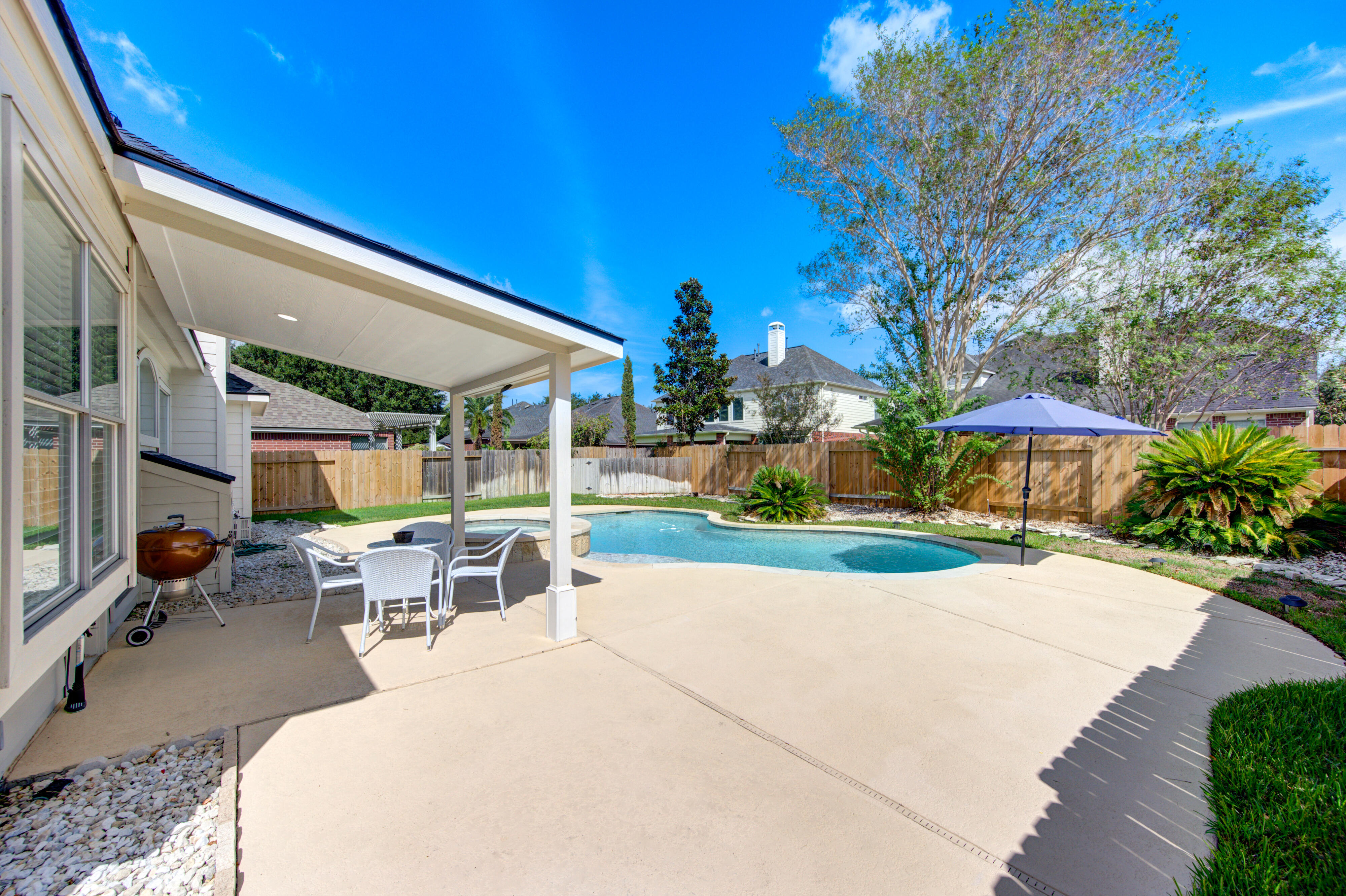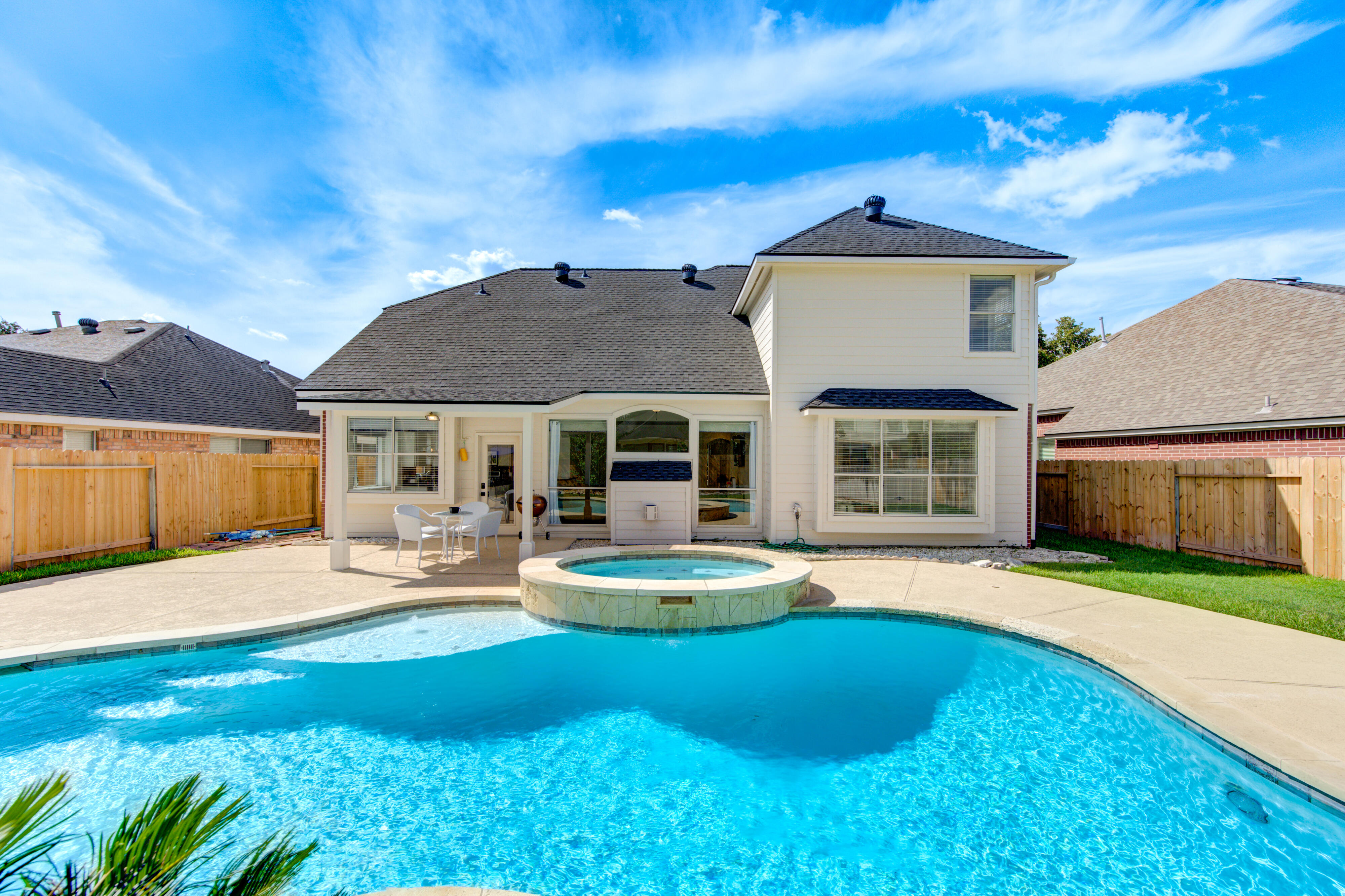 Your House hunting is OVER…Welcome to this Fabulous executive home with heated spa/pool in THE very highly desirable Grand Lakes, zoned to top KISD schools. Easy access to Westpark Tollway and 99, ensuring a seamless commute. Absolute no carpet throughout the house(except by stairs with newly installed carpet) – Flooring is also less than 1y old. With lots of upgrades included brand-new roof with forced exhausted turbines to save energy bills, new furnace, nest thermostat, ring doorbell and ring camera/flood light, SS appliances including fridge, top of the line Washer and dryer(8mths old), 65” TV(8 mths old) and an electric 100” projector screen for your movie nights. Come and enjoy the brightness of the natural light that comes through the multiple windows and the great view of your private pool. This house is a gem and wont last long.
