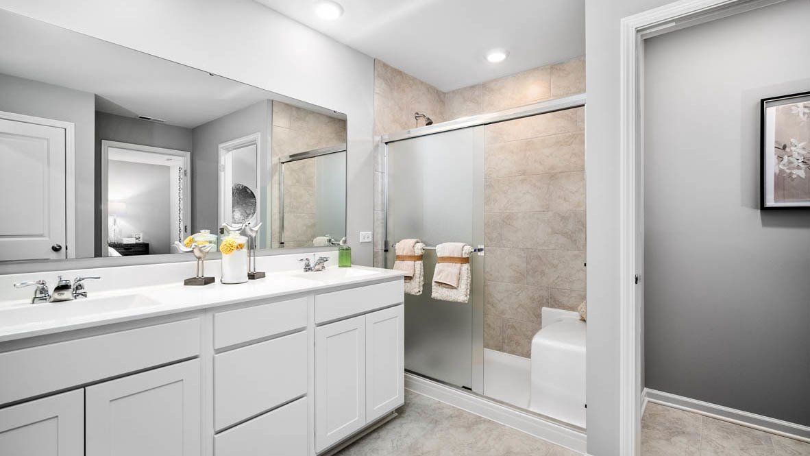Discover yourself at 6212 Leinster Lane in Tinley Park, Illinois, a beautiful new home in our Oak Ridge community. This home will be ready for a summer move-in! This home site has a basement, and fully sodded yard. This Henley plan offers 2,600 square feet of living space with a flex room, 4 bedrooms, 2.5 baths, 9-foot ceilings on first floor, and full basement. Entertaining will be easy in this open-concept kitchen and family room layout with a large island with an overhang for stools, 42-inch designer cabinetry with soft close drawers. Additionally, the kitchen features a walk-in pantry, modern stainless-steel appliances, quartz countertops, and easy-to-maintain luxury vinyl plank flooring. More flexible space is waiting upstairs in the 2nd-floor loft, offering unlimited potential to suit your needs. Enjoy your private getaway with your large primary bedroom and en suite bathroom with a raised height dual sink, quartz top vanity, and walk-in shower with clear glass shower doors. Convenient walk-in laundry room, 3 additional bedrooms with a full second bath and a linen closet complete the second floor. This charming, historic town evokes a family atmosphere with countless options for shopping, dining and entertainment. All Chicago homes include our America's Smart Home Technology. Photos are of similar home and model home. Actual home built may vary.