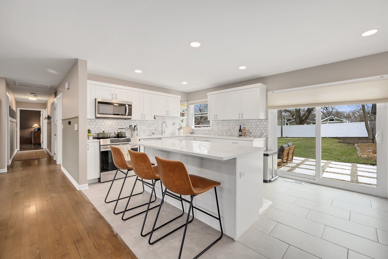 Completely reimagined and beautifully remodeled within the last 3 years, this exceptional home blends modern design with warm, livable elegance-offering tremendous square footage and a true West Elm aesthetic throughout. At the heart of the home is a stunning white and bright kitchen that flows seamlessly into the dining and living areas, creating an open-concept layout perfect for everyday living and effortless entertaining. This culinary kitchen features stainless steel appliances, quartz countertops, marble backsplash, and new shaker style cabinetry. The space is enhanced by gorgeous new flooring, designer-inspired finishes, and an abundance of natural light pouring in through expansive windows. The main level features four spacious bedrooms, including a luxurious primary suite designed as a private retreat. Unwind in the spa-like custom bath, complete with an updated vanity , elevated finishes, and a serene ambiance. The primary bedroom is further enhanced with a stylish accent wall and upgraded lighting, creating a true sanctuary. Thoughtful updates continue throughout the home, including new paint in most rooms, updated doors, added built-in shelving in the living room, dimmer lighting, and custom closet organization systems. The fabulous finished basement offers incredible flexibility, with a newly added storage room and endless space for a home theater, playroom, or work-from-home options. Over 3000 sq ft of finished living space for the busiest of families. Step outside to your own private, zen-like retreat. The expansive backyard is fully enclosed with a newer cedar fence and features a newly installed patio feature-perfect for relaxing evenings, entertaining, or enjoying bonfires with neighbors under the stars. Professionally improved landscaping with new mulch beds, trees, and plantings adds to the tranquil setting. Ideally located near major highways including I-355 and I-88, this home offers convenience without compromising privacy. Enjoy close proximity to everything Downers Grove has to offer, including award-winning schools, parks, dining, and shopping. This is a rare opportunity to own a truly turnkey, designer-updated home with space, style, and an unbeatable setting.