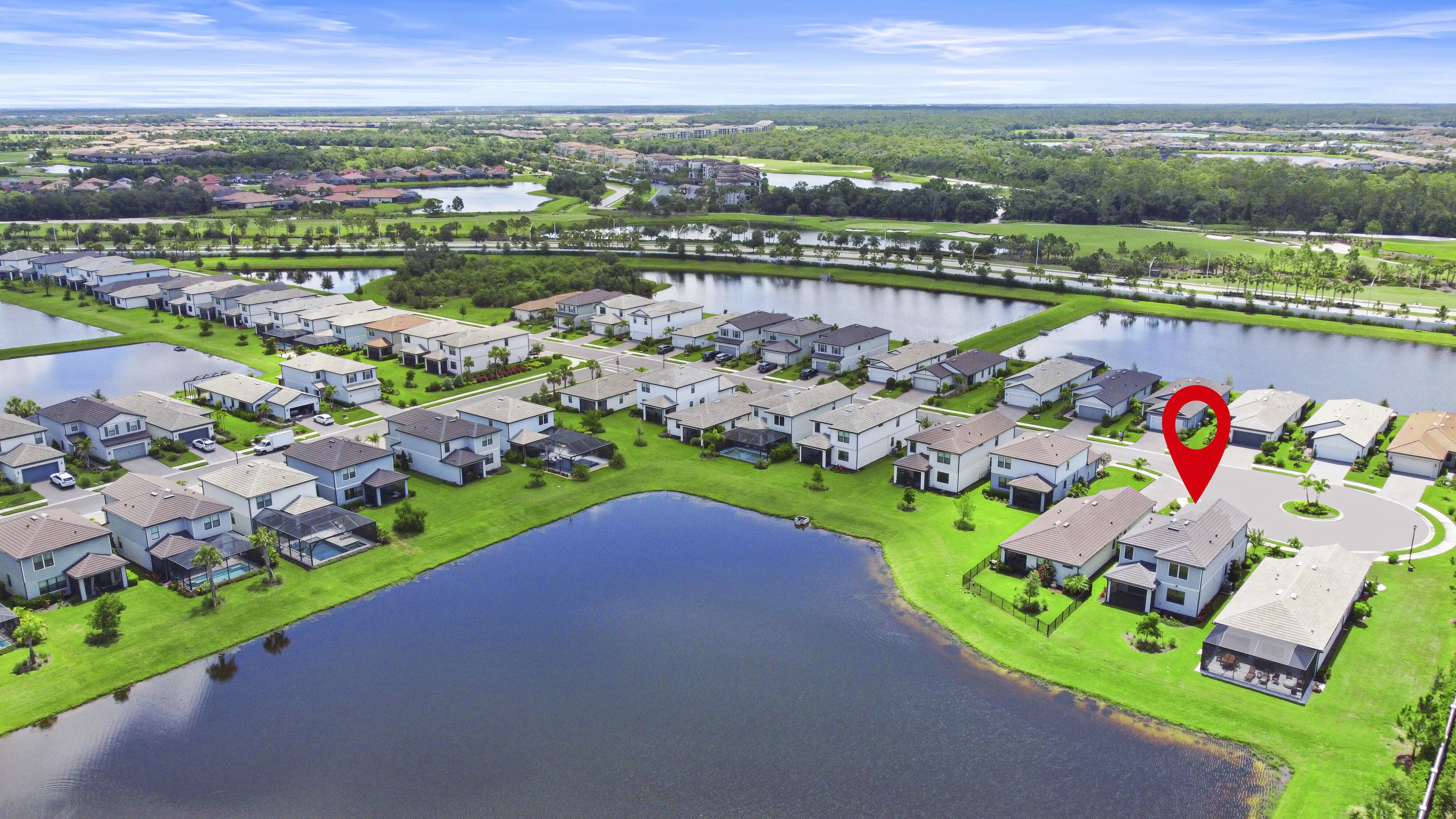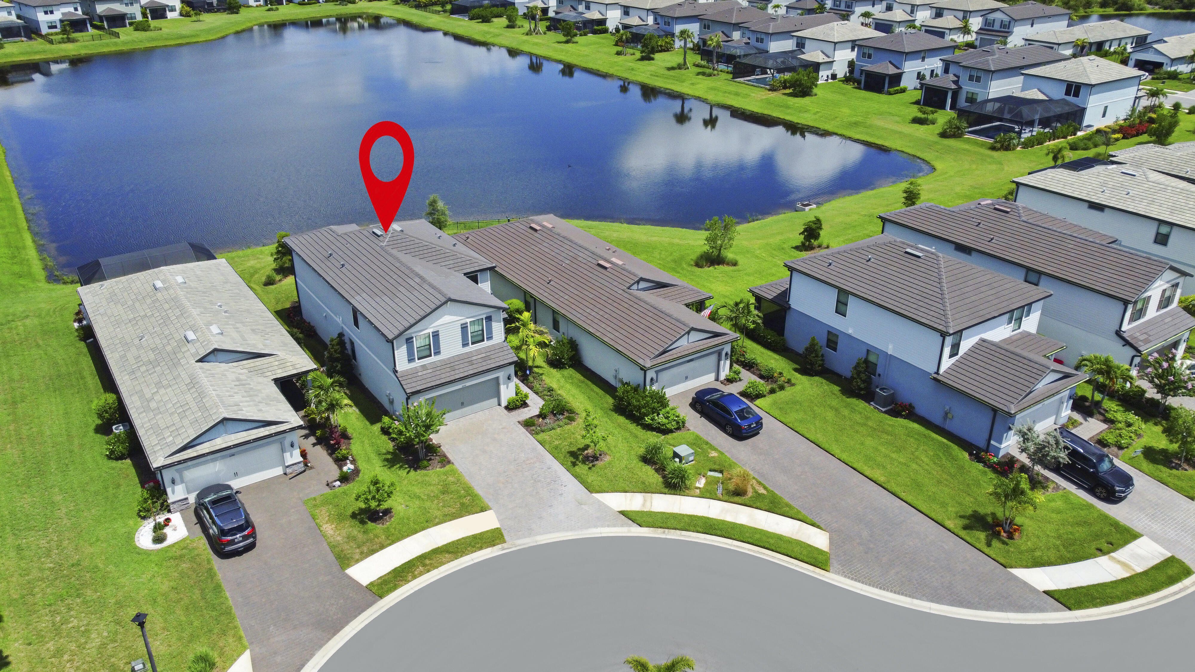 Quality Pulte 2023 build with 5 bedrooms, 3 bathrooms, Big Water View, Cul-de-sac privacy, and resort style living in the high demand Sapphire Point community. Welcome to 6256 Baywood Ct, a beautifully UPGRADED 5-BEDROOM, 3-BATH home on one of the most desirable lots in Sapphire Point, a gated community in Lakewood Ranch known for its RESORT-STYLE AMENITIES and family-focused environment. Tucked away at the end of a QUIET CUL-DE-SAC WITH A BACKYARD WATER VIEW, this property combines peaceful living with an active neighborhood lifestyle. Inside, the open-concept layout features a modern kitchen with granite countertops, PREMIUM KITCHENAID STAINLESS STEEL APPLIANCES, a large island, and abundant cabinet space. The kitchen connects to the dining and living areas, where large windows frame scenic views of the backyard and water. Upstairs, the PRIMARY SUITE OVERLOOKS THE WATER and includes a spacious walk-in closet and a spa-like en-suite bath with an OVERSIZED WALK-IN SHOWER. Three additional bedrooms, a versatile loft, and a second-floor laundry room provide flexible living space. On the main floor, a fifth bedroom and full bath provide a private setting for guests, extended family, or remote work. The covered and screened lanai adds comfortable outdoor living space with tranquil water views. The backyard is wide and private, with space to add a custom pool if desired. Community features include: -Resort-style pool -Clubhouse with kitchen and event space -Big fitness workout center, basketball court, fire pit, covered pavilion, and regularly hosted neighborhood events. Additional features include: -WHOLE-HOUSE WATER SOFTENER AND FILTER -GARAGE WITH 4-FOOT EXTENSION -EPOXY-COATED GARAGE FLOOR FOR A CLEAN, DURABLE FINISH -LEVEL 2 EV CHARGER INSTALLED AND 50-AMP GENERATOR PLUG INSTALLED Nearby are top-rated schools, shopping, dining, and direct access to I-75 for convenient travel. With FIVE BEDROOMS, THREE FULL BATHROOMS, CUL-DE-SAC PLACEMENT, WIDE WATER VIEWS, HIGH-END FINISHES, AND IMMEDIATE AVAILABILITY, this move-in-ready home stands out in one of Lakewood Ranch’s most sought-after neighborhoods. Some photos have been virtually rendered.