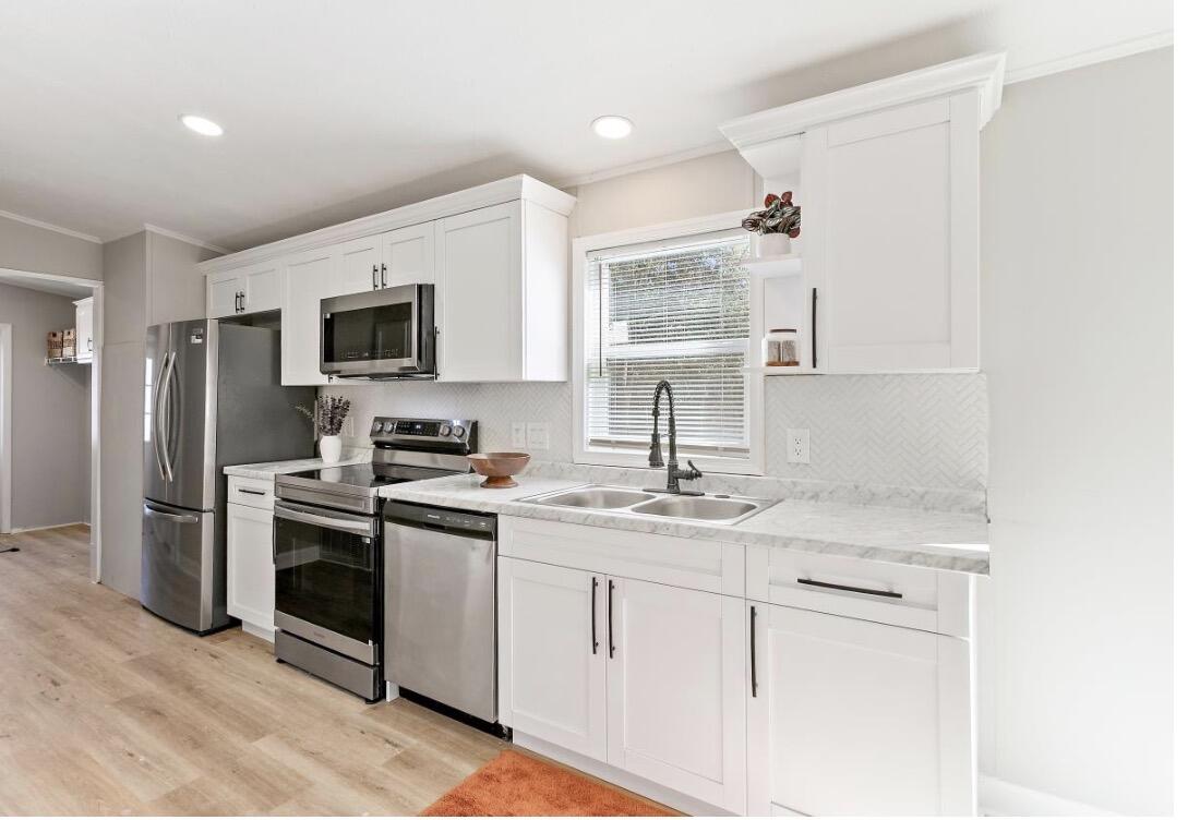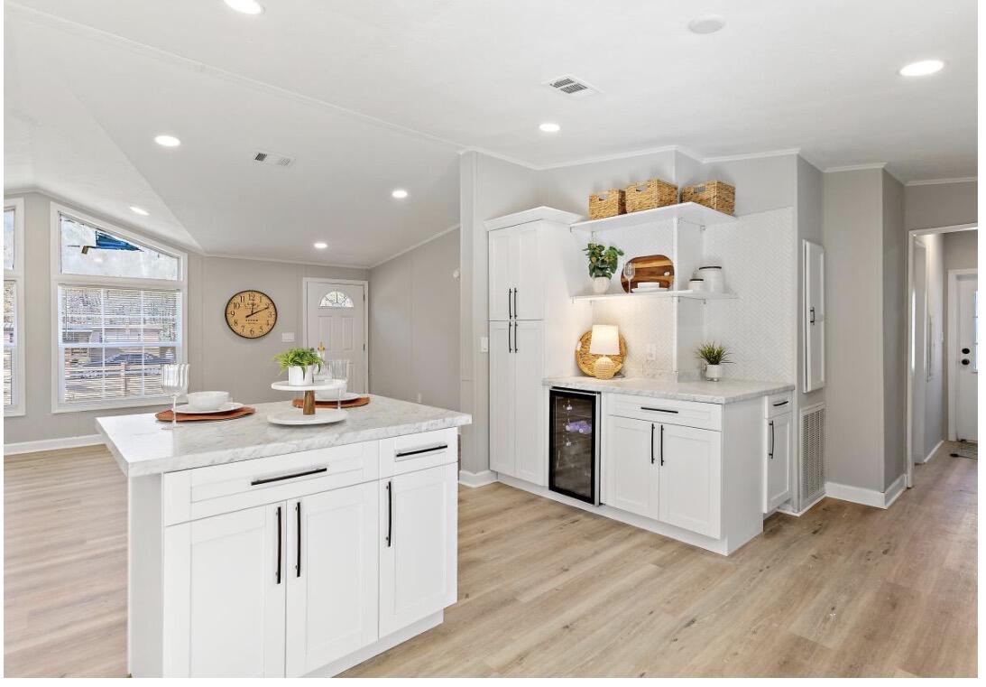 Welcome to this charming mobile home located at 6517 Aline Rd in Jacksonville. This property has an all new beautifully updated kitchen with stainless steel appliances including a beverage fridge, new AC, new roof, new floors, hot water heater and more! Walk in closets in each bedroom and a master bathroom with both shower and garden tub. Enjoy your time outside with all new front deck and oversized back deck with plenty of space for entertaining.