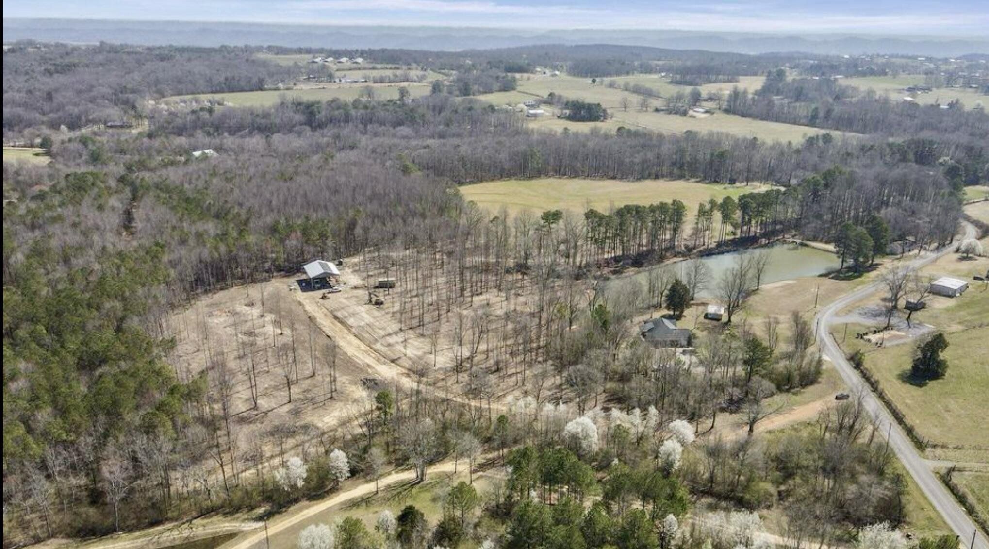 Property Key Points: 3 Acre Pod/Lake Well water, with Septic (city water is available) Rolling Hills, Wooded Acreage ; Hardwoods throughout Off Grid, or On Grid your Choice Natural gas on Site 24KW Generac Whole Home Generator 40x60 Building 12x24 Power Building Internet at the Road Build your home with an excellent elevated view of the 3 acre pond. Trees have been selectively cut with mostly hardwoods remaining, the theme was to keep as much of the tress as possible. The home build site is approx. 60 ft of elevation which allows you to see rolling hills that lead into a valley and pond area. The site is suitable to building a home slab, or a sloped area for a walk out basement.