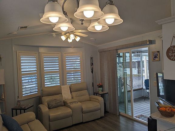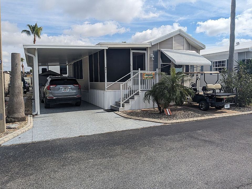 Homes are selling very quickly at the very popular Pleasant Lake RV Resort in Bradenton. This newly listed 1 bedroom, 1 1/2 bath home has beautiful views of the lake and endless spectacular sunsets. The home was renovated in 2019 and included vinyl plank luxury flooring, new half bath with LOTS of storage, new paint, new window coverings and treatments. quartz kitchen counter tops and attractive large kitchen sink with stainless steel pull down faucet. You will be amazed at the amount of storage in this home. The home has been loved and very well maintained. Included is a 2012 EZ Go golf cart, “Hazel”. She has new lithium batteries (2024), awesome wheels and tires, looks and runs great. This immaculate no smoking, no pet home boasts a stackable stainless steel smart washer/dryer (2024) and portable dishwasher if desired. It also includes a stainless refrigerator, stove, and microwave. A new rubber roof was installed in 2023. It also includes a 10'x34' carport that can easily accommodate a car and golf cart. It's also a great area for grilling. A 7'x7' storage/tool shed is also included. Several residents have lived in this resort for many, many years. Pleasant Lake RV Resort is a very friendly, helpful, fun 55+ active gated community and is conveniently located near Lowes, Home Depot, Walmart, Bealls, Publix, a large variety of restaurants (some within walking distance) and is only minutes to SRQ airport. We are less than 2 miles from I75 and close to many popular beach destinations. Lot rent is $844/month. Rent includes TV cable (2 TV's via Spectrum) and park internet, regular lawn maintenance, tree trimming and garbage. We enjoy a beautiful clubhouse with modern kitchen facilities, awesome fitness center, beautiful shower and laundry facilities, several picnic areas, game room with ping-pong and pool, library, swimming pool, shuffleboard, 2 pickle ball courts, corn hole and numerous planned activities. Enjoy the easy boat launch to go boating, fishing, or kayaking or fish from the shore to catch your dinner! Residents and visitors rave about the phenomenal sunsets over our lake. Be entertained by our large variety of birds. Pleasant Lake is dog friendly. The dog park is enjoyed by many. Come take a look. We'd love to show you around our little slice of paradise. You will not be disappointed. We live in the park so the home can be shown most any time. Just give us a call. We would love to meet you. Show more