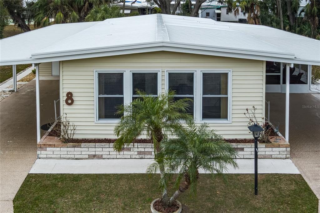 Welcome to Shadowbrook, a highly desirable non-age-restricted land-owned community offering comfort, convenience, and exceptional value. This spacious 2-bedroom, 2-bath home boasts over 1,400 square feet of thoughtfully designed living space and is packed with impressive upgrades. Enjoy the rare benefit of not one, but two separate new carports—perfect for extra vehicles or golf carts—along with a new HVAC system, new electrical in the oversized shed, screen room replacement, newer windows, and a new metal roof-over replacement for added peace of mind. Inside, New luxury vinyl flooring, carpet and tile flow beautifully throughout the home, complementing the generous layout that includes a large Florida room ideal for relaxing or entertaining year-round. The low condo fee provides outstanding value and includes access to the community pool and clubhouse, as well as water, sewer, internet, cable, and more. Located in a non-flood zone, this property offers additional security and savings. The backyard is a true retreat, surrounded by a verdant forest of trees that creates a peaceful, private backdrop—perfect for hosting backyard barbecues or simply unwinding with a good book. Conveniently located near Virgil Mills Elementary School, Buffalo Creek Middle School, and Parrish Community High School, the home is also just a short drive to the stunning beaches of Anna Maria Island, the natural beauty of Terra Ceia Preserve State Park, and the iconic Sunshine Skyway Bridge. With easy access to Interstate 75 and close proximity to a variety of restaurants and shopping destinations, this home truly offers the best of Florida living.