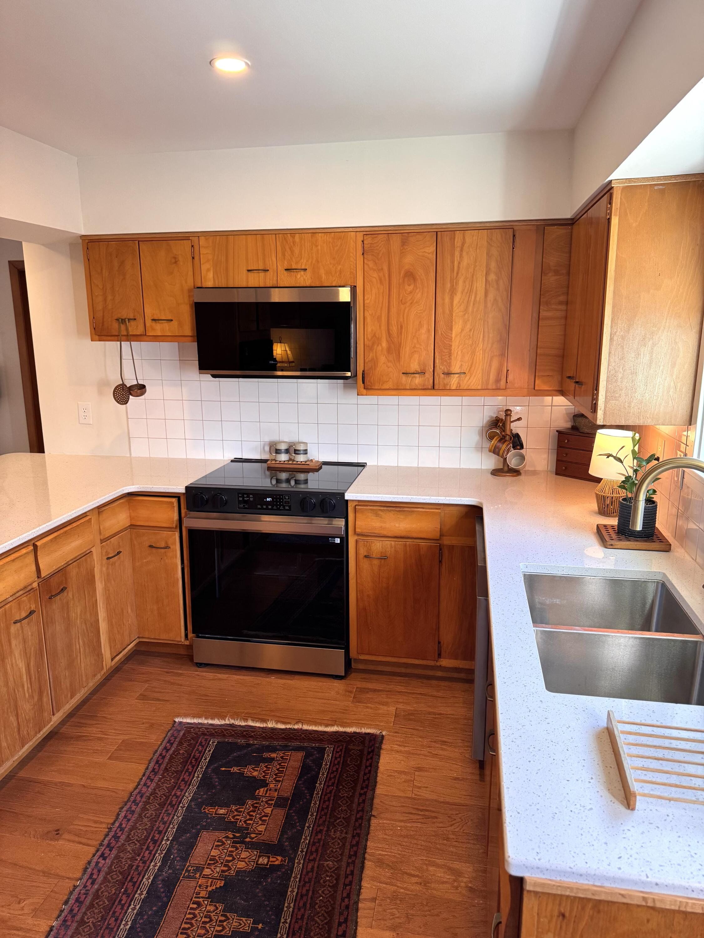 Beautifully remodeled single story house is move in ready! No detail was spared in this thoughtful and timeless update. 3 Bed, 2 bath and laundry room all on the main floor. All new oak flooring throughout. Kitchen features all new high end stainless steel appliances and luxury quartz countertops. Also has a built in wall oven in addition to the stove. Plenty of cabinet and countertop space. Island passes through into the dining area to create a seamlessly connected space. Wood burning fireplace in the living area is built to enjoy many cozy nights by the fire. Master bedroom features an attached laundry room as well as completely remodeled master bathroom. Bedrooms 2 and 3 are good sized, have lots of natural light and feature great closets. Full basement is a blank slate for storage or extra space as needed. Exterior has been completely updated with high end LP siding, all new energy efficient vinyl windows and a recently replaced shingle roof. Very spacious back yard with a back patio and roomy shed for storage. Gas heating and central air.