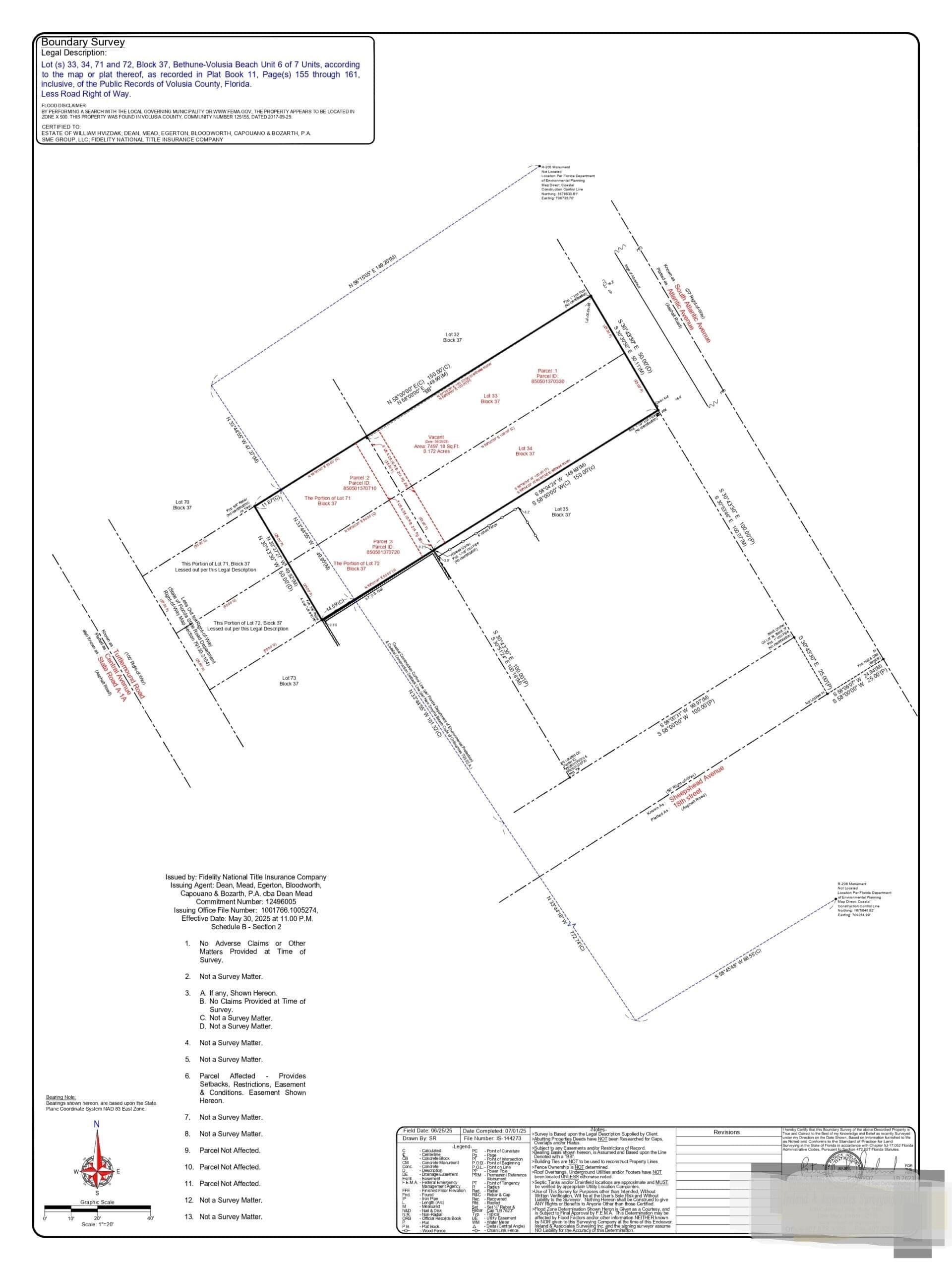 A rare opportunity to own a beachside double lot measuring 50′ x 150′ that runs street-to-street from South Atlantic Avenue to Turtlemound Road in the coveted Bethune Beach area of beautiful New Smyrna Beach. Just 100 feet from the beach walkover and directly across from the pristine, car-free sands, this property has dramatic ocean views from the second and third stories and is one of the few remaining buildable parcels in this high-demand coastal enclave. Surrounded by multi-million dollar residences, this lot provides flexible access from either or both streets, allowing for a variety of design possibilities–including a detached garage with a courtyard pool, guest house, or expansive coastal estate. Located close to shopping, dining, parks, and scenic bike trails, less than 10 minutes to vibrant Flagler Avenue, with quick access to multiple Intracoastal boat ramps (3 parcels make up this sale, 8505-01-37-0720, 8505-01-37-0710 also included)