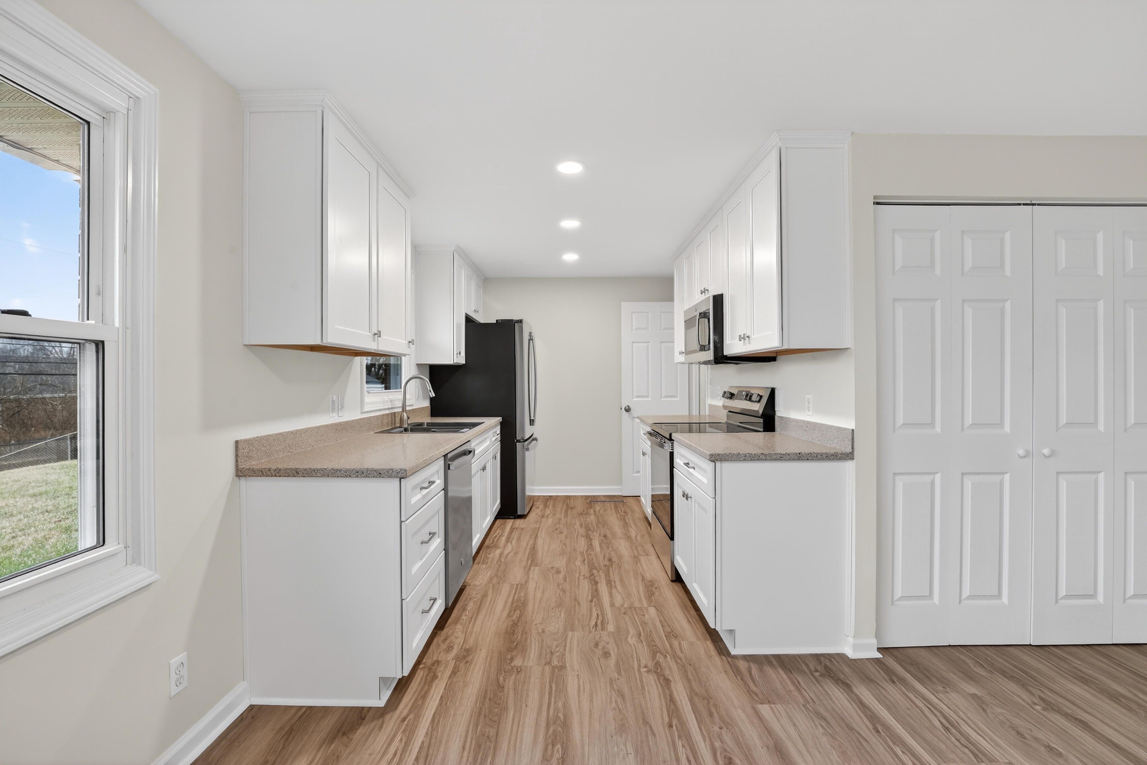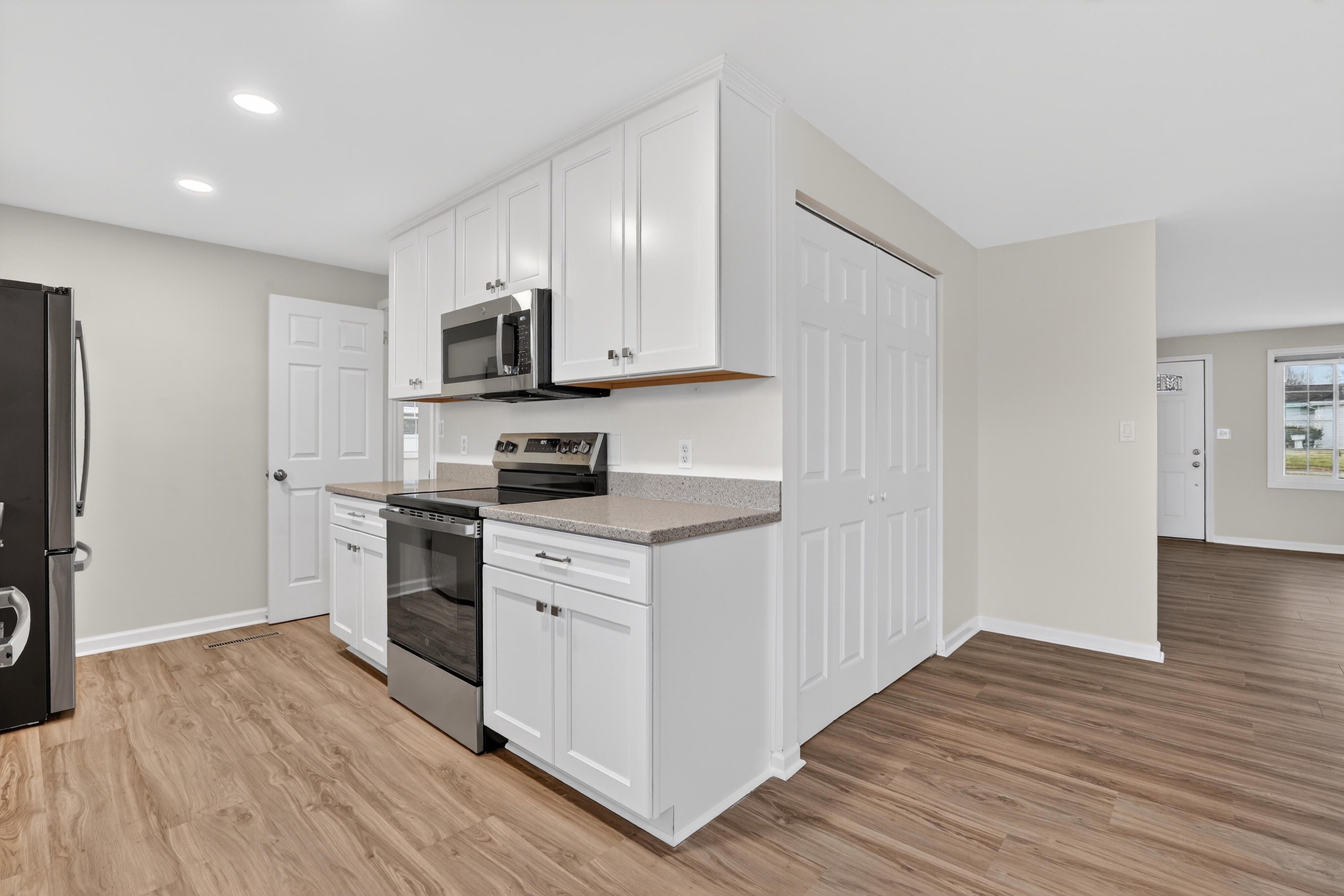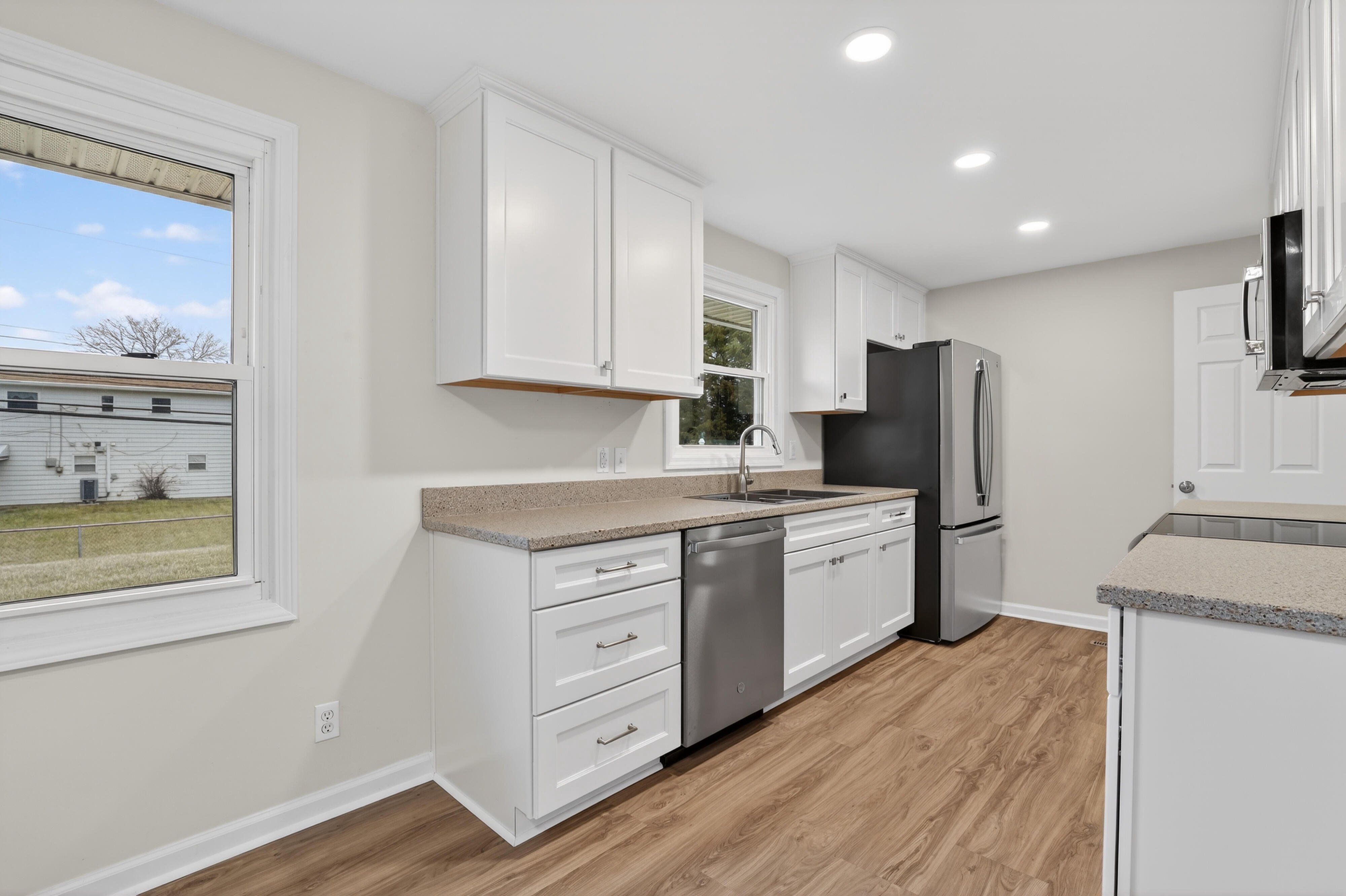 Completely remodeled single-family house located at 694 Park Avenue, Springdale, OH 45246. It has 3 bedrooms, 2 bathrooms, and a total living space of 1,667 square feet. The home includes central air conditioning, gas furnace, and a range of high-quality upgrades throughout. Interior Features - New windows - New solid wood kitchen cabinets and solid surface countertops - All New GE appliances – Refrigerator, dishwasher, stove, microwave