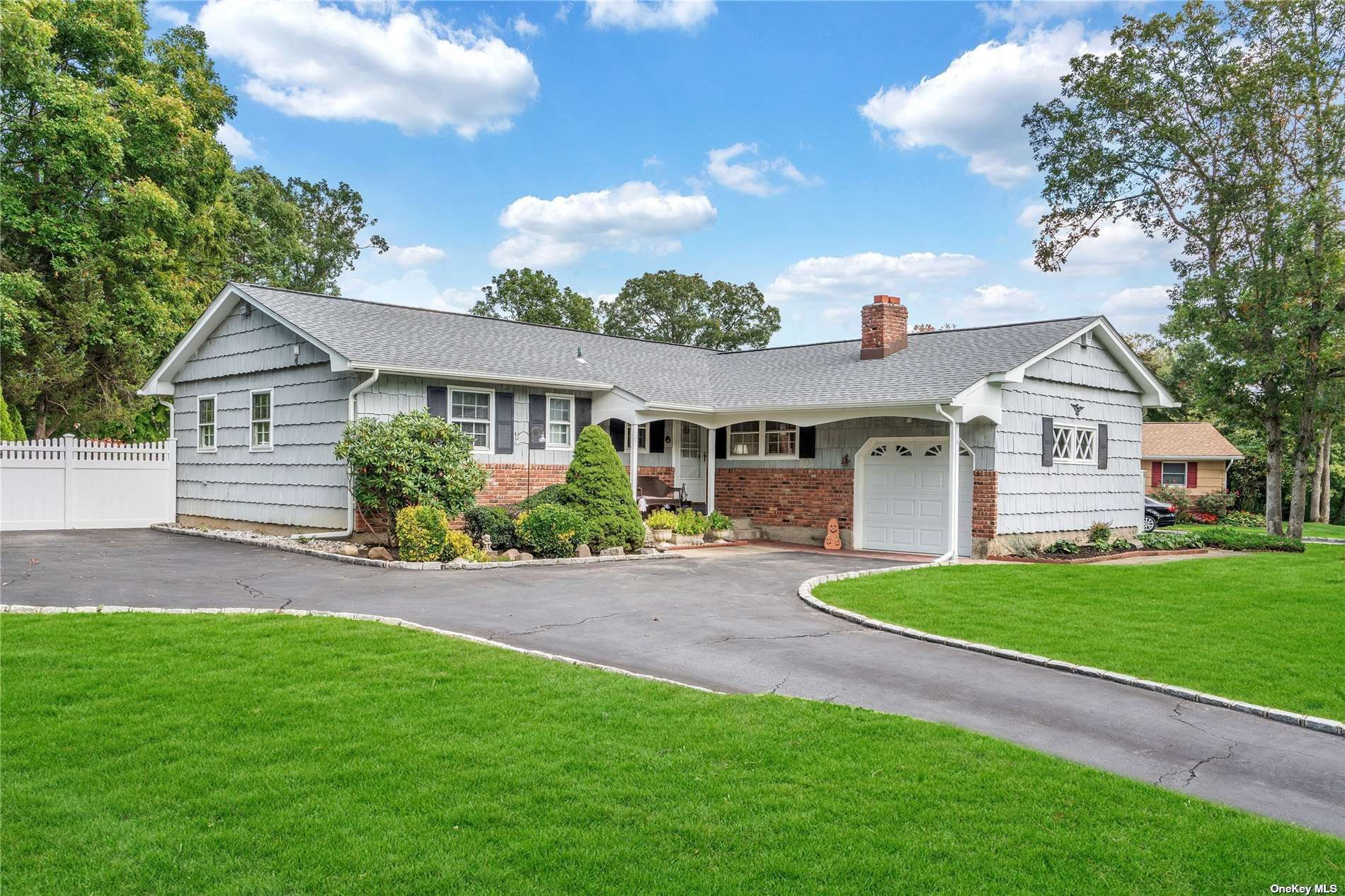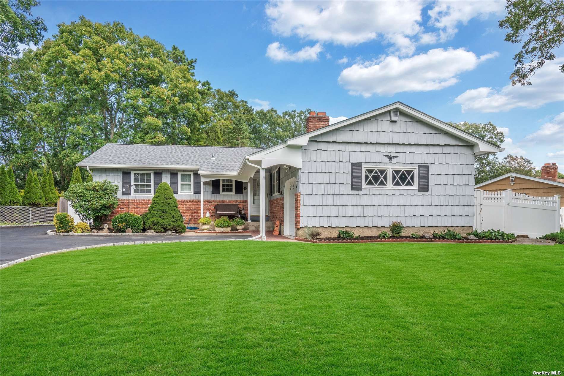 Welcome to this immaculate and charming ranch nestled on a level and beautifully landscaped property in the heart of the Story Book section of Nesconset within the Smithtown School District. This home boasts a front porch, an entry foyer, hardwood floors, a master bedroom with an en-suite bath, two additional bedrooms, second full bathroom, living room, dining room, den/family room with fireplace, kitchen with eat in area, full basement (1/2 finished), first floor laundry and mudroom with pantry and an outside entrance to the country club backyard complete with inground pool, patio and sitting areas that is perfect for entertaining, and a one car attached garage! This move in ready home is a must see and will not last!