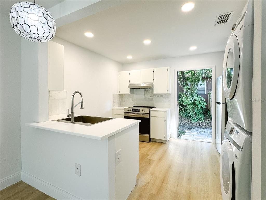 Welcome to Lakelandia! Be one of the first to live in our completely renovated garden-style apartments located in the Lake Morton Historic District. This 2/1 home includes 852 sq. ft of living space plus 128 sq. ft. of outdoor patio space. Surrounded by mature landscaping and excellent residents, this unit has been completely renovated to include new plumbing, electric, roof, windows and doors. A brand new kitchen and bathroom have been added with fresh paint and new floors. The bathroom has update tile walls and a tile floor. A full size, new washer and dryer are included in this home. Walking/biking distance to Lakeland Library, Lake Hollingsworth, Florida Southern College and Mister Fish. Need I say more? Call Lakelandia home today! Two parking spots and water service are included in the monthly rent. Approval is subject to credit, rental and employment verification.