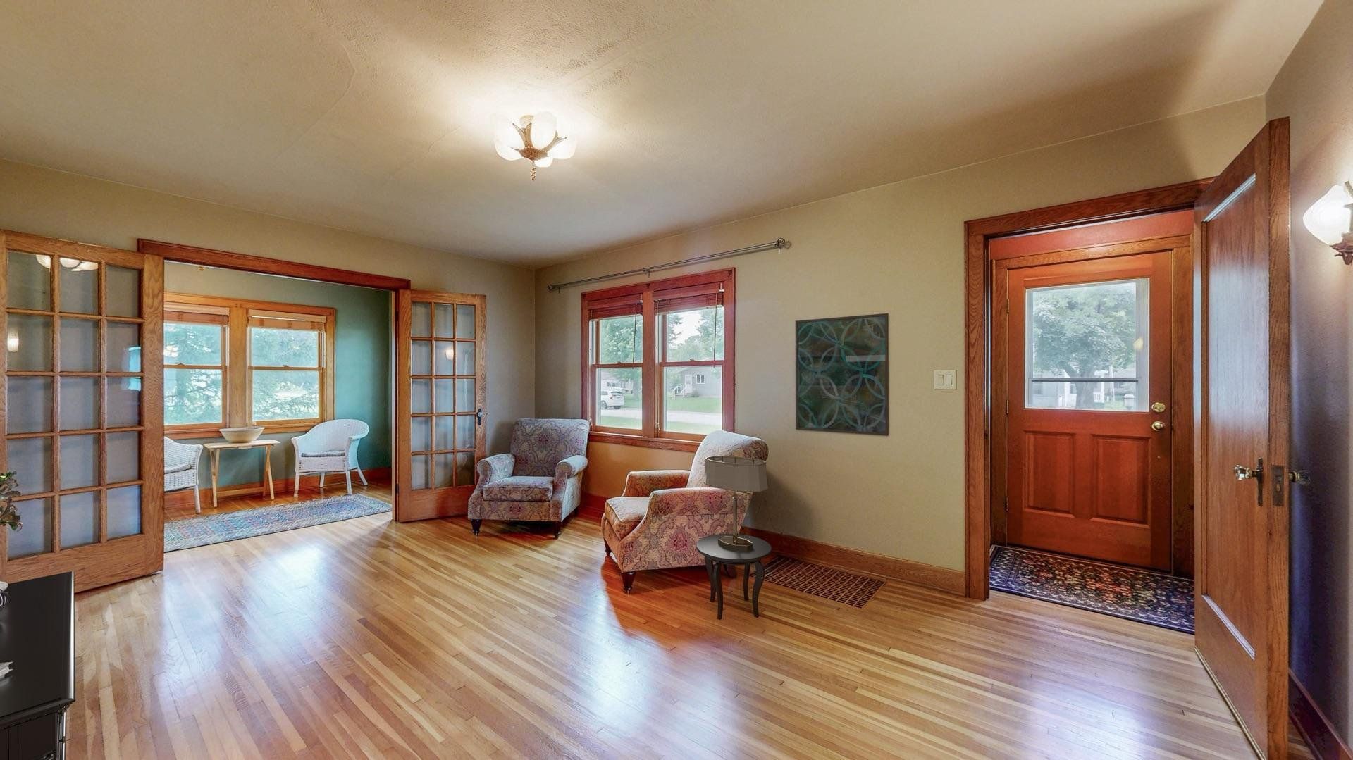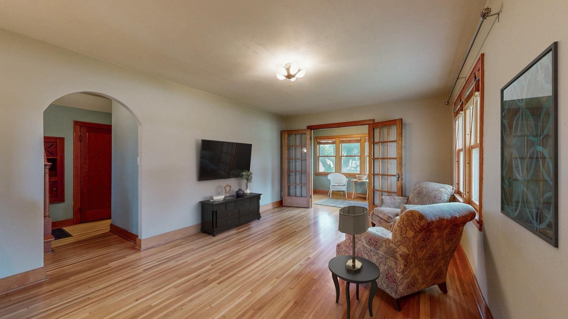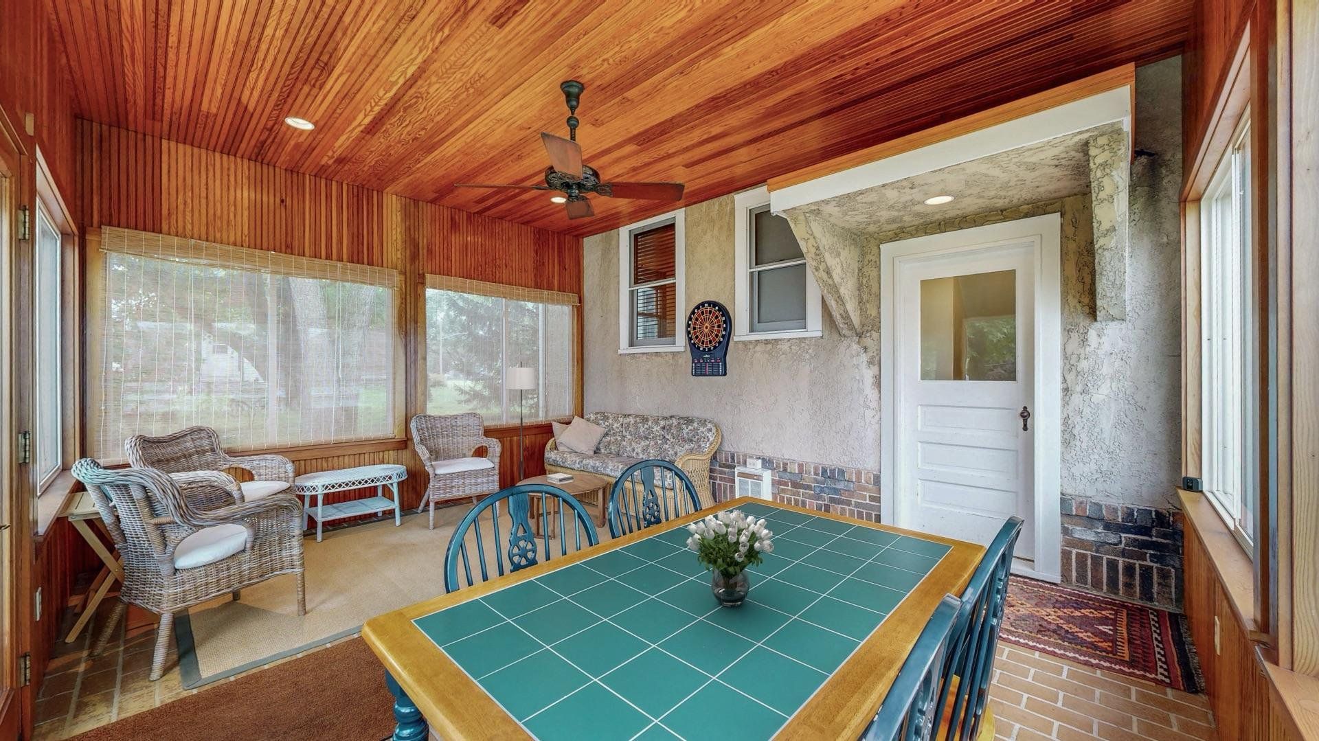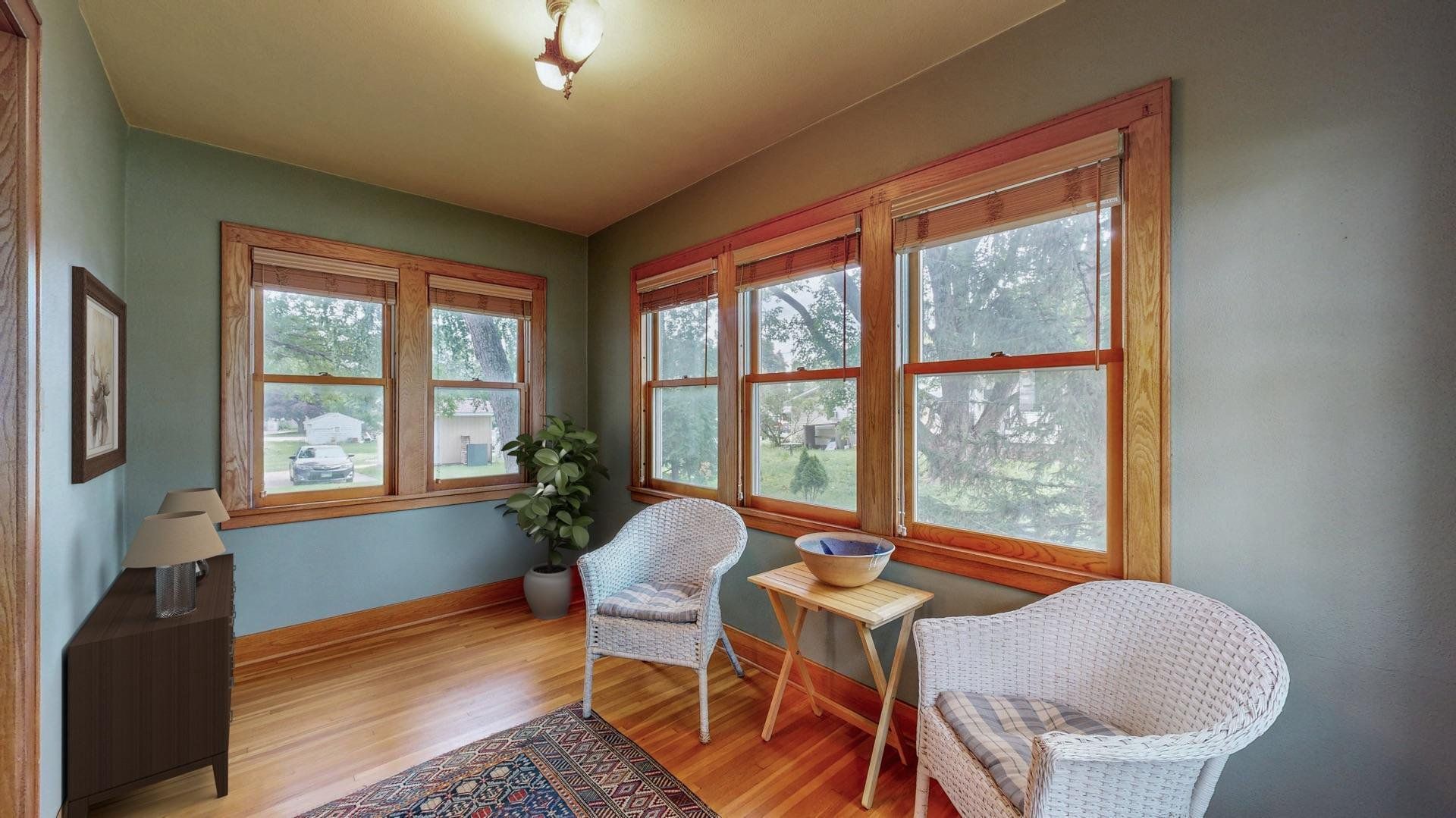 Charming and well maintained, this 1.5-story home offers timeless appeal with 3 bedrooms, 2.5 bathrooms, a spacious 2-car detached garage and a brand new roof (Sept 2025). Mature trees frame the front walkway, creating a storybook entrance to a home filled with warmth and character. Inside, you'll find original hardwood floors, arched doorways, and rich wood trim that enhance the inviting living spaces. The formal dining room includes built-ins and flows into a classic kitchen with abundant cabinetry and natural light. French doors lead to a cozy sunroom from the living room, perfect for morning coffee or a quiet reading nook. The large three-season screened-in porch overlooks a vibrant backyard with beautiful landscaping, providing additional space to relax or entertain. Heated bathroom floors on the basement and second levels add a touch of modern luxury, while supplementary hot water heated floors on the main level ensure year-round comfort. The home also includes a central vacuum system for added convenience. Thoughtfully cared for and full of charm, this home offers comfort, character, and a setting you’ll appreciate for years to come.