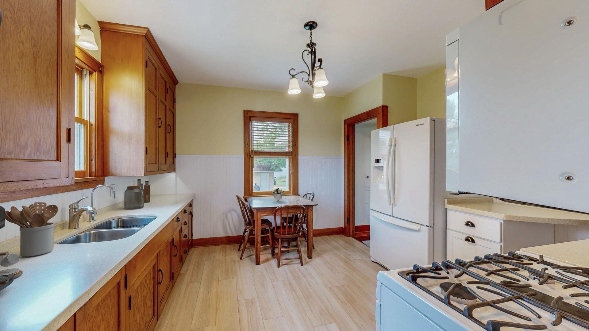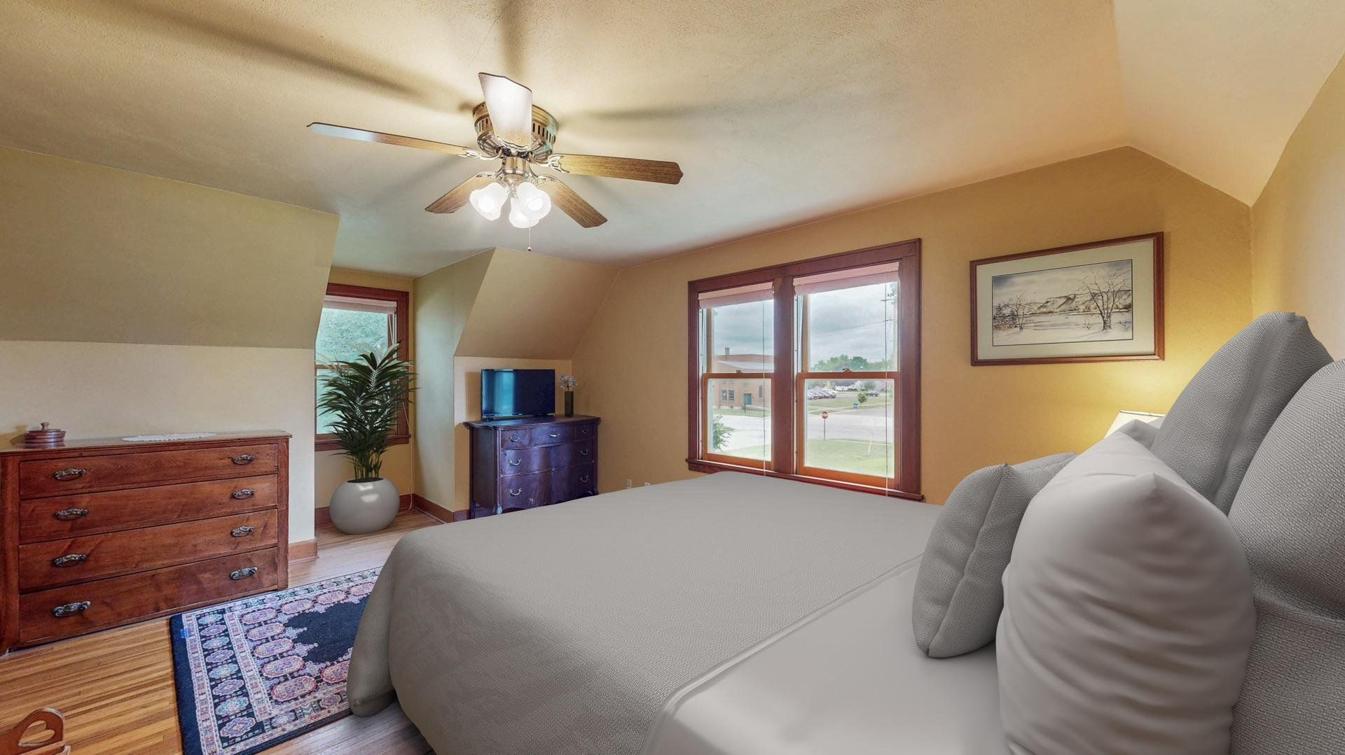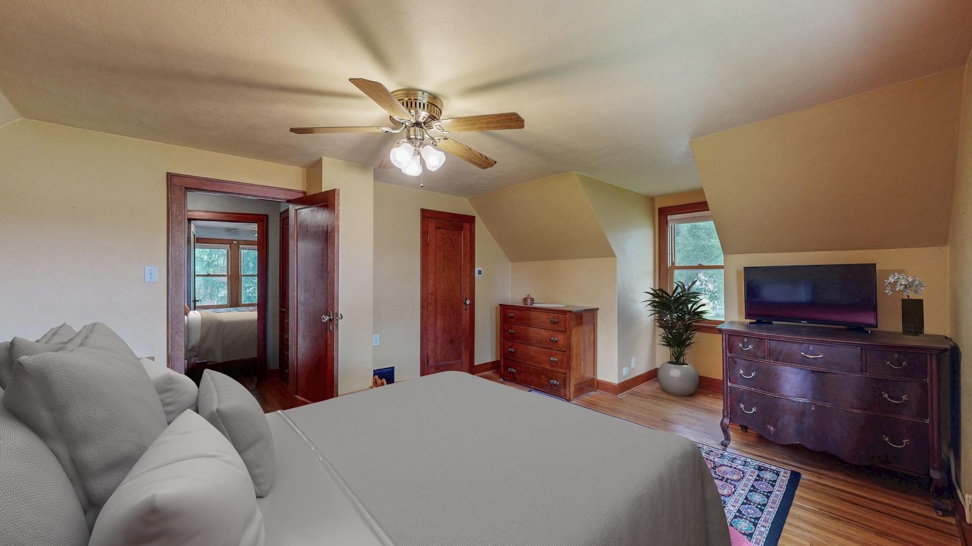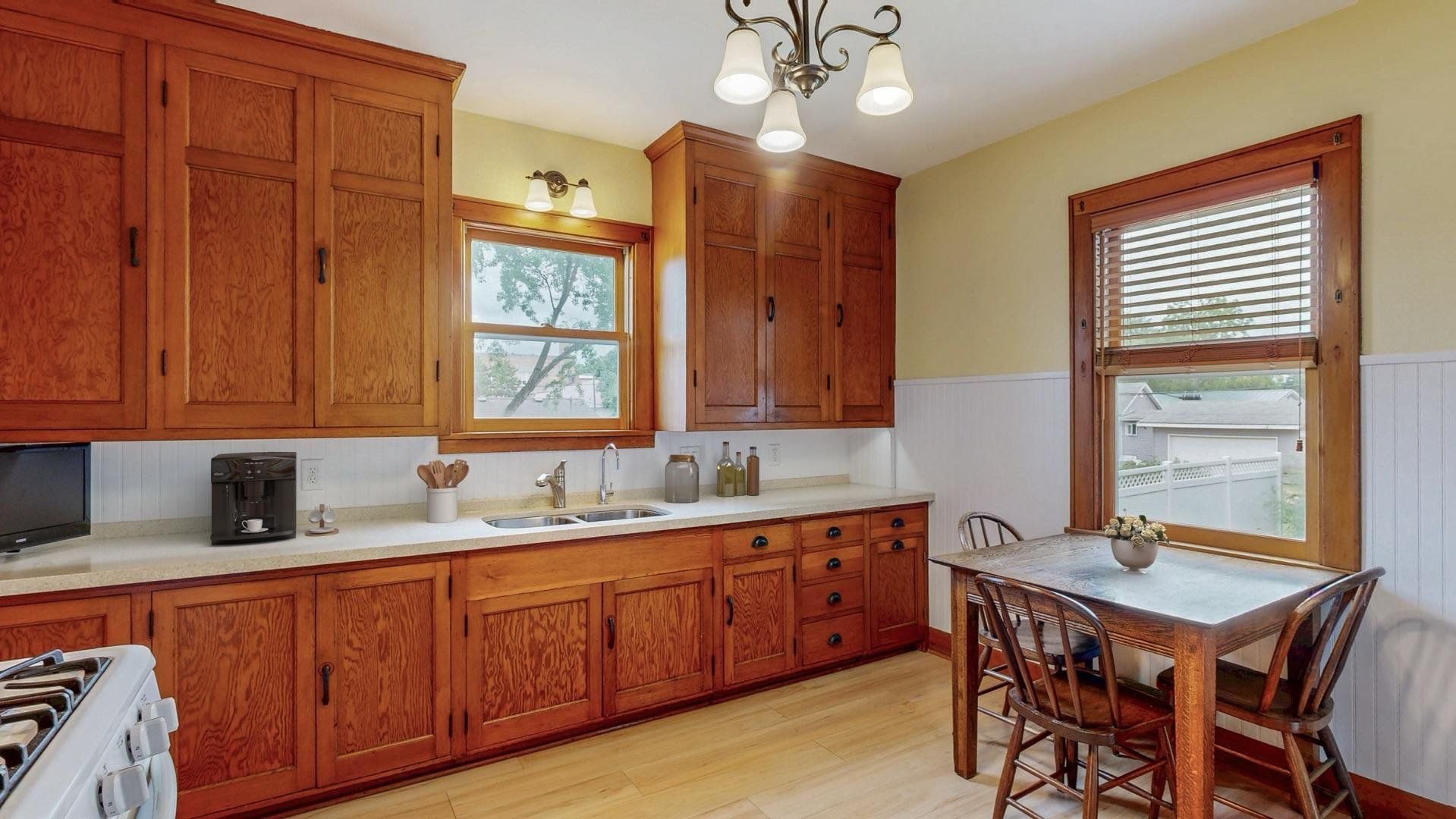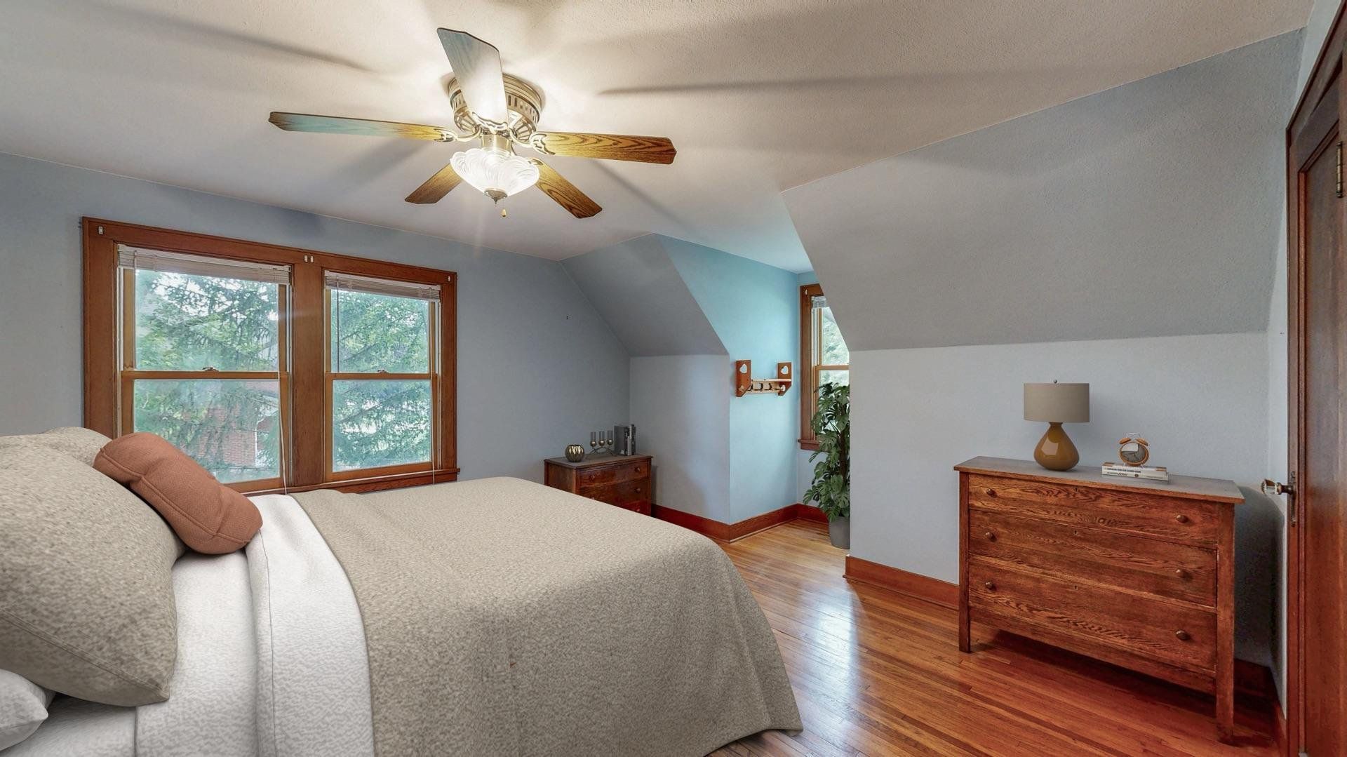 Charming and well maintained, this 1.5-story home offers timeless appeal with 3 bedrooms, 2.5 bathrooms, a spacious 2-car detached garage and a brand new roof (Sept 2025). Mature trees frame the front walkway, creating a storybook entrance to a home filled with warmth and character. Inside, you'll find original hardwood floors, arched doorways, and rich wood trim that enhance the inviting living spaces. The formal dining room includes built-ins and flows into a classic kitchen with abundant cabinetry and natural light. French doors lead to a cozy sunroom from the living room, perfect for morning coffee or a quiet reading nook. The large three-season screened-in porch overlooks a vibrant backyard with beautiful landscaping, providing additional space to relax or entertain. Heated bathroom floors on the basement and second levels add a touch of modern luxury, while supplementary hot water heated floors on the main level ensure year-round comfort. The home also includes a central vacuum system for added convenience. Thoughtfully cared for and full of charm, this home offers comfort, character, and a setting you’ll appreciate for years to come.